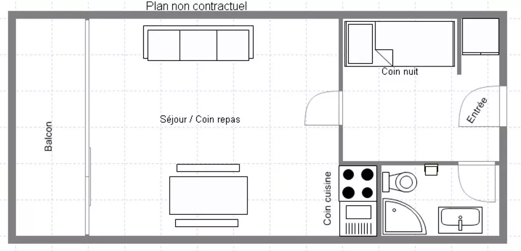 Charming 20m² apartment rated 2* and 3 crystals, in a quiet and sunny residence, located approximately 200 meters from the slopes and 50 meters from shops (minimarket, sports store)