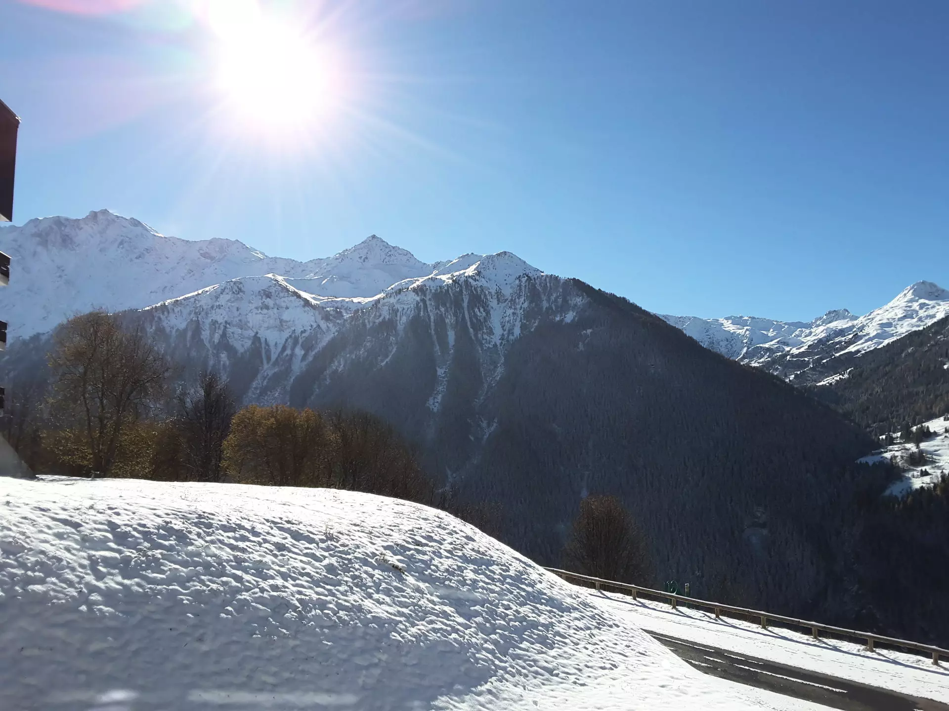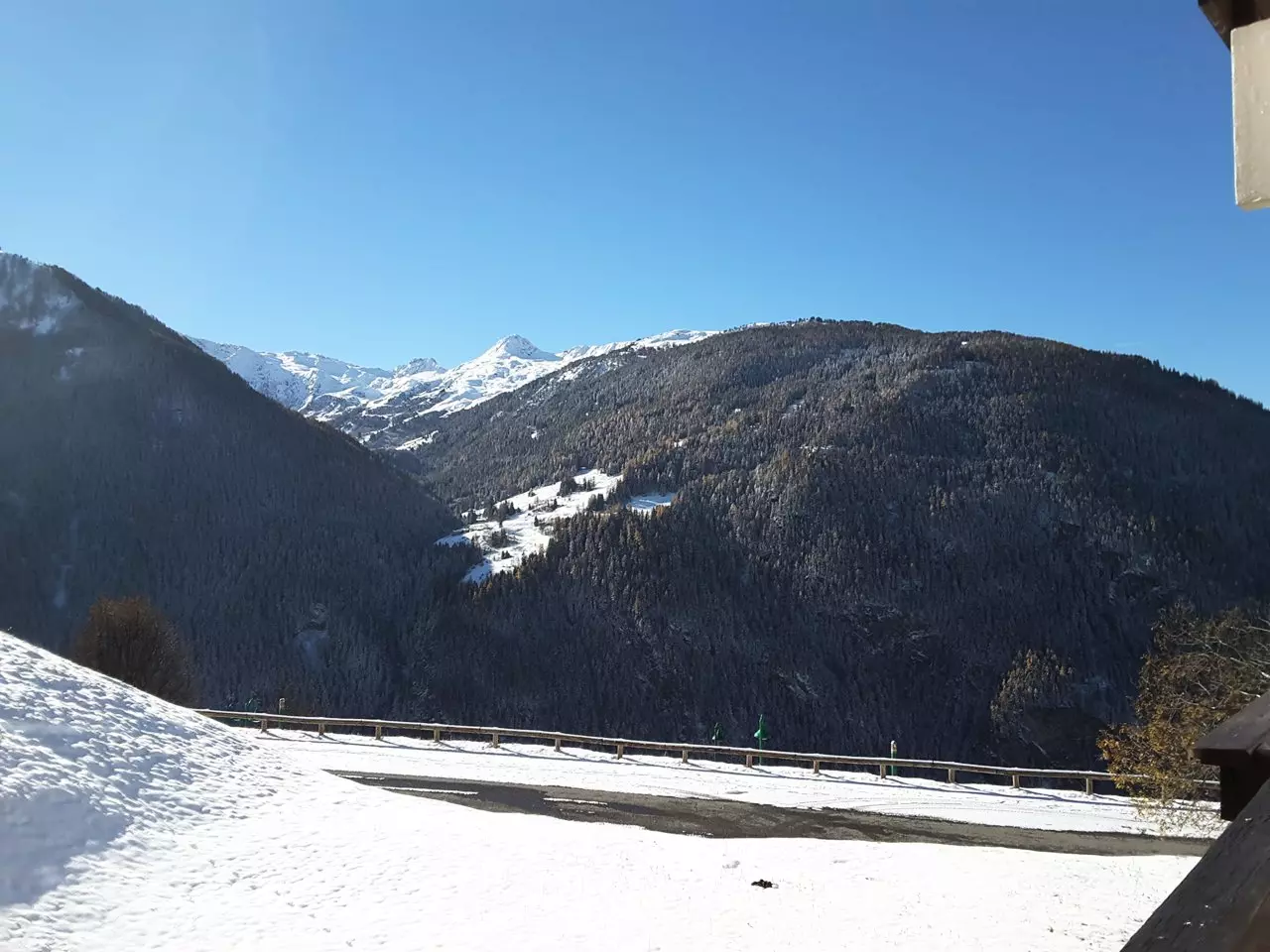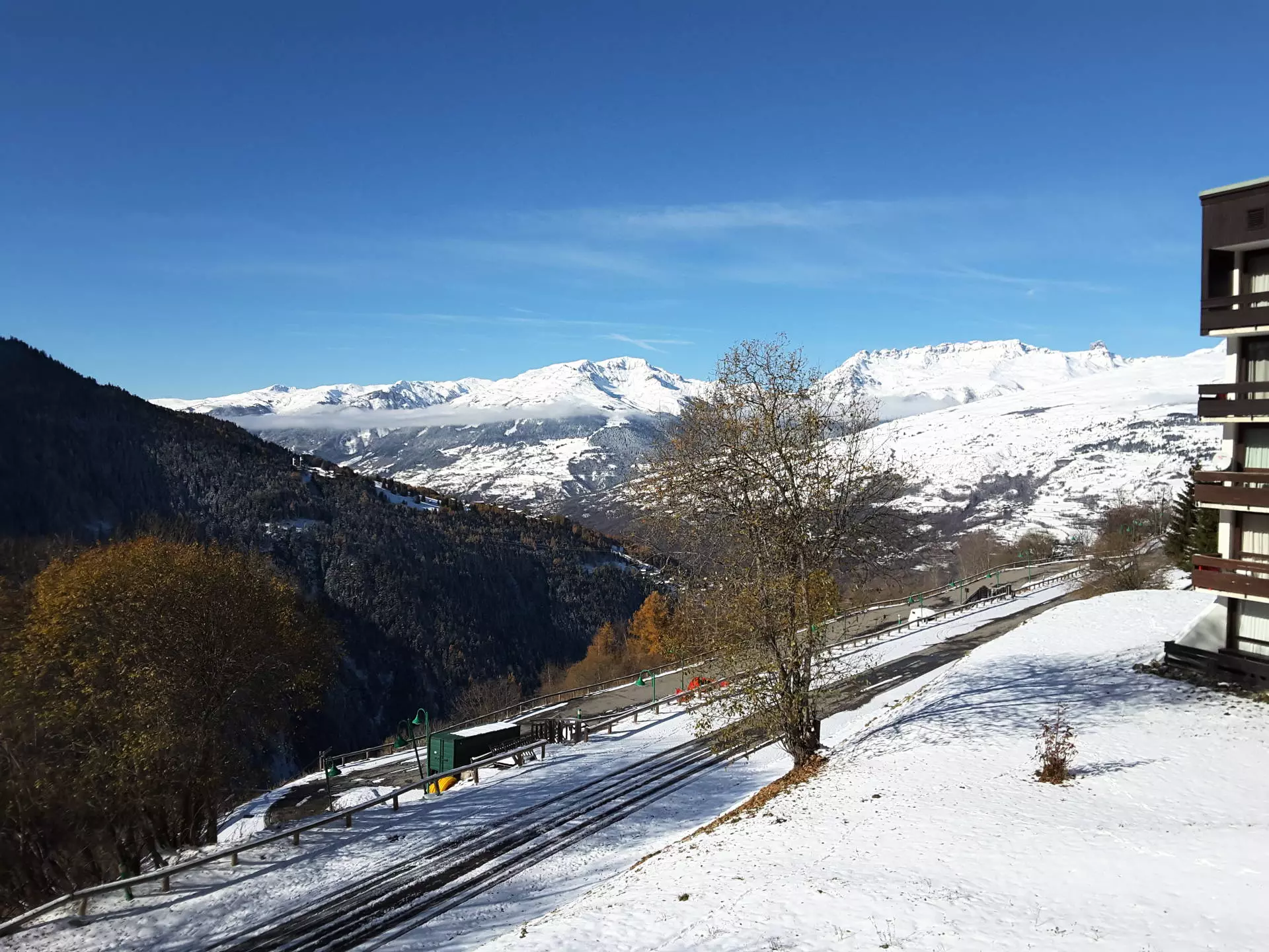 This quiet, sunny, 4-story, 1970s residence offers beautiful views. Free, uncovered communal parking is available below the residence. Access is via stairs. The slopes are approximately 200 meters away, and shops are nearby (sports shops and a mini-market).