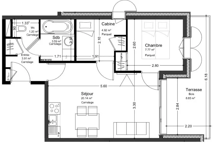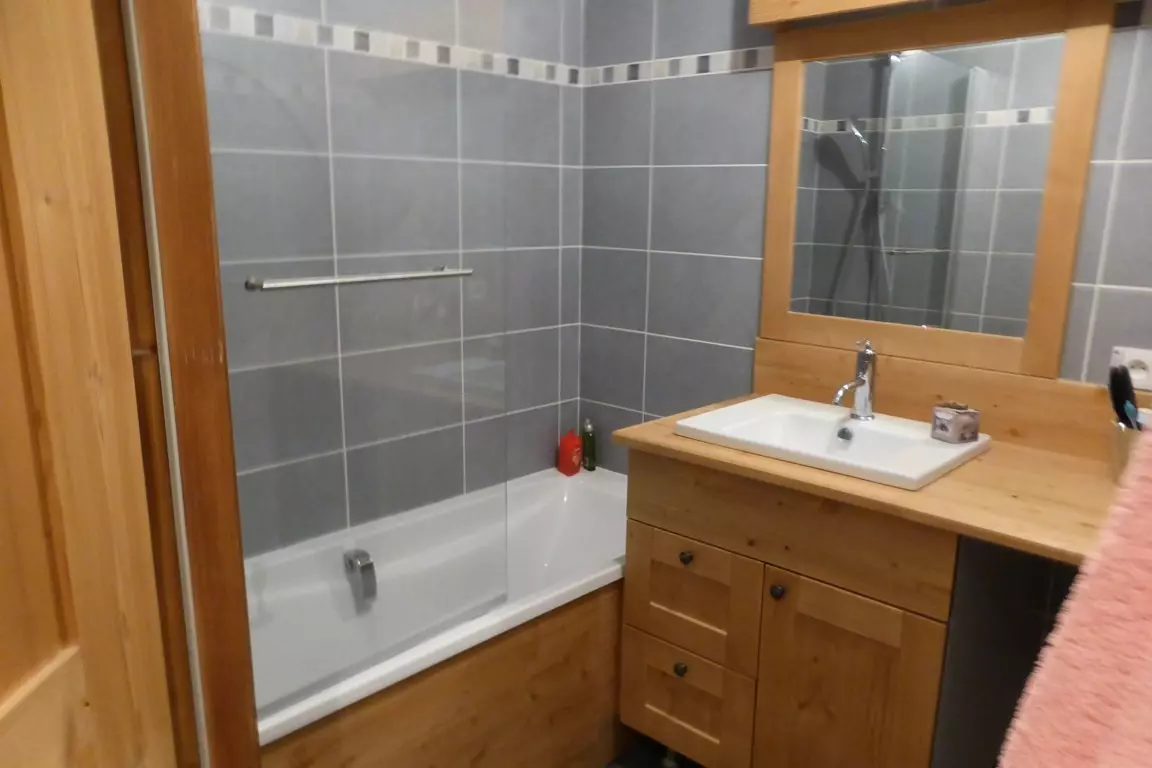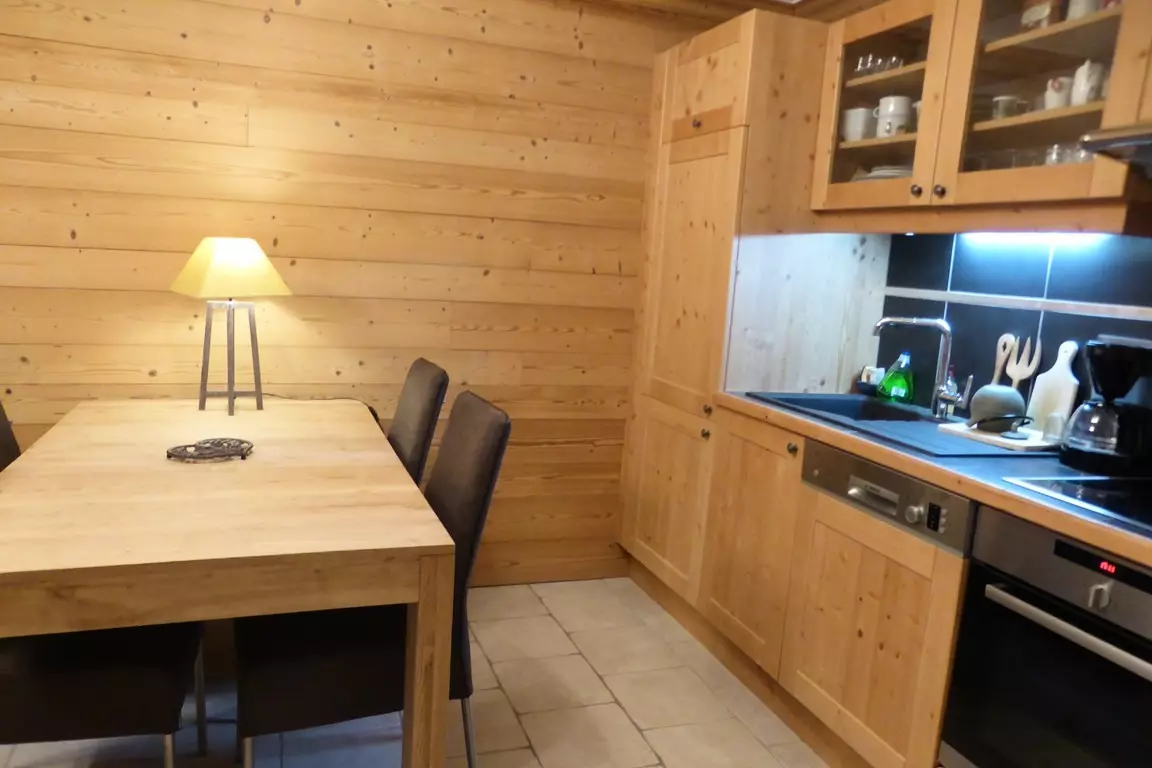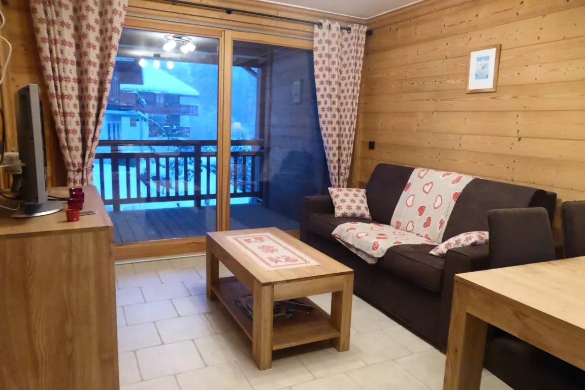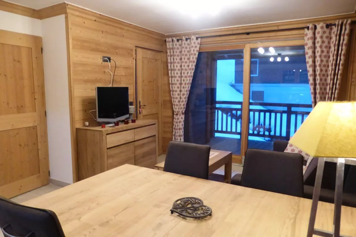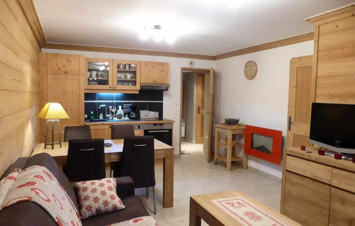 Comfortable and modern apartment, wooded atmosphere, surface area 40 m², all comfort in a very recent residence living room with sofa (convertible 140 x 190) opening onto an east-facing terrace - equipped kitchen - 1 double bed 140 x 190 - 2 bunk beds in closed bedroom (90 x 190) - bathroom - WC - loggia and garden furniture - very beautiful view - very well equipped and charming apartment. Washing machine - Dishwasher and microwave Ski shuttle 20m away during school periods. Close to hiking departures, village center a few minutes walk through the old streets.