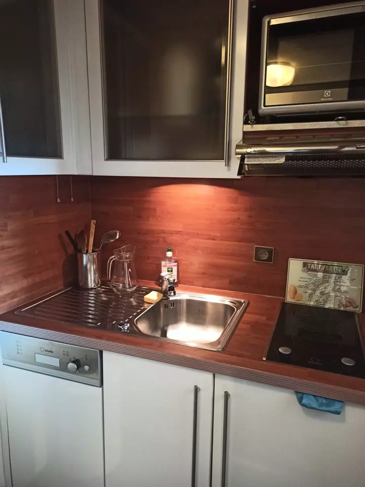 Equipment: Dishwasher, refrigerator, oven, ceramic hob, TV.