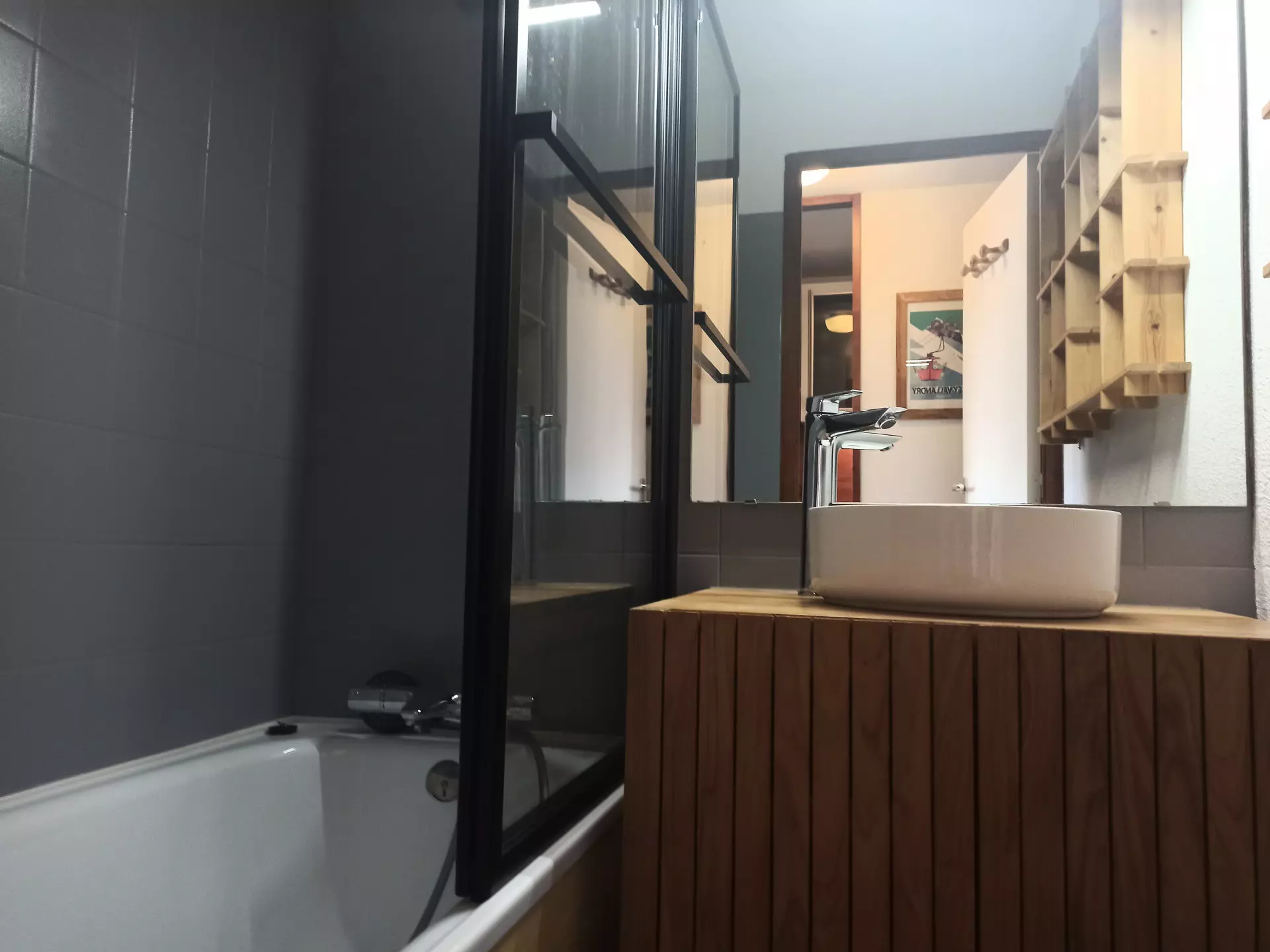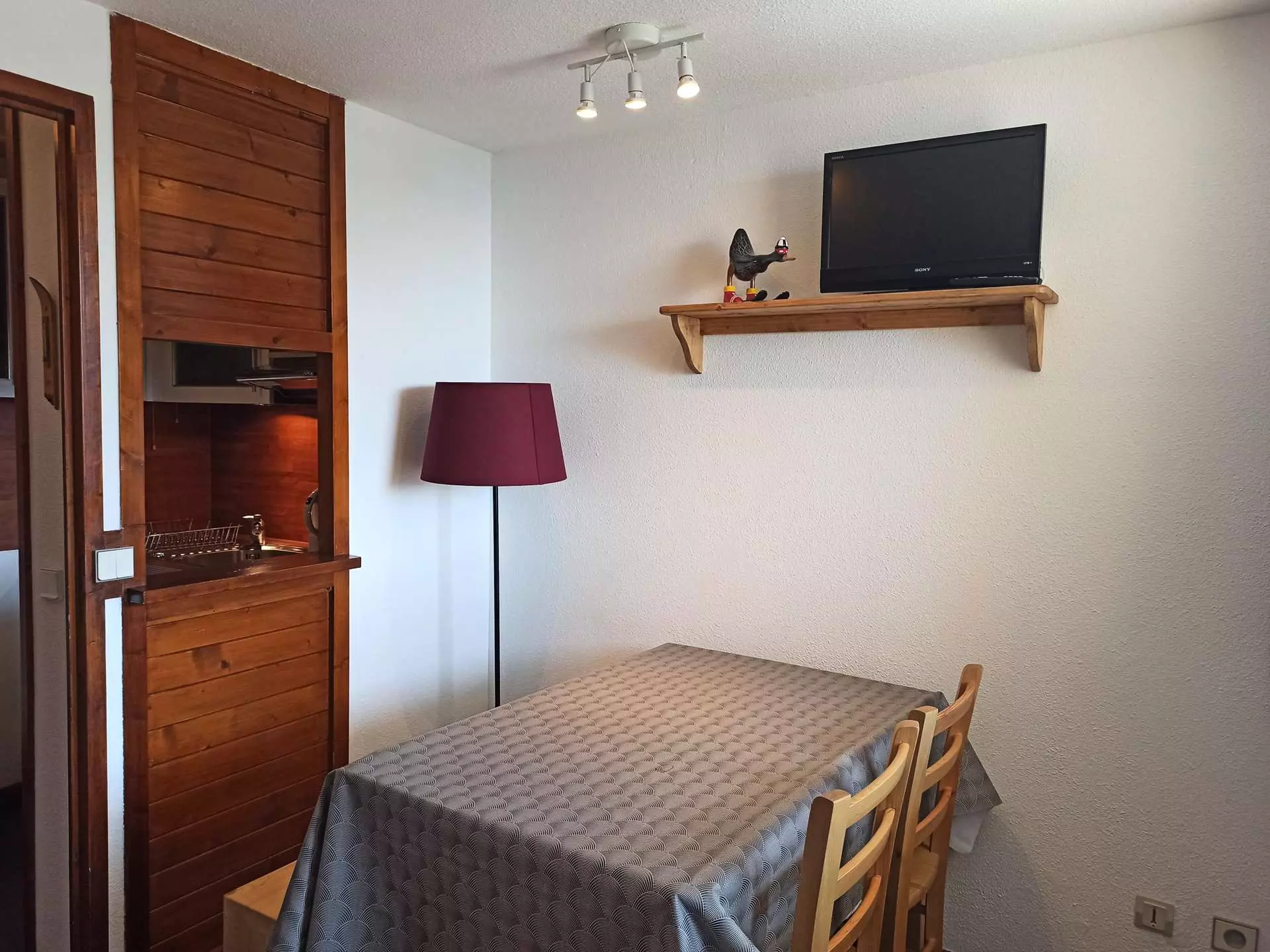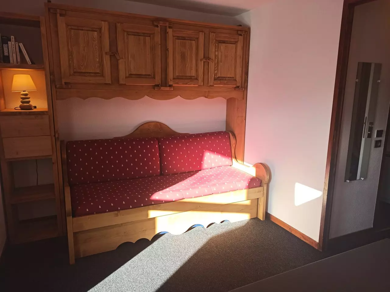 Rented for 4 people, this apartment is composed of a kitchen and living room area with 1 pull-out sofa, a cabin equipped with a convertible sofa, a bathroom with bathtub and separate toilet.