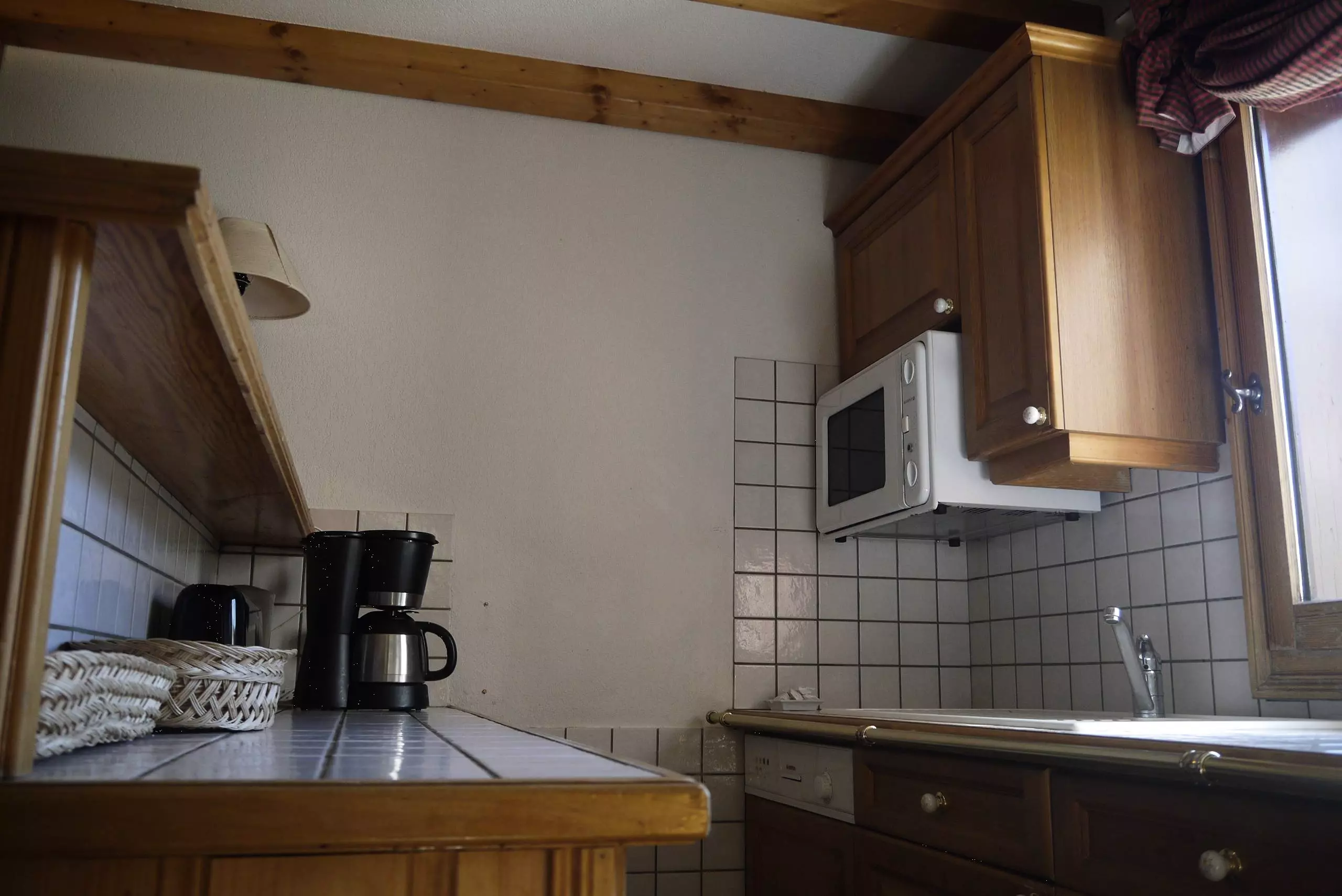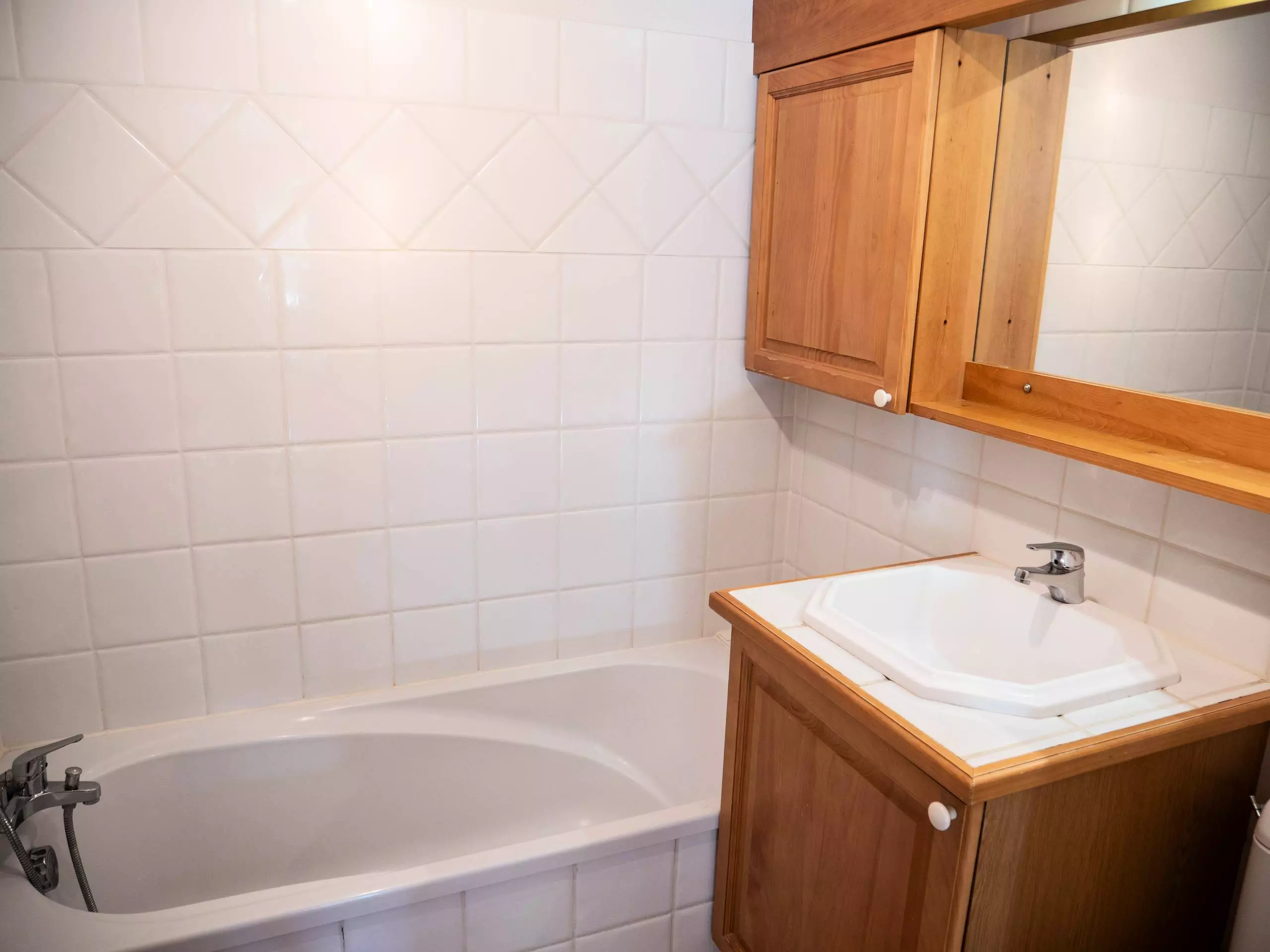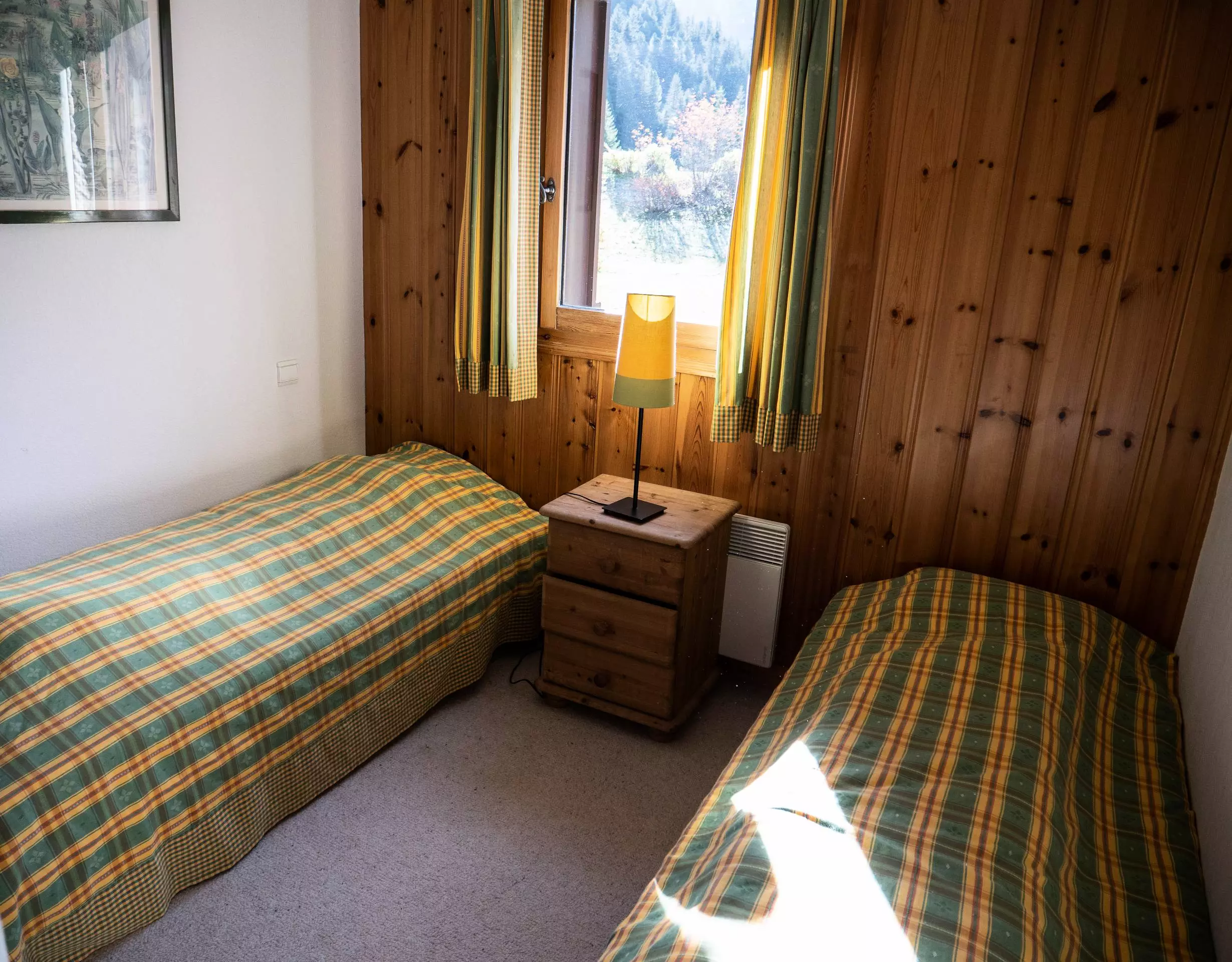 Without sleeping accommodations in the living room, this apartment includes a bedroom with a double bed (140x200). A bedroom with 2 single beds (80x190) and a cabin bedroom with 2 sets of bunk beds (80x190) for 4 beds. Kitchen open to the living room, with television, equipped with ceramic hob, oven, dishwasher, refrigerator, coffee maker, toaster, kettle. 2 bathrooms with WC. Balcony. Ski locker in the residence. Ground floor. Non-smoking apartment. Pets not allowed.