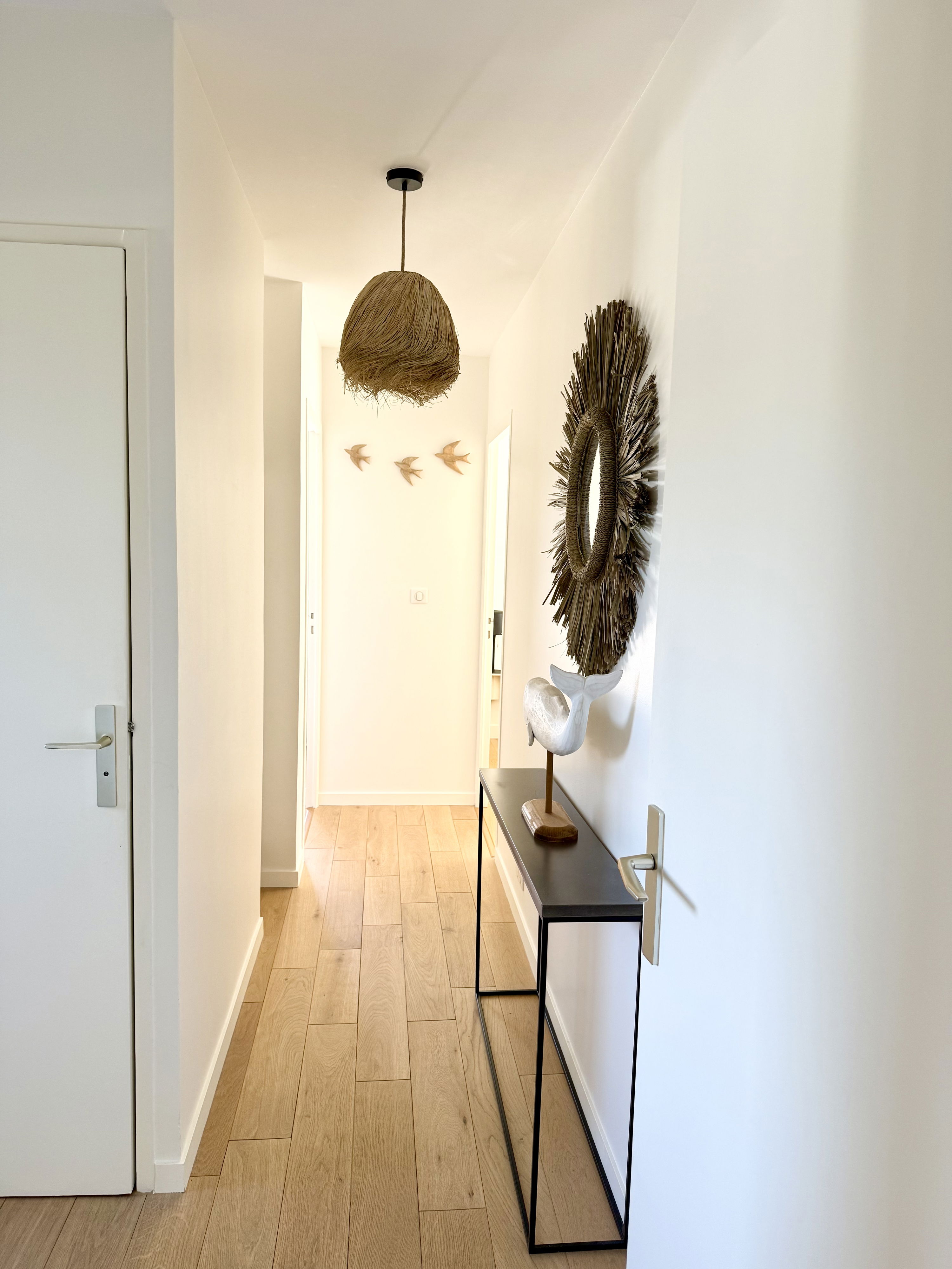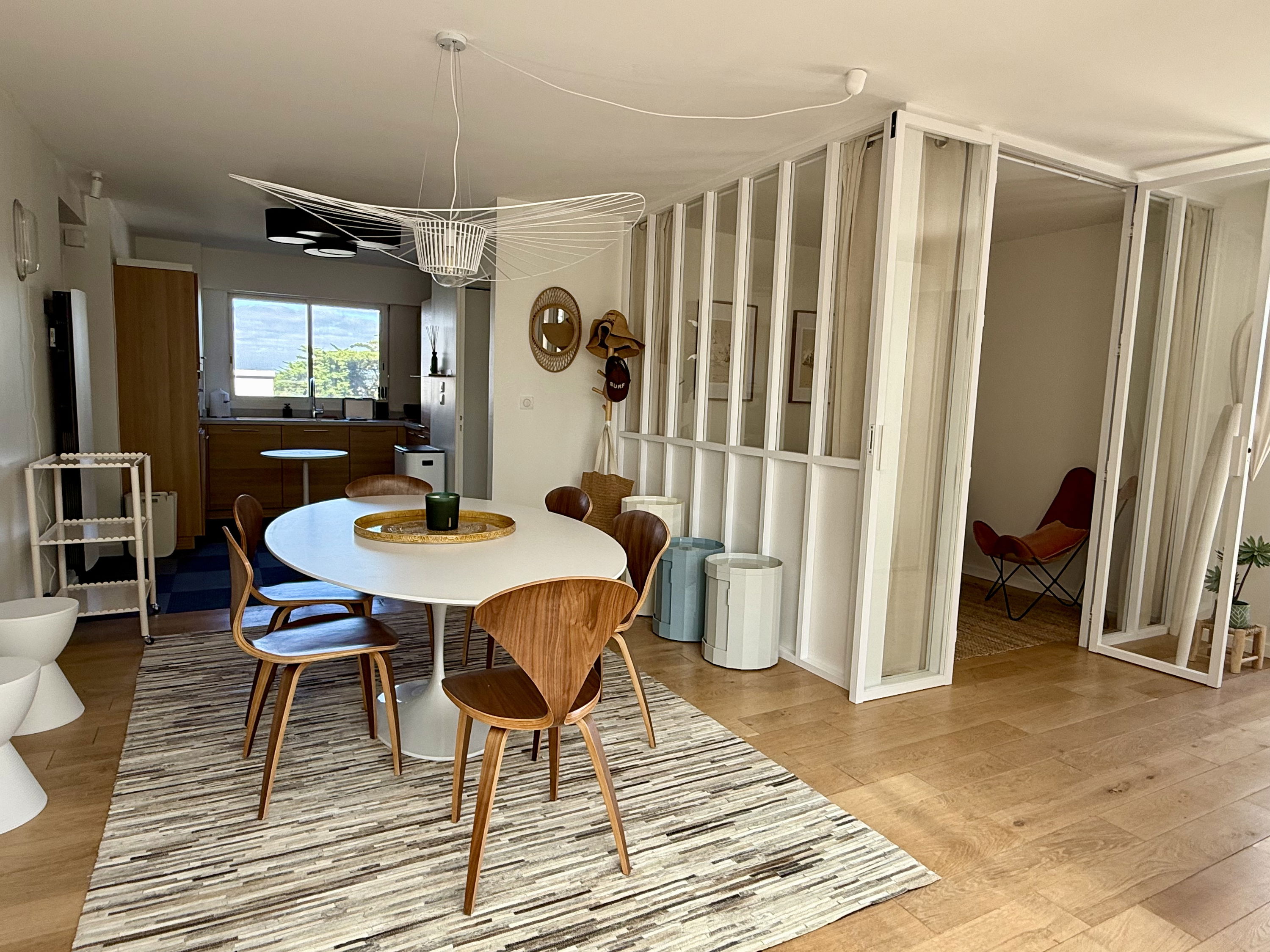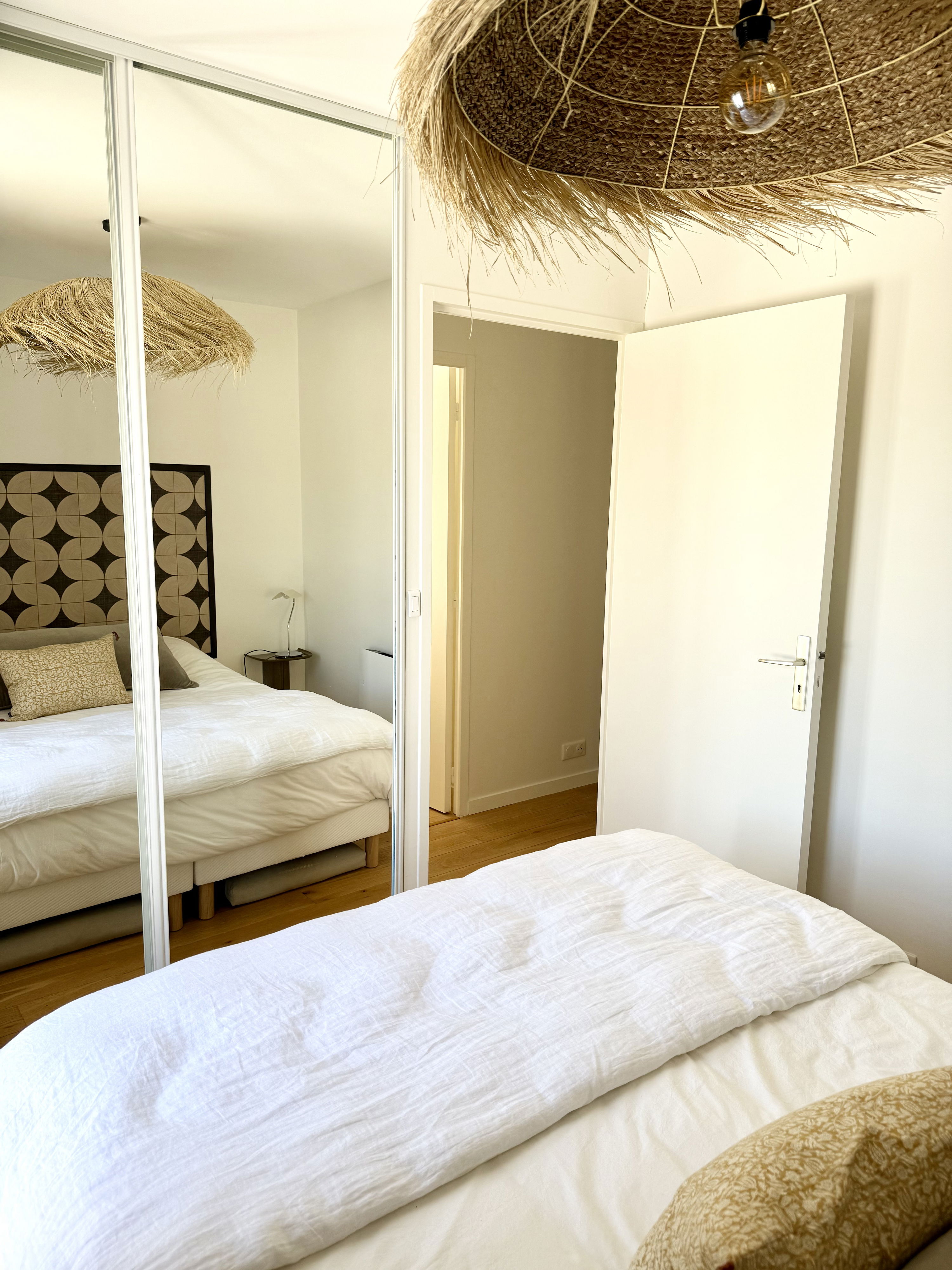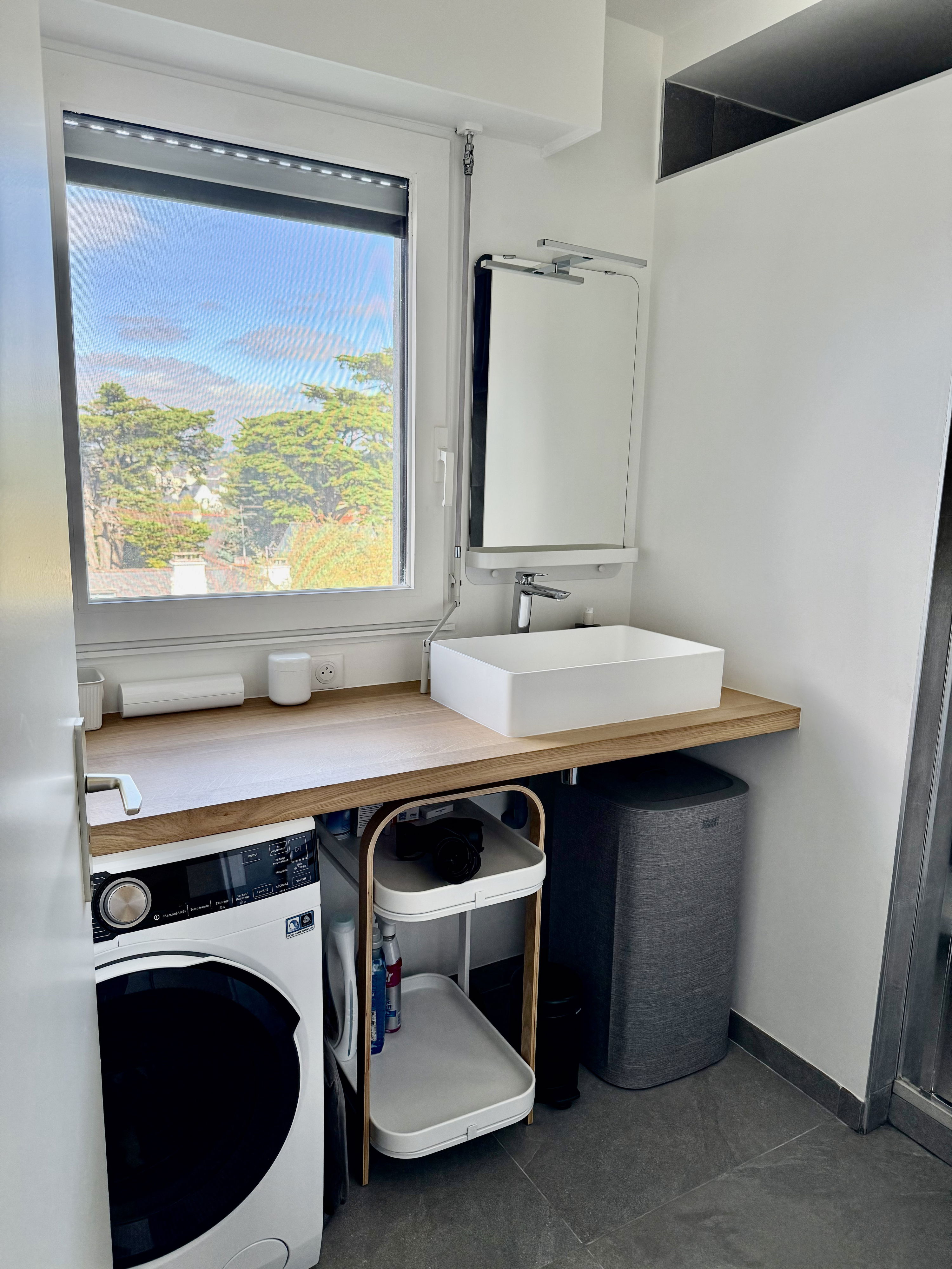It benefits from: Bright and warm living room with lounge area (flat screen TV, WIFI access and wood stove) - Closed sleeping area with sofa bed 140/200 - Equipped and fitted kitchen (oven/microwave, capsule machine, kettle, citrus press, toaster, dishwasher, fridge/freezer, induction hob, extractor hood) - The two bedrooms have a cupboard/wardrobe and a double bed 160/200 - Shower room (shower, washer-dryer and towel dryer with integrated speaker).