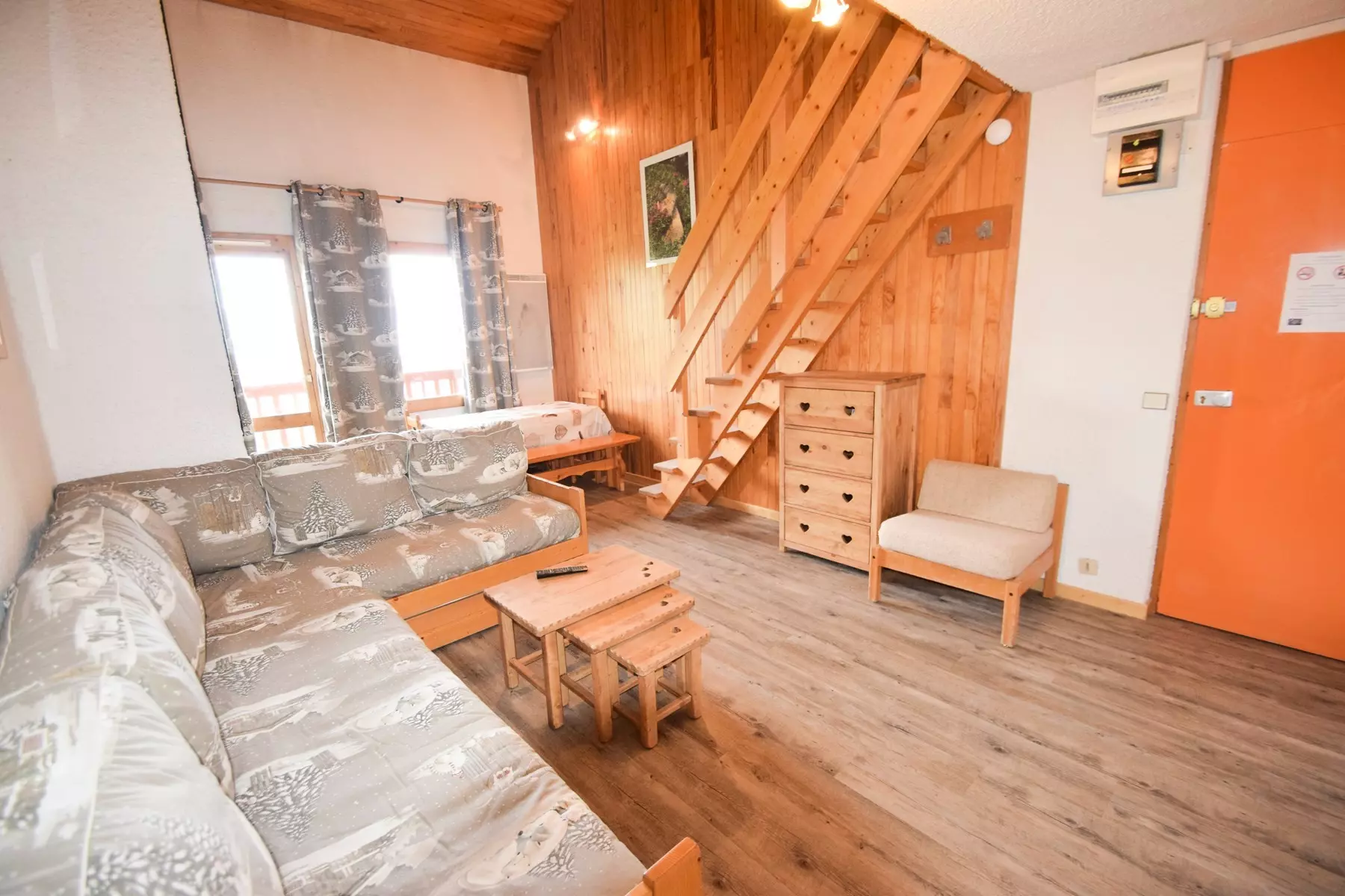Apt. 8/10 pers. 67 m2, 3 rooms + mezzanine, SOUTH/WEST exposure, view of the slopes, balcony, 2nd floor - Entrance 1 - no elevator - Kitchen: separate: 3 electric hobs, refrigerator, oven, microwave, dishwasher - Living room: dining area, 2 pull-out beds, 1 sofa bed, TV - BR.1: 1 double bed - BR.1: shower - separate WC. Upstairs: Mezzanine open to living room: 2 pull-out beds, BR.2: 1 double bed + 1 single bed. BR.2: bathtub, separate WC. Optional and extra: end-of-stay cleaning, sheets, towels, ski passes. Very pleasant duplex apartment in a small, quiet building with a beautiful view of the slopes and the mountains from its 3 balconies - Floors: plastic - Fireplace sealed - Ski locker No. 14 on the ground floor - Bedding: duvets - PETS NOT ALLOWED - LE BELVEDERE: small, quiet residence, located at the foot of the slopes and about 700m from the shops (by free shuttle bus every 15 minutes). Free outdoor parking 100m from the building, not private.