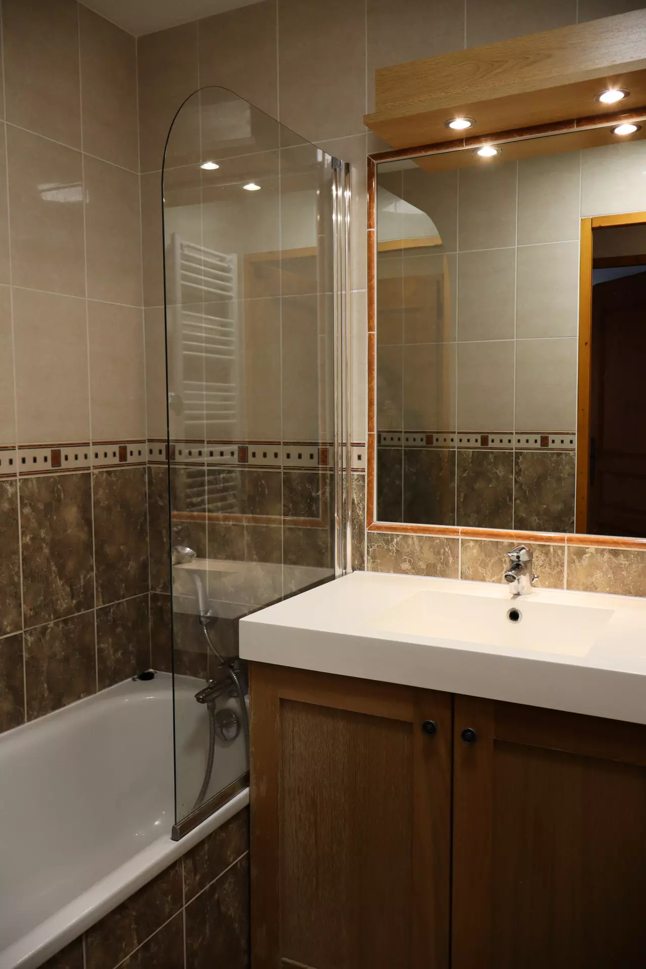 Bathroom: sink, bathtub and hairdryer. Separate toilet