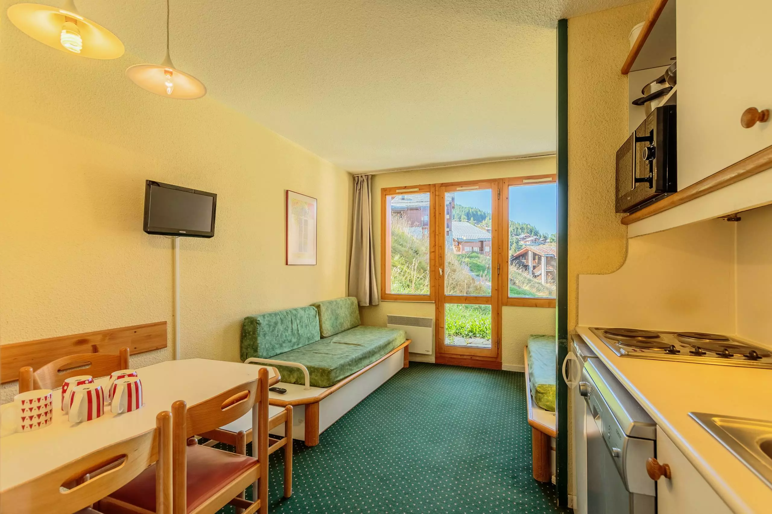 The 4ème Dé is a large residence served by two elevators. Access to the slopes is approximately 200 meters away and the resort center is 300 meters away. The residence's location allows for relatively easy parking.
