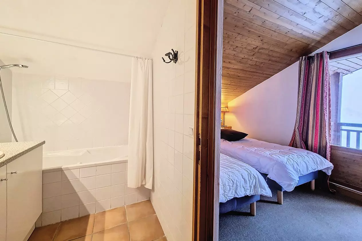 Bedroom 4 en suite: 2 single beds. Bathroom with bathtub. This room has a balcony.