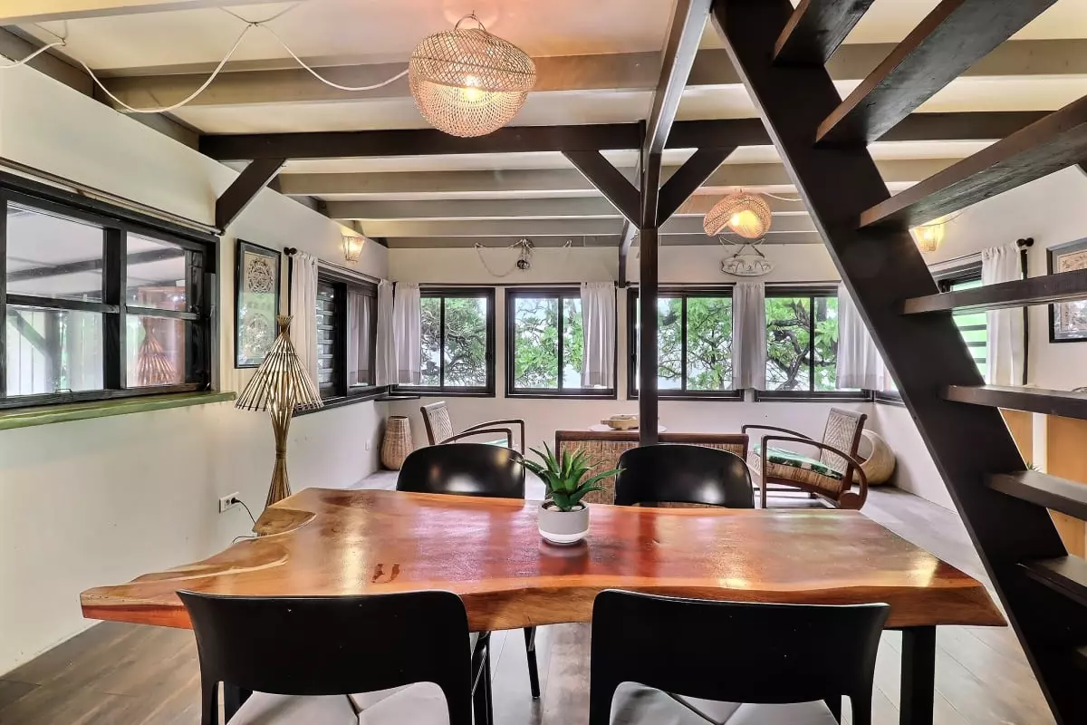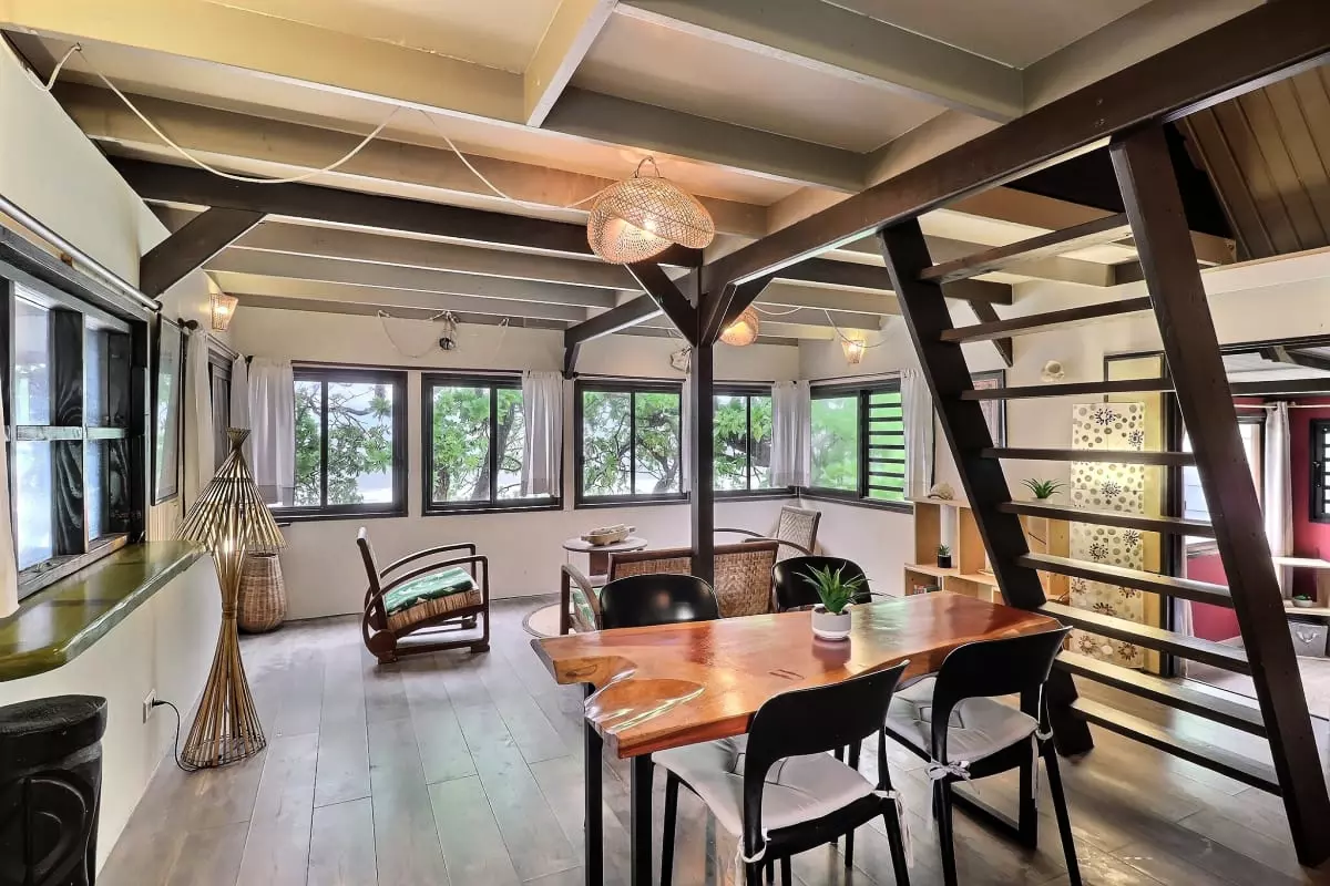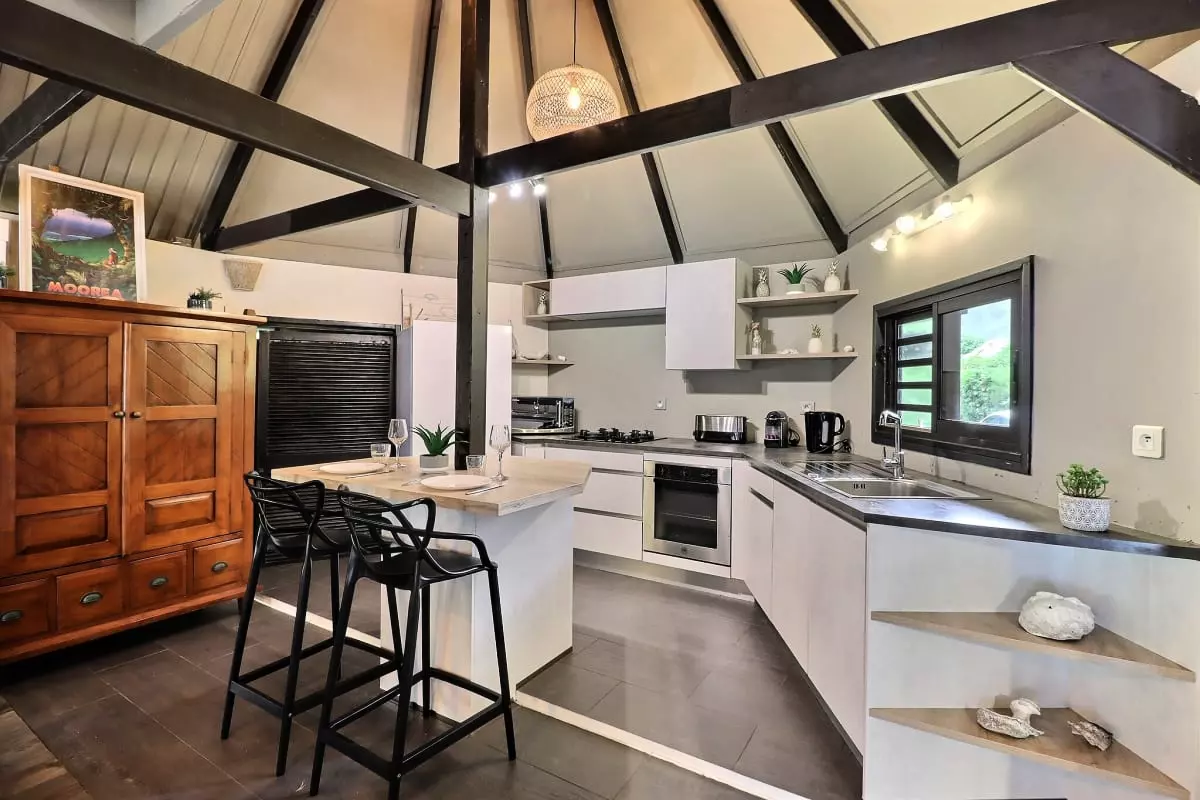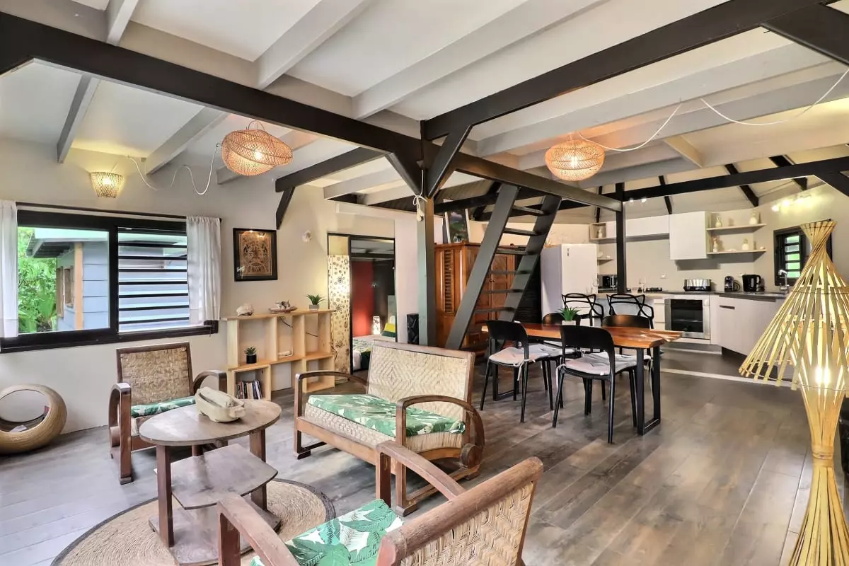 Built with respect for traditional Polynesian architecture, the house blends elegantly into its natural environment. Designed as a fluid living space, it favors open spaces, natural ventilation, raw materials, and clean lines. Here, everything is designed to fully embrace indoor-outdoor living, with nature as a permanent backdrop.