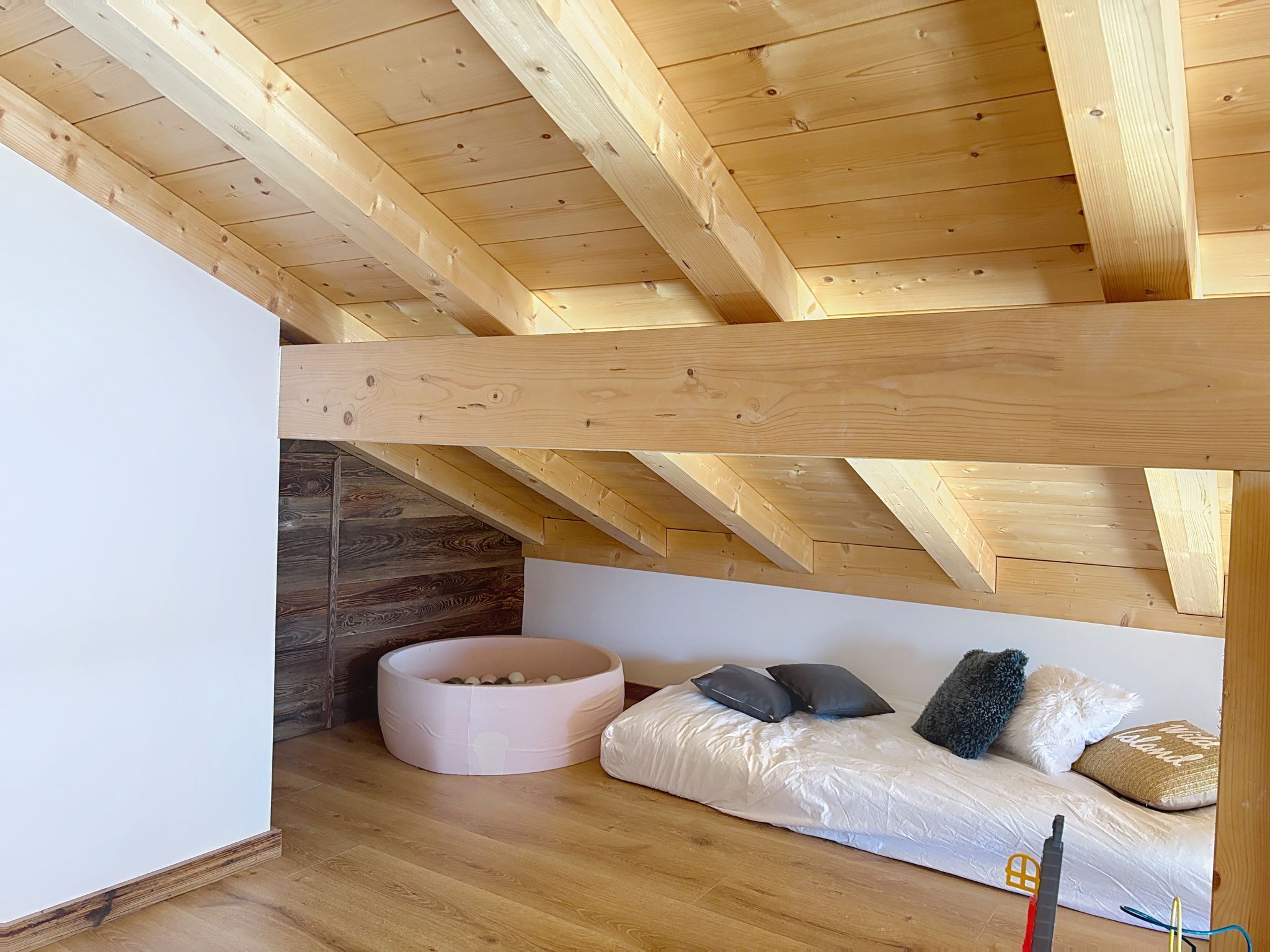 Thyez 5 km from Samoêns: Very beautiful chalet "Chalet ECO", 2 storeys, built in 2022. In the resort 3 km from the centre of Clusas, in a sunny position on a slope, 5 km from the skiing area. Private: terraced garden (not fenced) lawn and wildlife garden. Hot tub, barbecue. In the house: storage room for skis, central heating system, washing machine, tumble dryer. Parking (for 4 cars) at the house on the premises. Grocery 1.5 km, supermarket 1.5 km, shopping centre 1.5 km, restaurant 1.5 km, bakery 1.5 km, café 1.5 km, bus stop "Marignièr" 1.5 km, railway station "Cluses" 6 km, thermal baths "Saint Gervais" 28 km, bathing lake "sud du lac Lèman" 10 km, lake Lac du Nanty 6 km. Walking paths from the house 100 m, skisport facilities 5 km, slopes 5 km, fishing possibilities 6 km. Nearby attractions: Annecy 50 km, Chamonix 50 km, Sixt-Fer-à-Cheval 18 km, Sur Le Coux Un point de vue panoramique 4 km. Well-known ski regions can easily be reached: Grand Massif/Morillon/Les Carroz 18 km, Porte du Soleil/les Gets/Morzine 20 km, Praz de Lys 12 km. Well-known lakes can easily be reached: Lac Lèman 35 km, Base de Loisirs des Lacs de Thyez 13 km. Please note: car recommended. Baby equipment. Groups of teenagers on request only. Part of the house is closed and unoccupied.