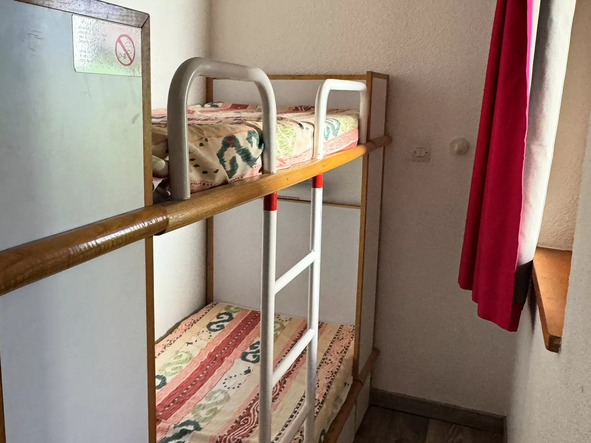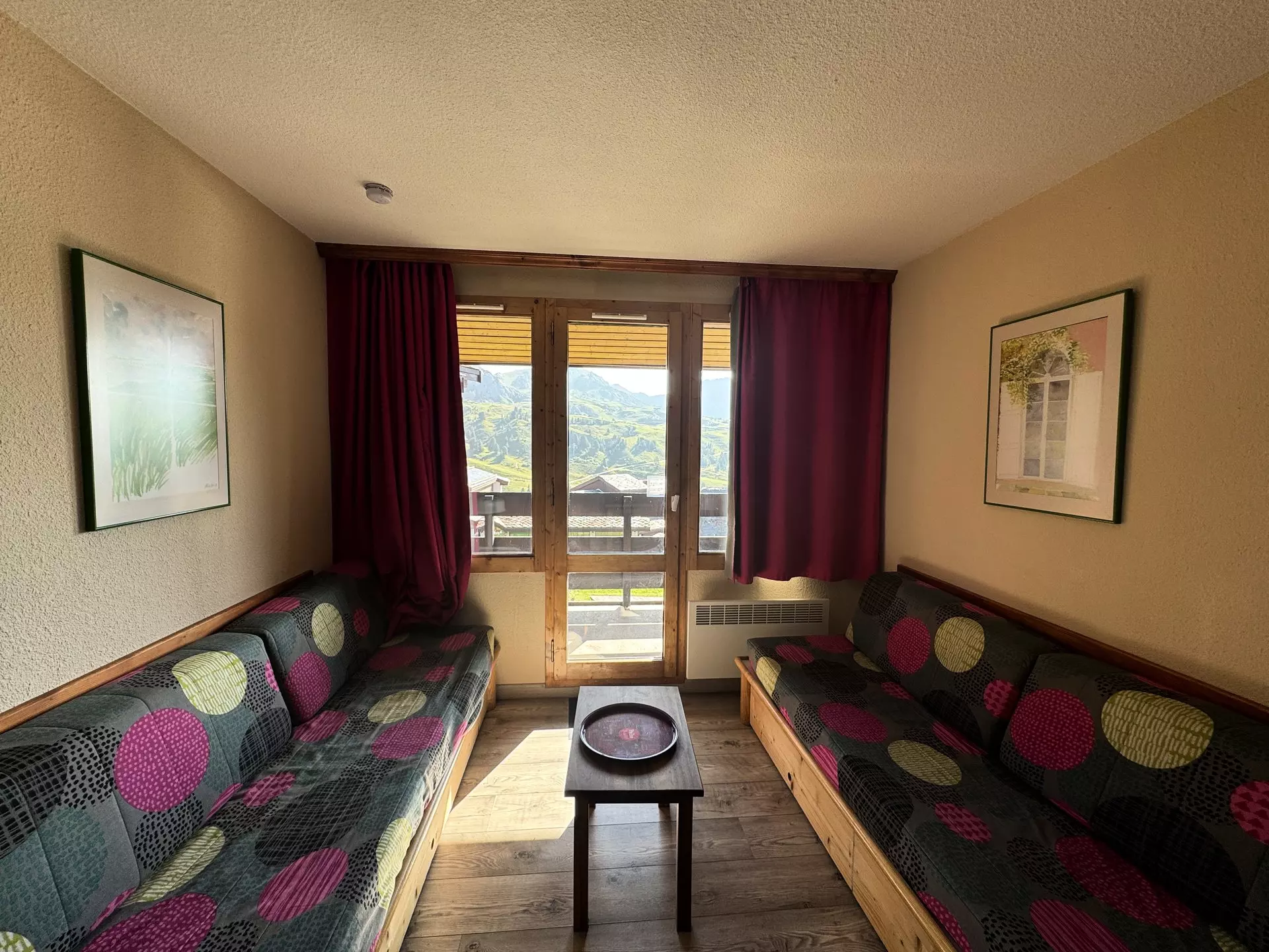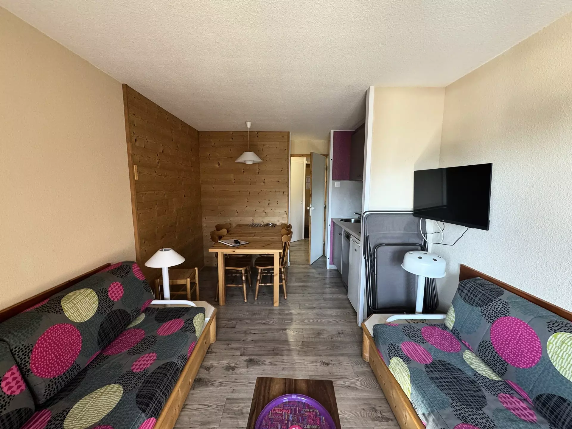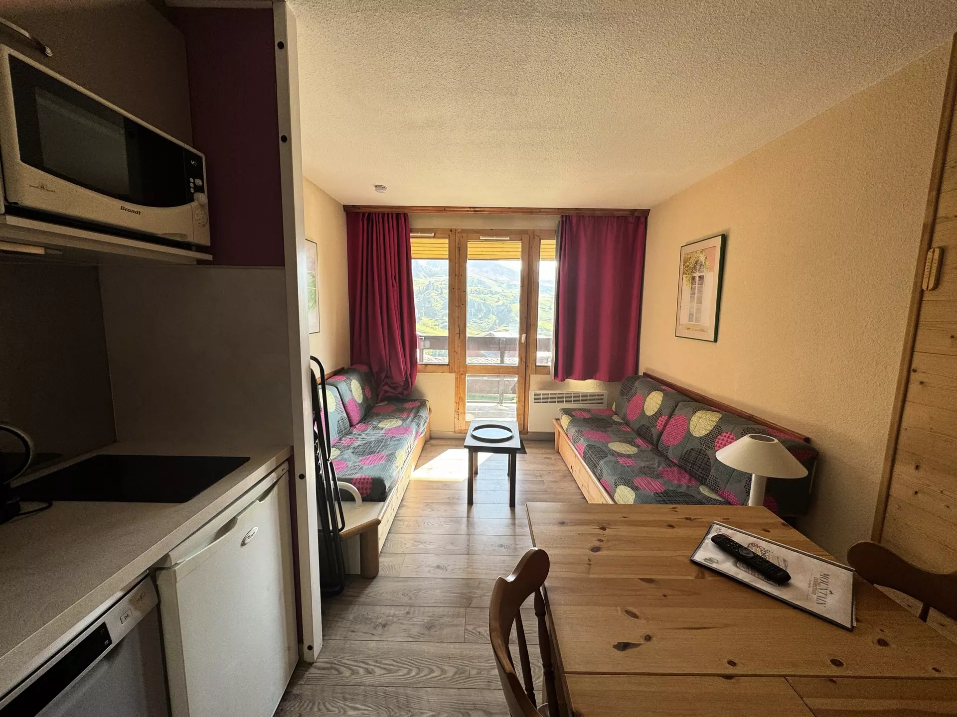 It is located south and on the 3rd floor with a balcony and view of the slopes.