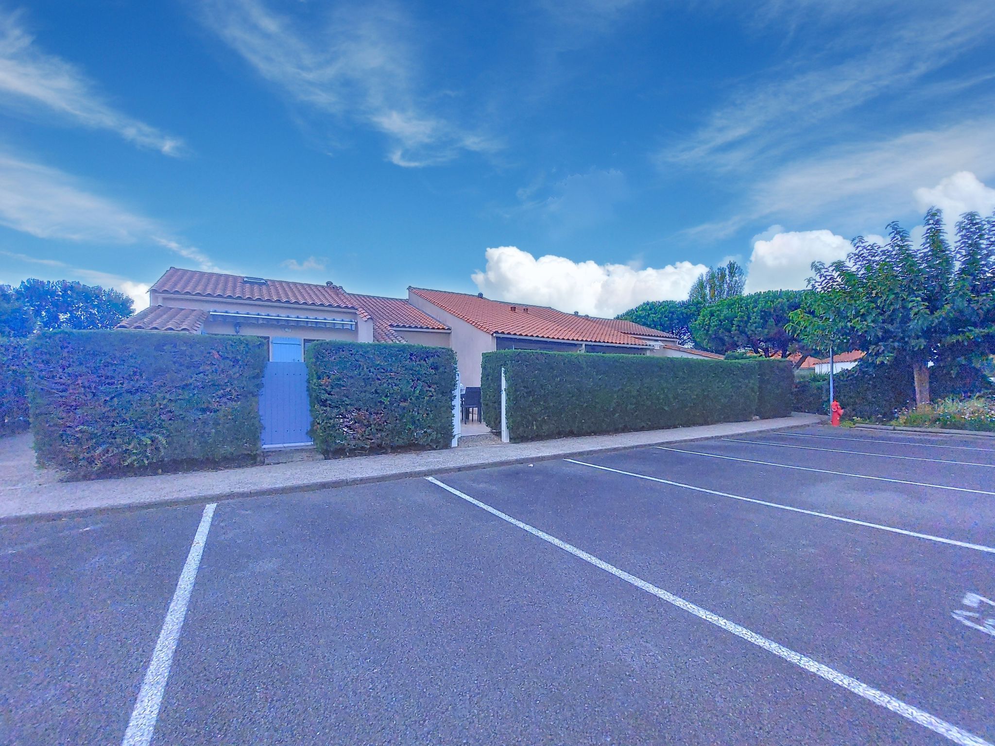 Large residence "Les Charmilles". 170 houses in the residence. On the outskirts, 650 m from the centre of La Palmyre, 1.3 km from the sea, 1.3 km from the beach. For shared use: swimming pool (8 x 25 m, seasonal availability: 01.Jul. - 30.Aug.). Parking. Shop, grocery, restaurant, bakery, café 800 m, bus stop "La Palmyre Office de Tourisme" 700 m, railway station "Royan" 19 km, sandy beach "La Palmyre" 1.3 km, indoor swimming pool 19 km, thermal baths "Thalassothérapie Thalazur Royan" 19 km. Sports harbour 1.8 km, golf course (9 hole) 3 km, surf school 1 km, sailing school 2 km, minigolf 1.6 km, cycle lane 100 m. Nearby attractions: Zoo de La Palmyre 1.5 km, Hippodrome - La Palmyre 900 m, Port La Tremblade - Boyard / Ile d'Aix 11 km, Centre aquatique Iléo - Ile d'Oleron 36 km, Luna Park (Juillet - Août) 5 km, Zagal Cabaret équestre 1 km. Please note: the keys‘ handover takes place by the agency in La Palmyre, 1 km. Additional accommodations can be booked.