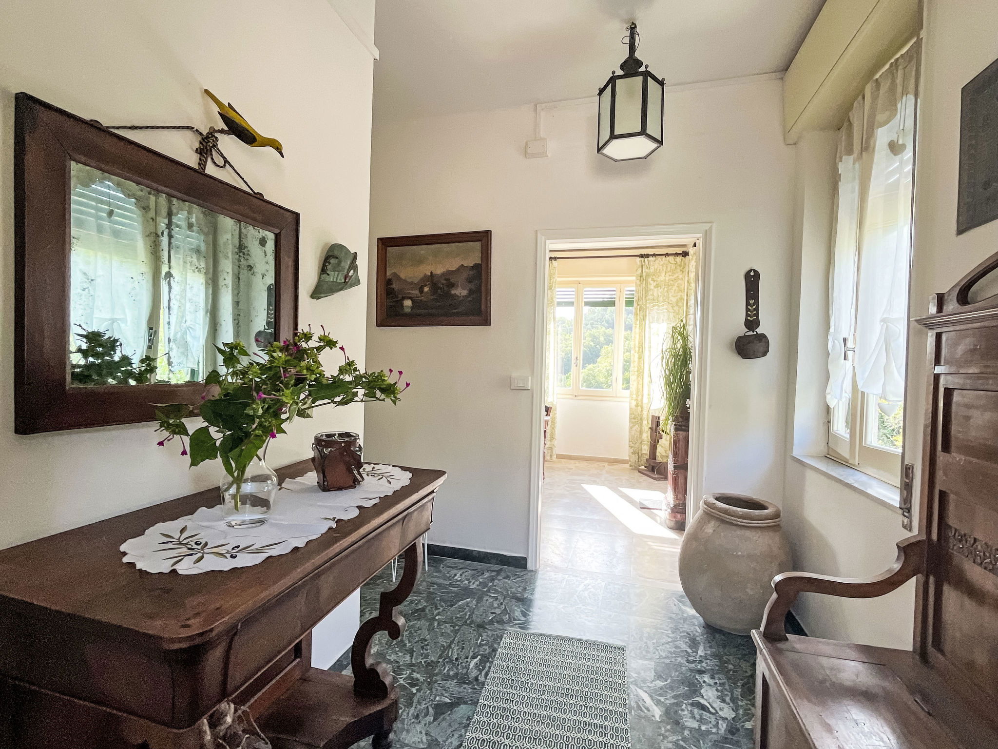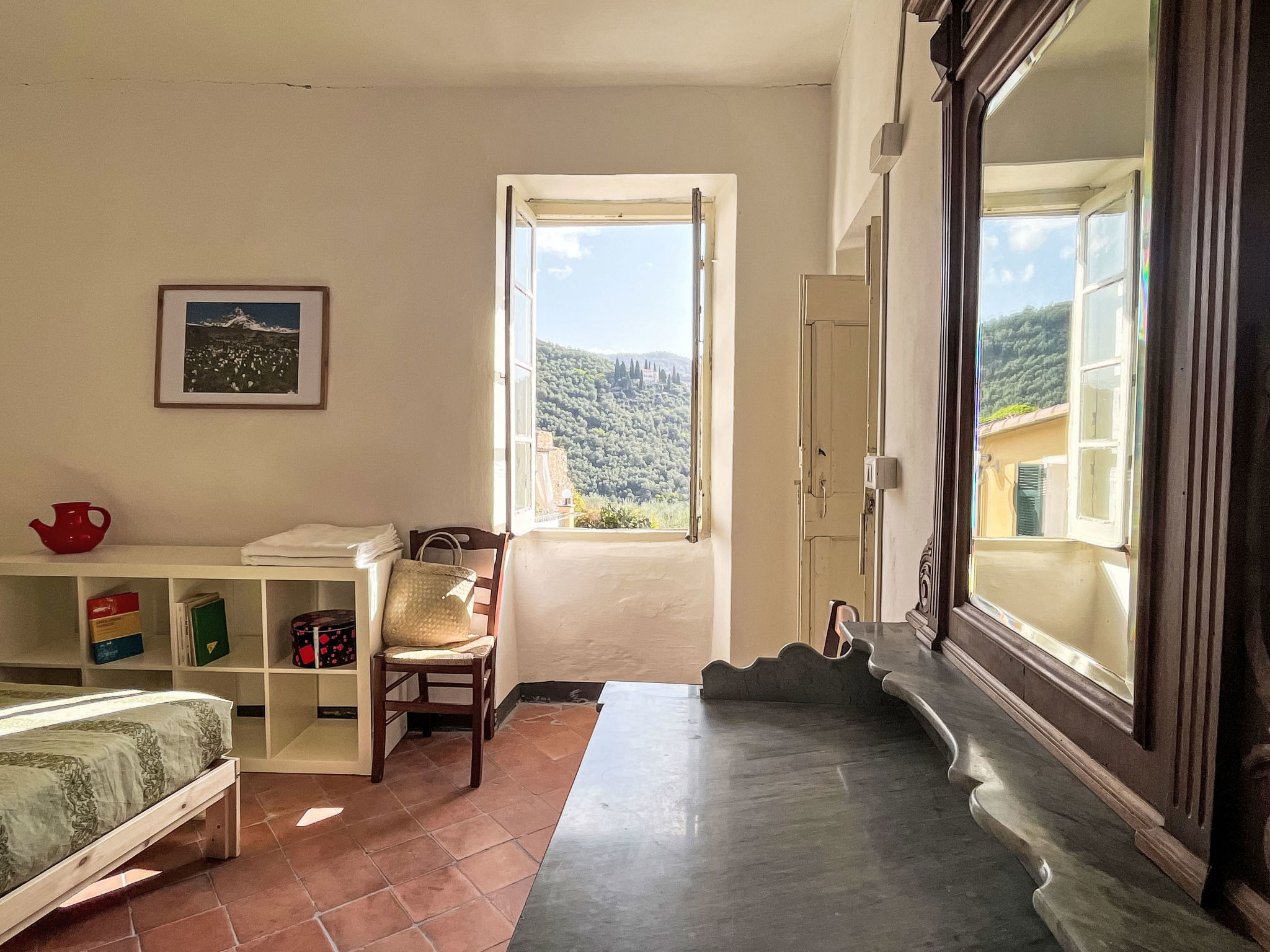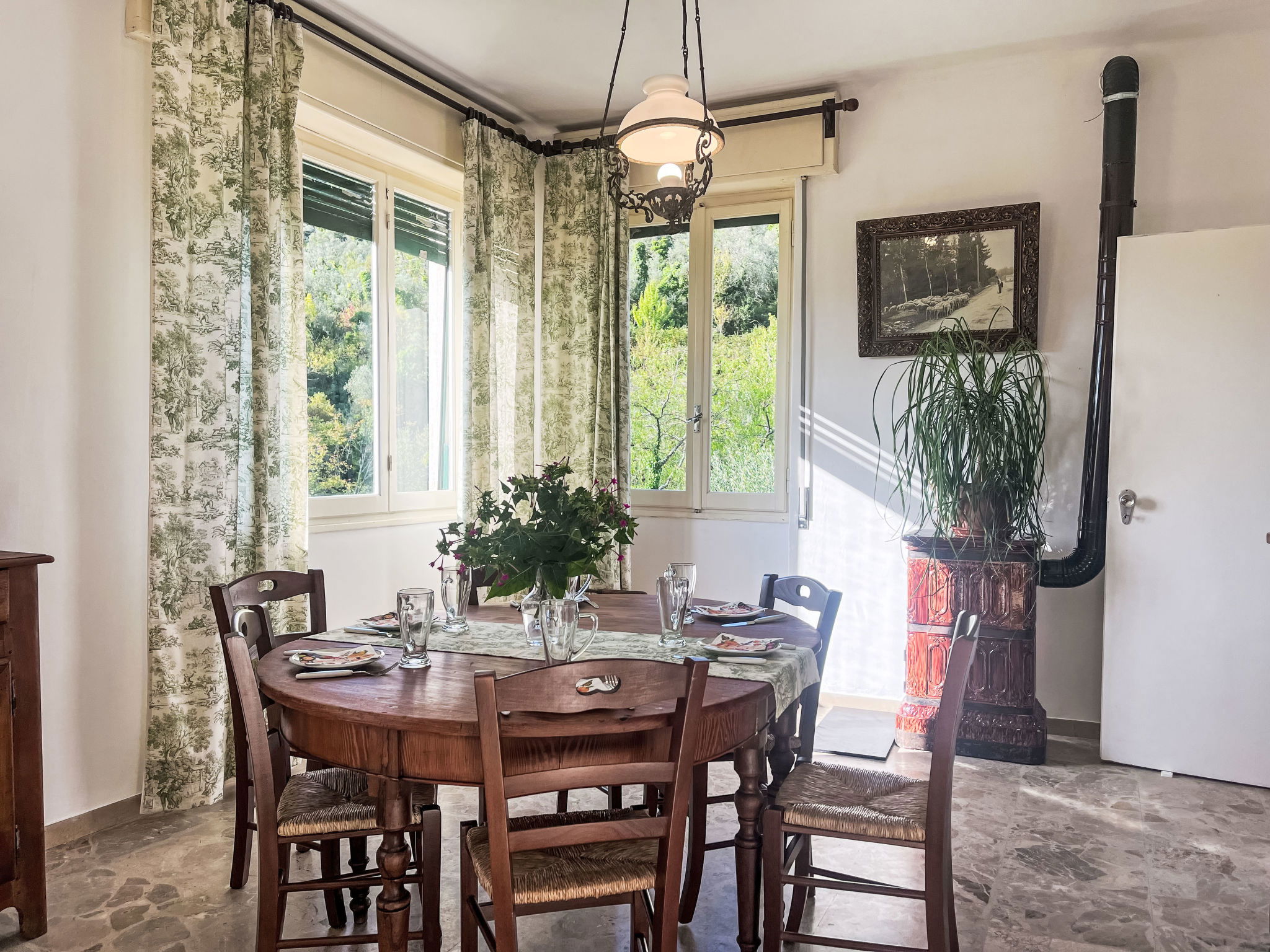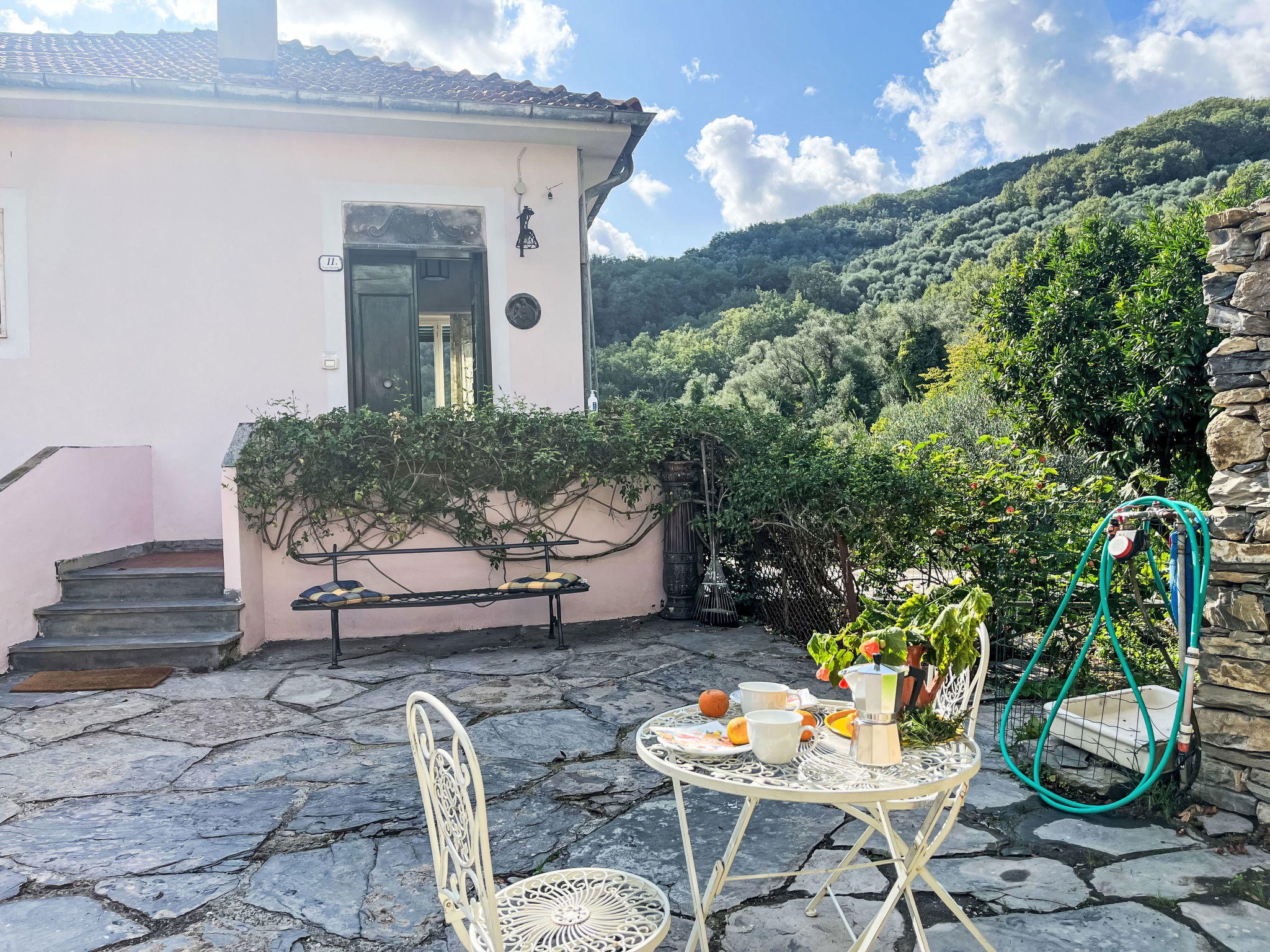 Large, cosy, historical 2-family house, 2 storeys. Above Molini di Prelá, in the district of Costiolo, in the resort 3 km from the centre of Molini di Prelá, 6 km from the centre of Dolcedo, 11 km from the centre of Imperia Porto Maurizio, in a sunny position on top of a hill, in the residential district, 11 km from the sea. Public parking 20 m. Shop 2 km, grocery 2 km, supermarket 11 km, restaurant 2 km, bar 2 km, bakery 2 km, café 2 km, bicycle rental 2 km, bus stop "Costiolo" 20 m, railway station "Imperia Oneglia" 17 km, sandy beach "Borgo Prino" 11 km pebble beach "Borgo Foce" 12 km, shingle beach "Borgo Foce Imperia" 12 km, bathing lake "Laghetti di Lecchiore" 7 km. Walking paths from the house 20 m, cycle lane 11 km. Nearby attractions: Dolcedo Mountainbiken am Monte Faudo 5 km, Küstenradweg von Imperia bis Ospedaletti 11 km, Lavendeldestilation in Pantasina 7 km, Valloria,Künstlerdorf,160 bemalten Türen 2 km. Hiking paths: Laghetti di Lecchiore (Wanderweg) 7 km. Please note: car recommended.