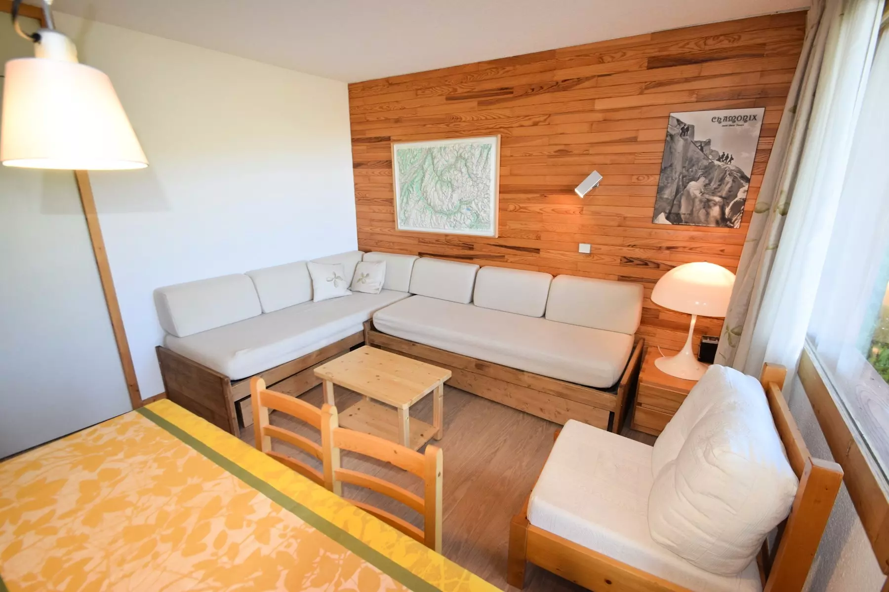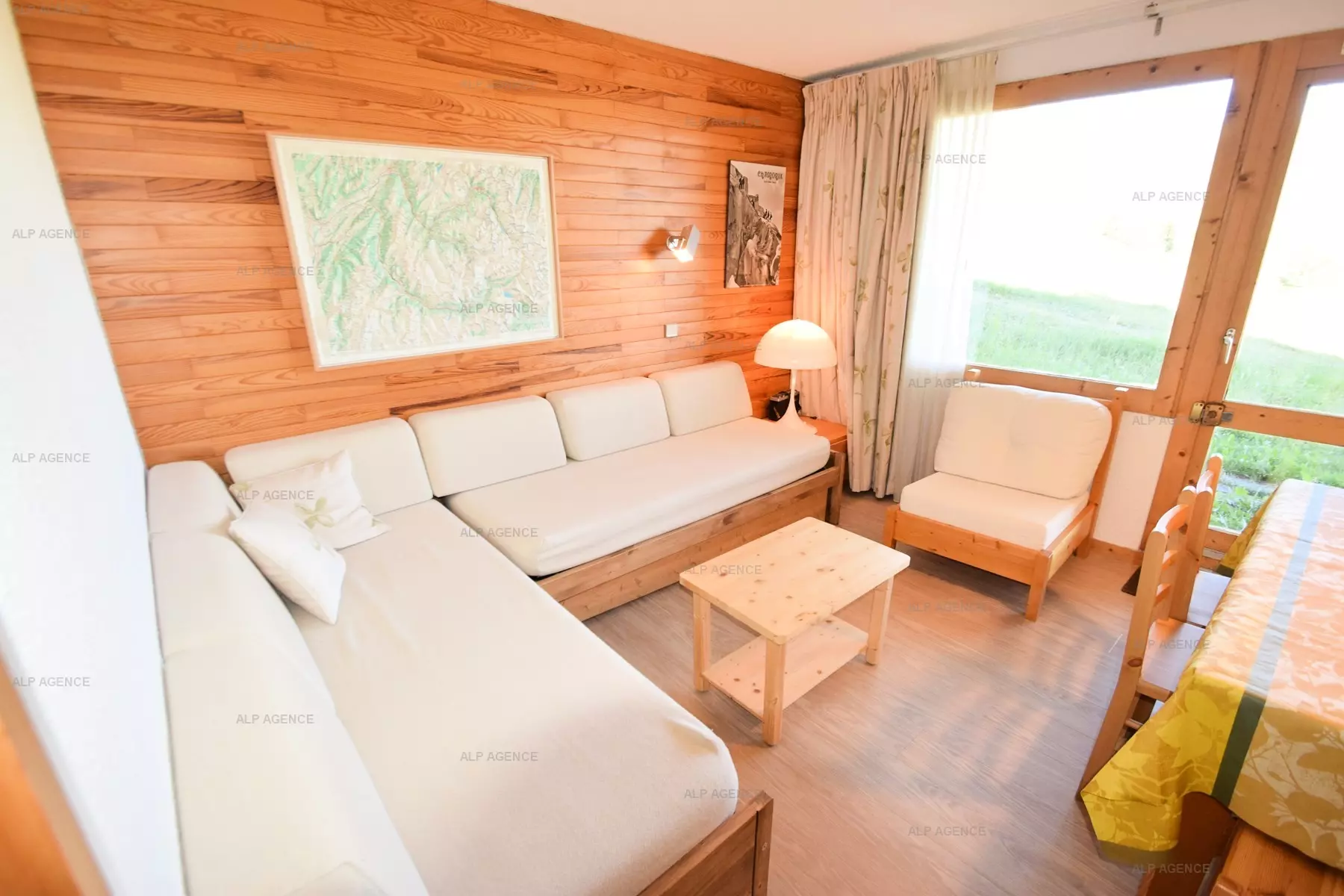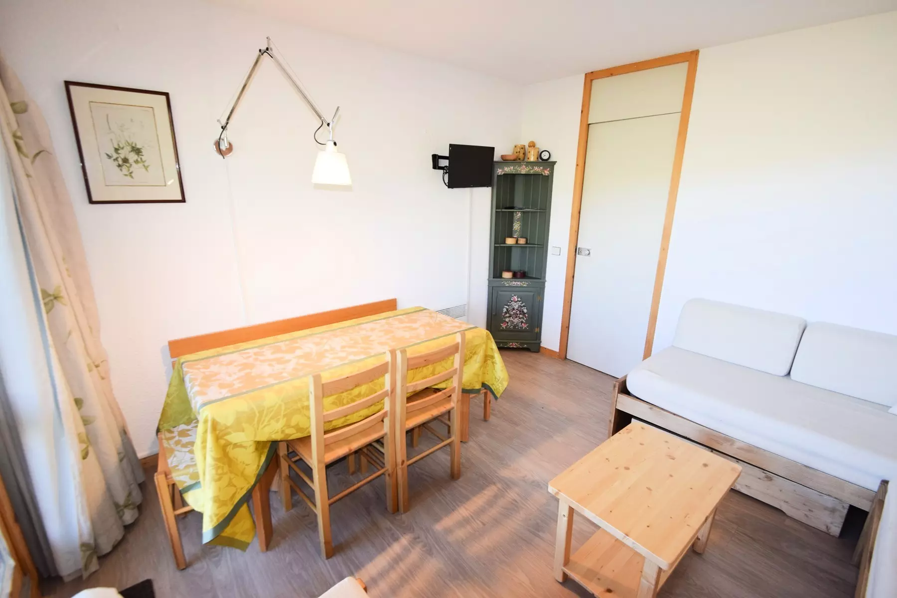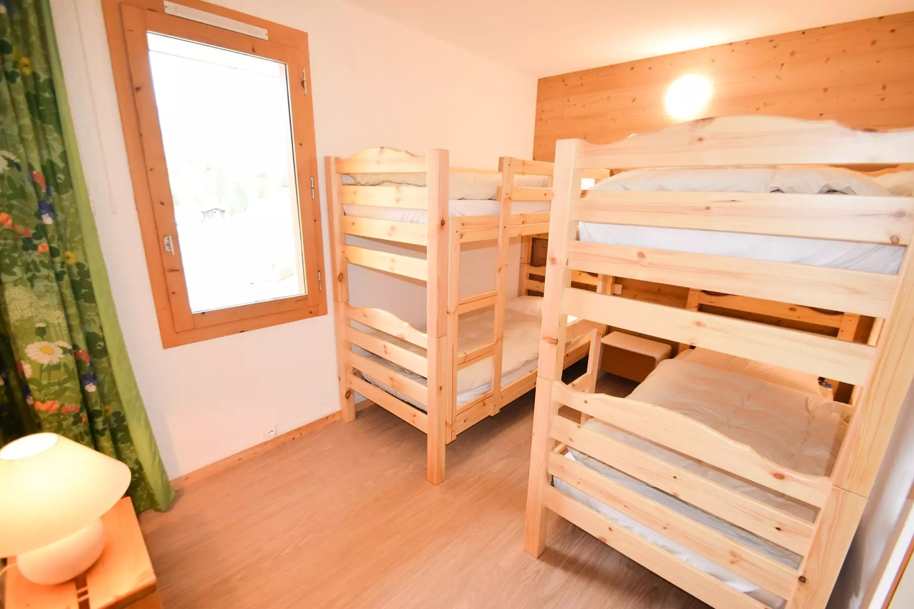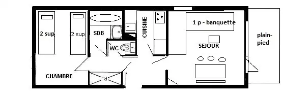 2-room apartment for 5 people, approx. 35 m2, South/West exposure, on one level with small terrace (snow removal not guaranteed), direct access and view of the slopes, Ground floor - Entrance 2 - Kitchen: 4 ceramic hobs, multi-wave oven, refrigerator, dishwasher - Living room: dining area, 1 single sofa bed (80cm) - Television - Bedroom: 2 x 2 bunk beds (80cm) - Bathroom: bathtub, separate WC. Floors: plastic - Bedding: 1p duvets - Optional with supplement: end-of-stay cleaning, sheets, towels, ski passes. Non-smoking apartment, pets not allowed. Optional and additional: end-of-stay cleaning, sheets, towels, ski passes. Ski locker n°21 on the ground floor. Bright apartment with very nice view of the slopes and direct access.