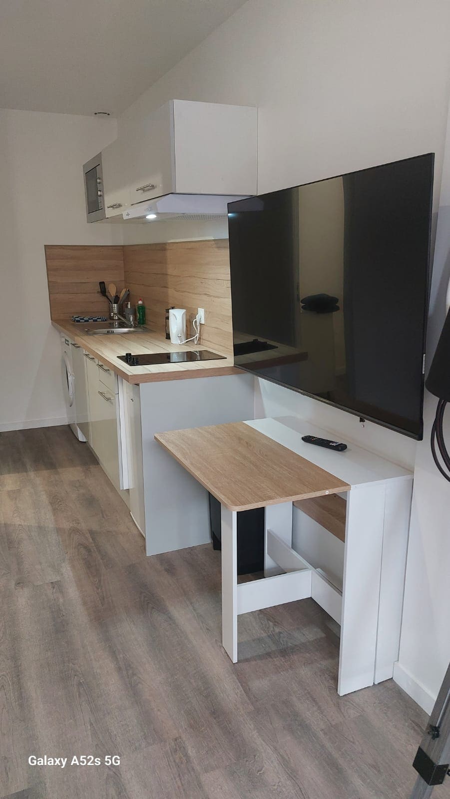 SER 5 is a comfortable studio apartment offering a modern and functional setting, ideal for a business trip, training course or family weekend. It has two single beds (90x200 cm) that can be pushed together to form a double bed, depending on your needs. You will enjoy a beautiful, modern living space with a 135 cm flat-screen TV, WiFi included, a dining area and storage space. Free parking is available on the street or on site (subject to availability).