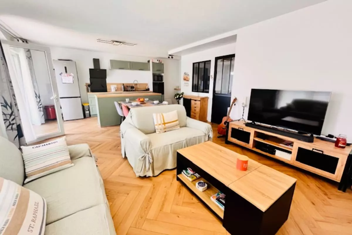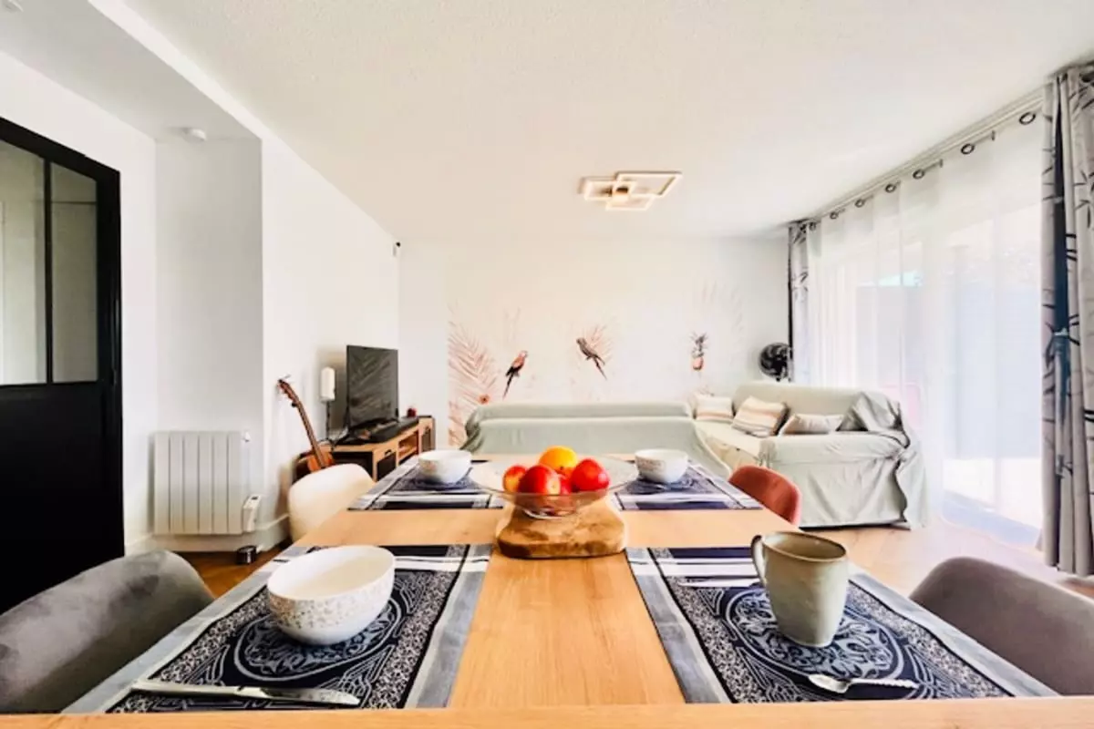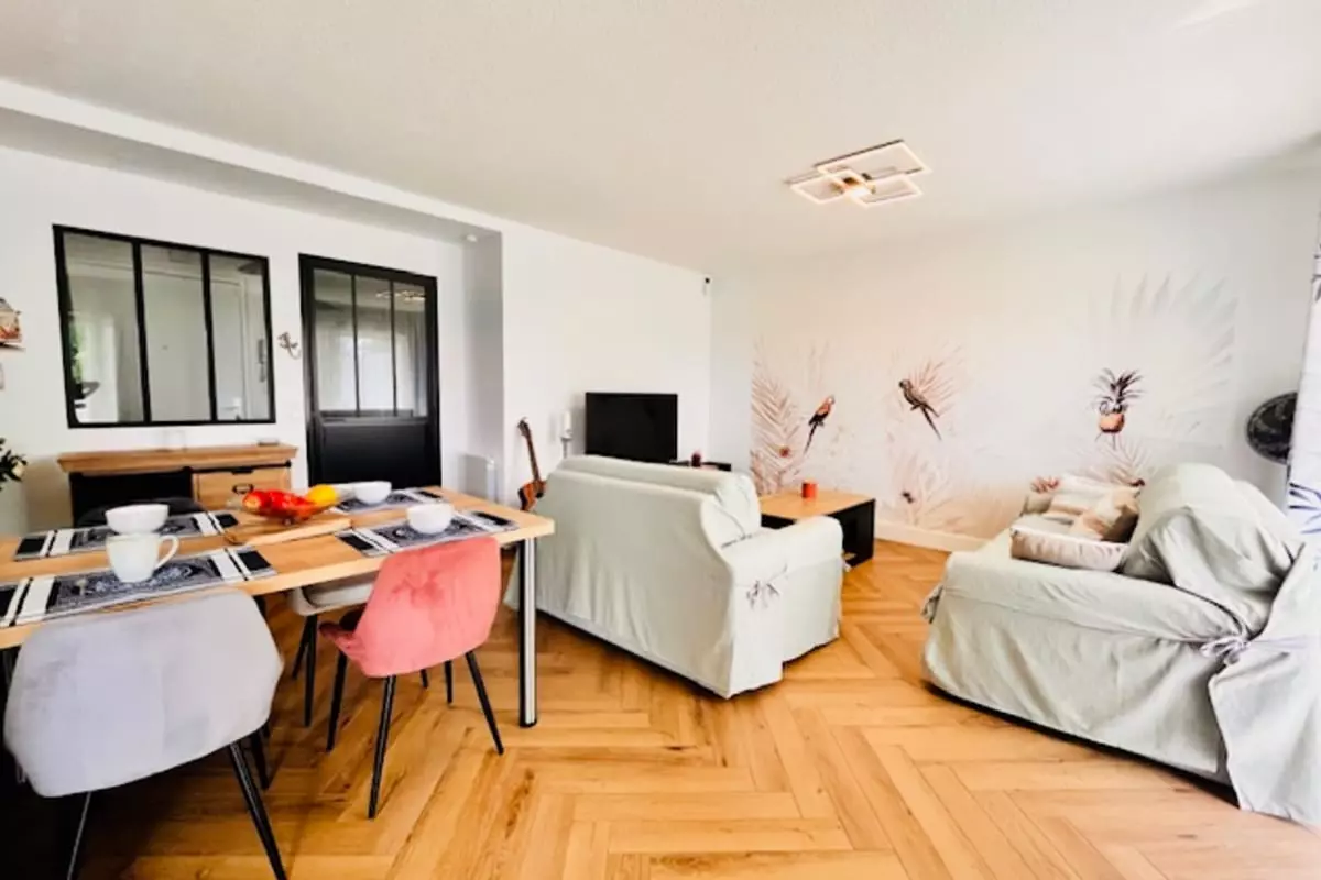 Discover this beautiful apartment in Aytré, ideal for a functional and relaxing stay. With a surface area of 63 m², it can accommodate up to 4 people. You'll find a comfortable bedroom with a 140 x 190 double bed, a fully equipped kitchen for preparing your meals, and a modern shower room. The living room, meanwhile, features a 140 x 190 sofa bed, perfect for relaxing after a day of exploring.