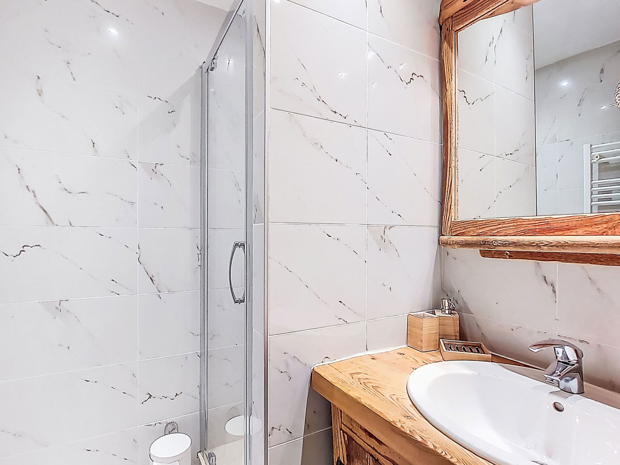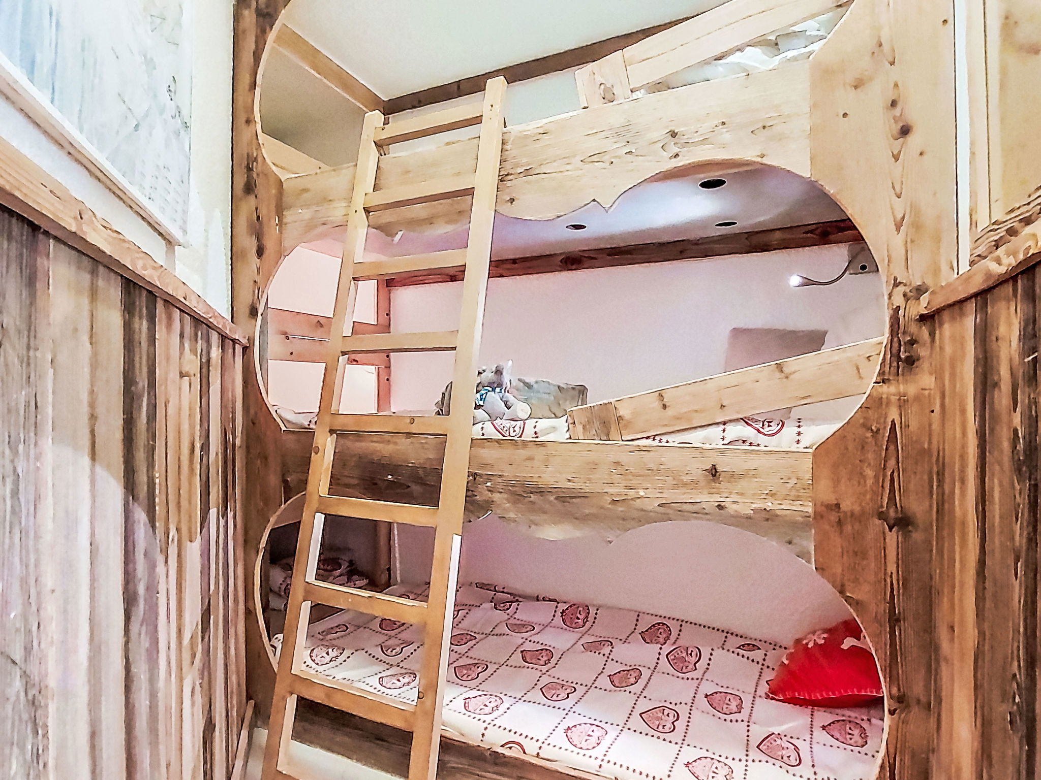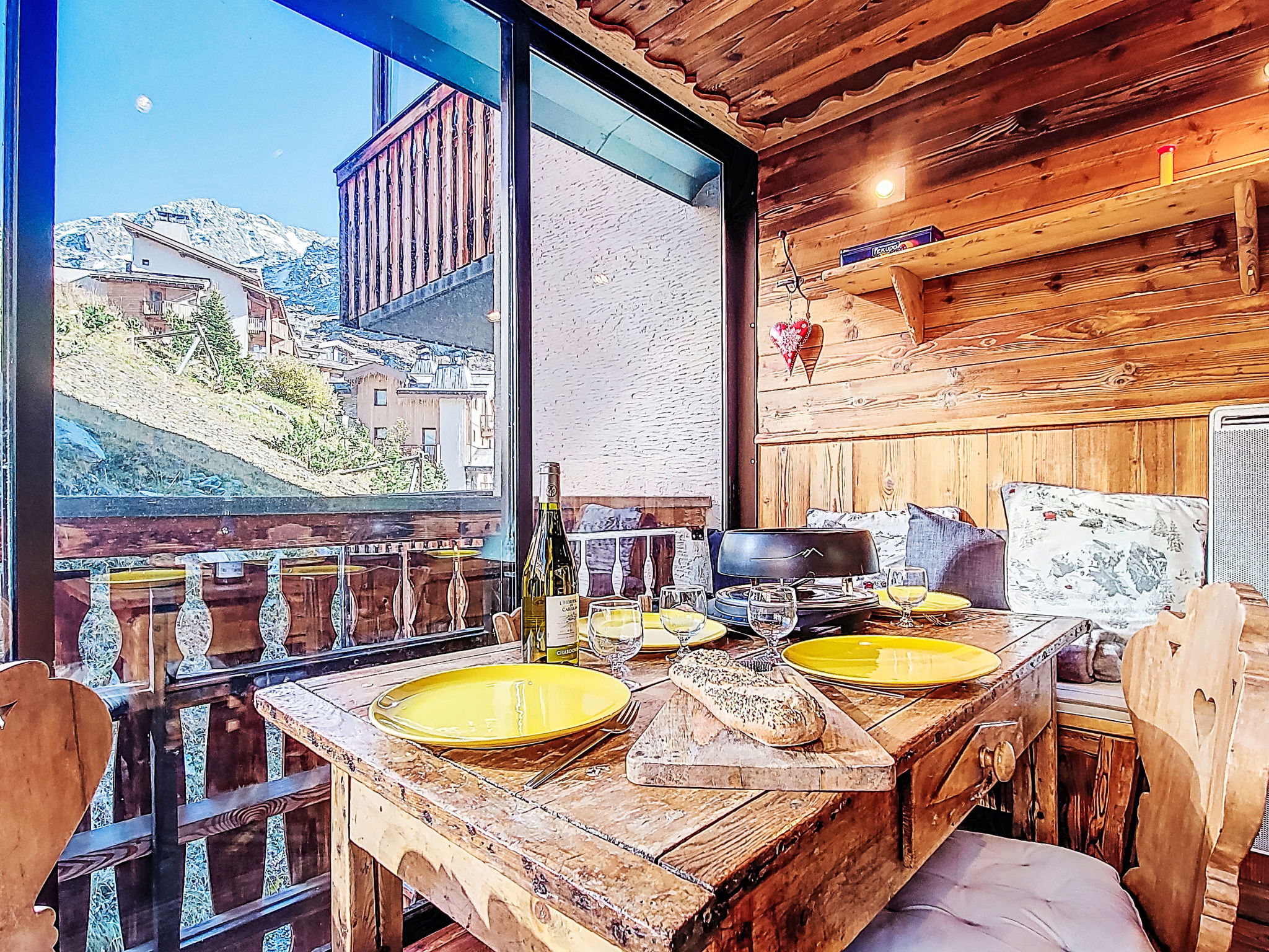 "Serac Y6", 1-room studio 29 m2, north facing position. Modern and wooden furniture furnishings: living/sleeping room with veranda with 1 double sofabed (1 x 140 cm, length 190 cm), TV, flat screen and electric heating. Sleeping alcove with 1 x 2 bunk beds (90 cm, length 190 cm) with dining table and dining nook. Exit to the veranda. Kitchenette (dishwasher, 3 induction hot plates, kettle, microwave, grill, electric coffee machine, cooking island). Shower, sep. WC. Natural stone floors. Partial view of the mountains, the valley, the ski run and the resort. Facilities: Internet (WiFi, extra). Please note: non-smokers only. Smoke alarm. Offer by a private individual according to Art. 155, IV of CGI.