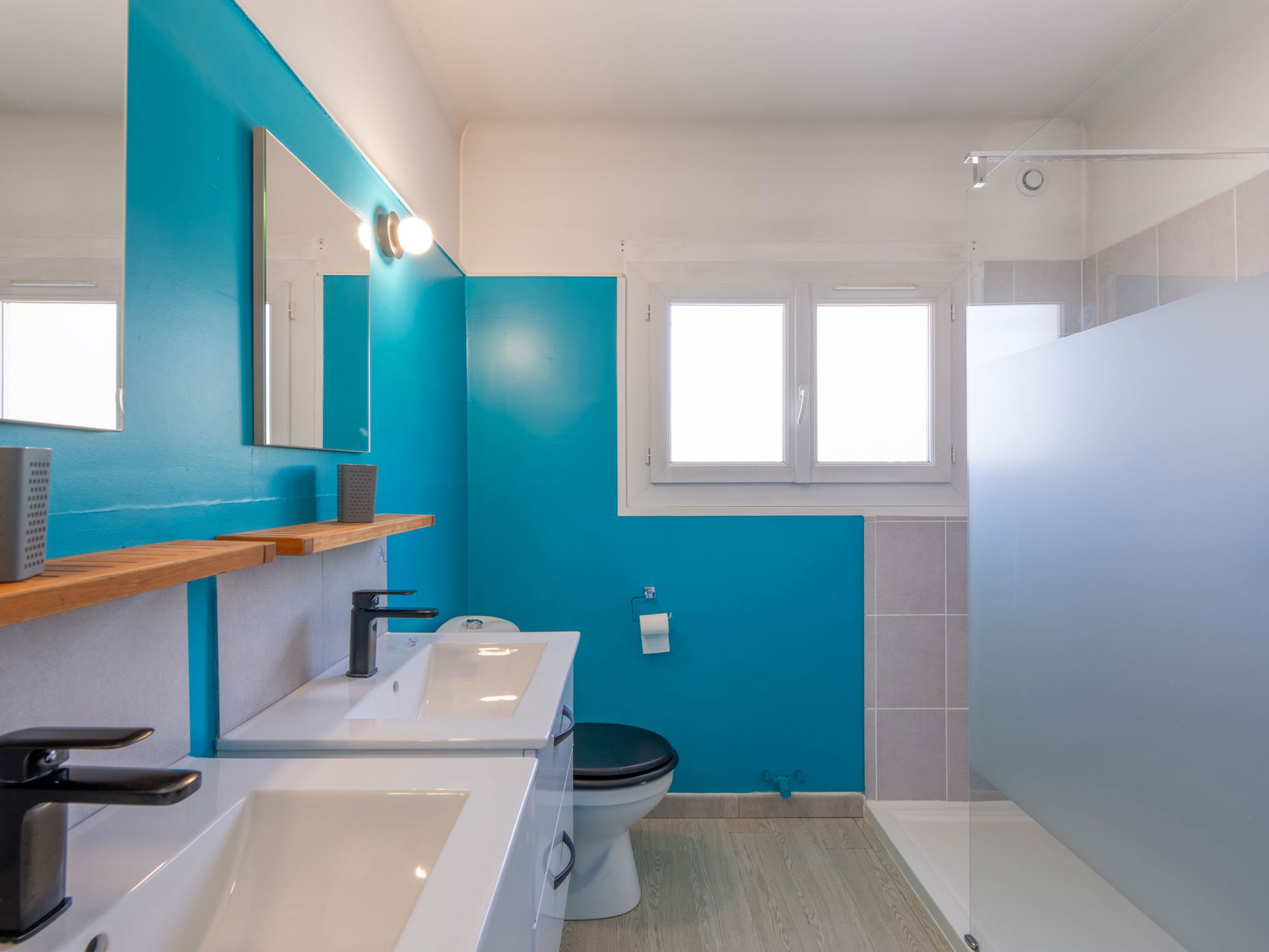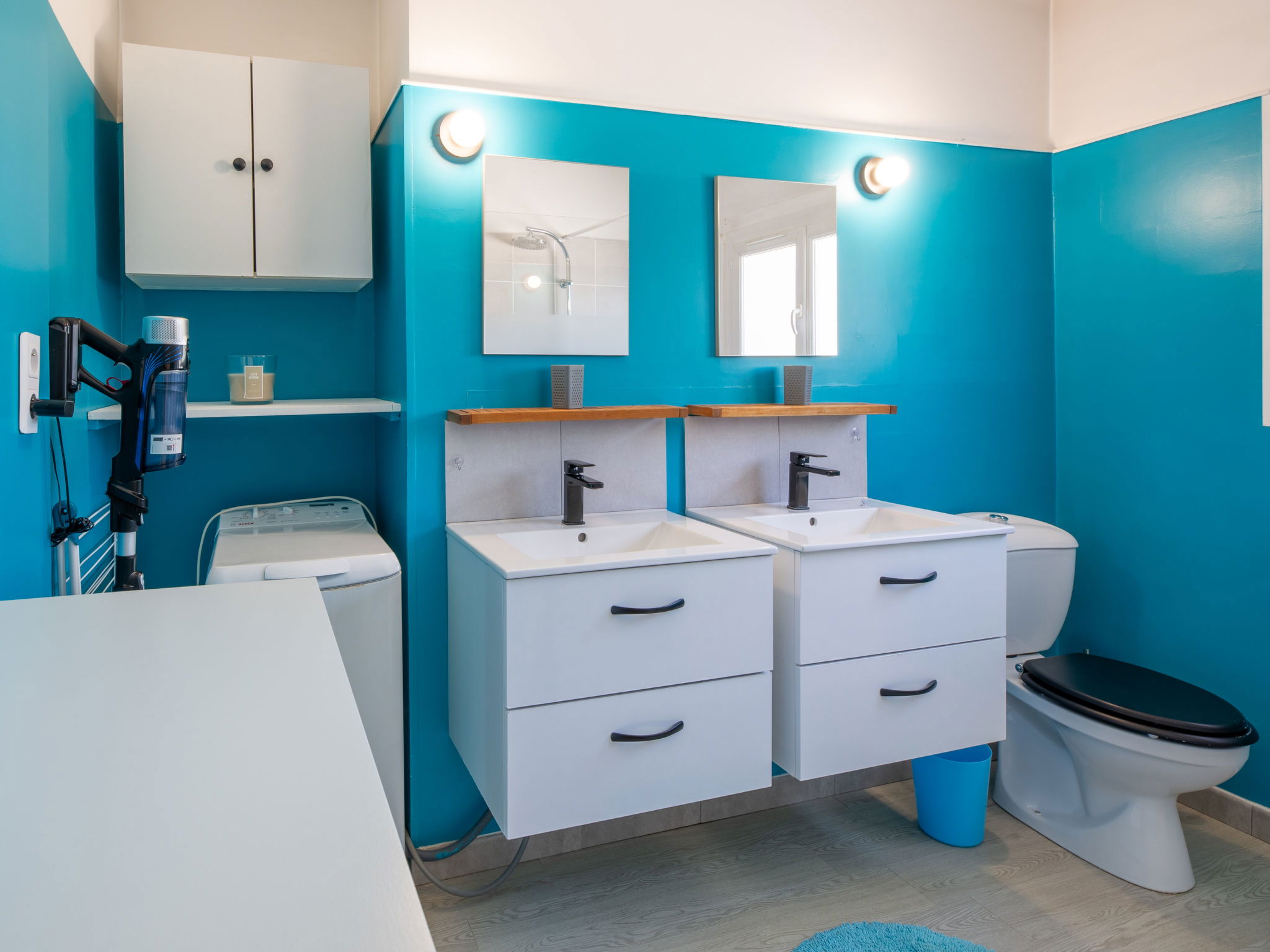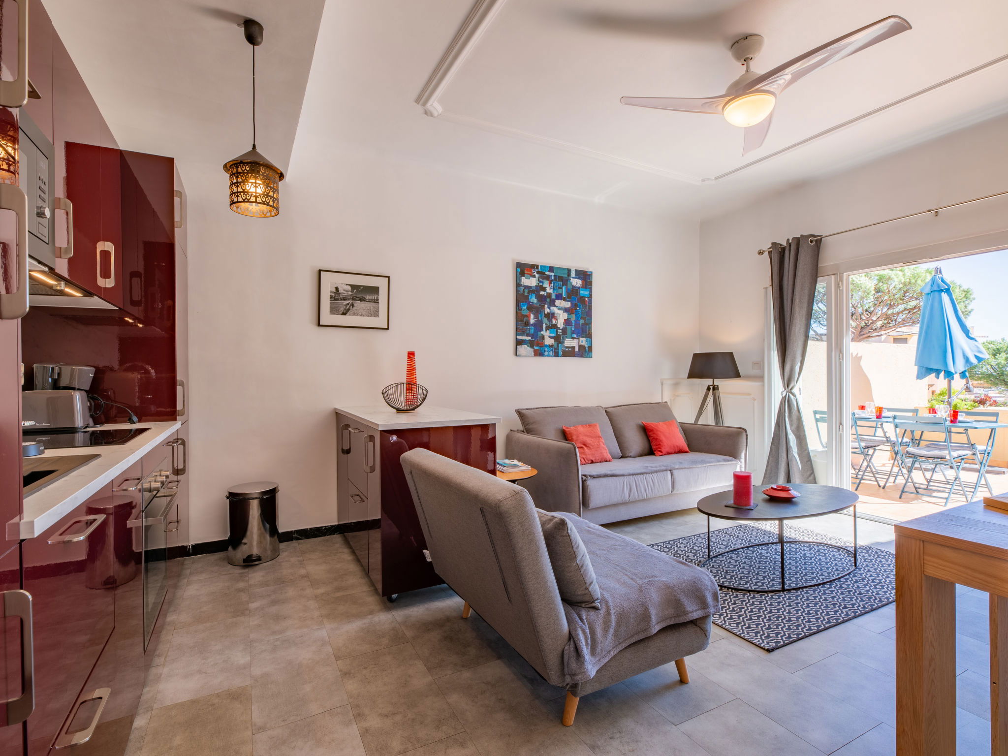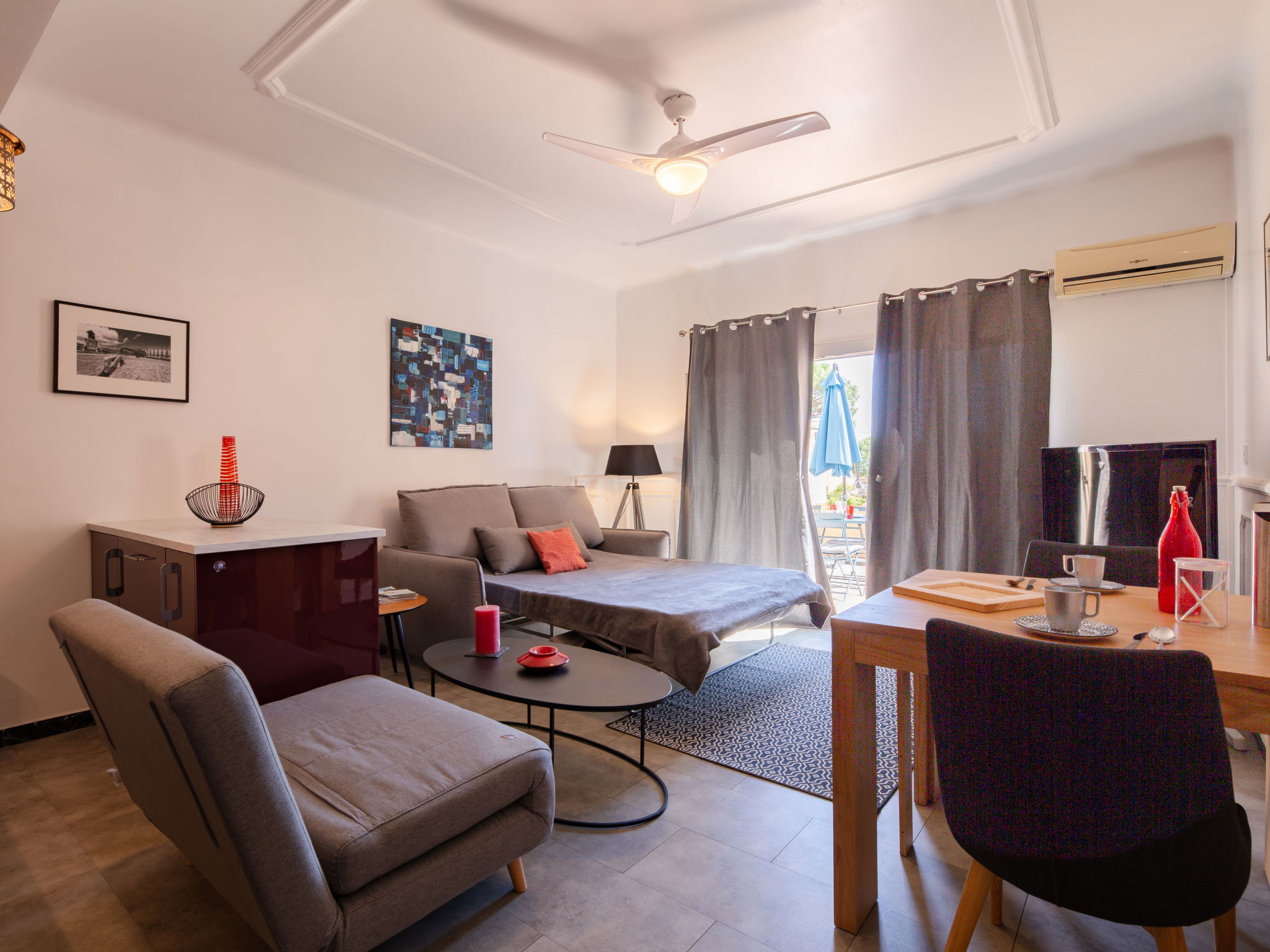 2-room apartment 40 m2, on the upper ground floor, south facing position. Beautiful furnishings: living/dining room with 1 double sofabed (1 x 140 cm, length 190 cm), TV (flat screen). Exit to the balcony. 1 room with 1 french bed (1 x 140 cm, length 190 cm). Open kitchen (oven, dishwasher, 4 ceramic glass hob hotplates, toaster, kettle, microwave, freezer, electric coffee machine). Shower/WC, double hand-basin. Air-conditioning, forced-air heating. Large terrace 16 m2, south facing position. Terrace furniture. View of the swimming pool. Facilities: washing machine, iron, hair dryer. Internet (WiFi, extra). Parking space n 24. Please note: non-smokers only. Smoke alarm. Offer by a private individual according to Art. 155, IV of CGI. 83115005412AK