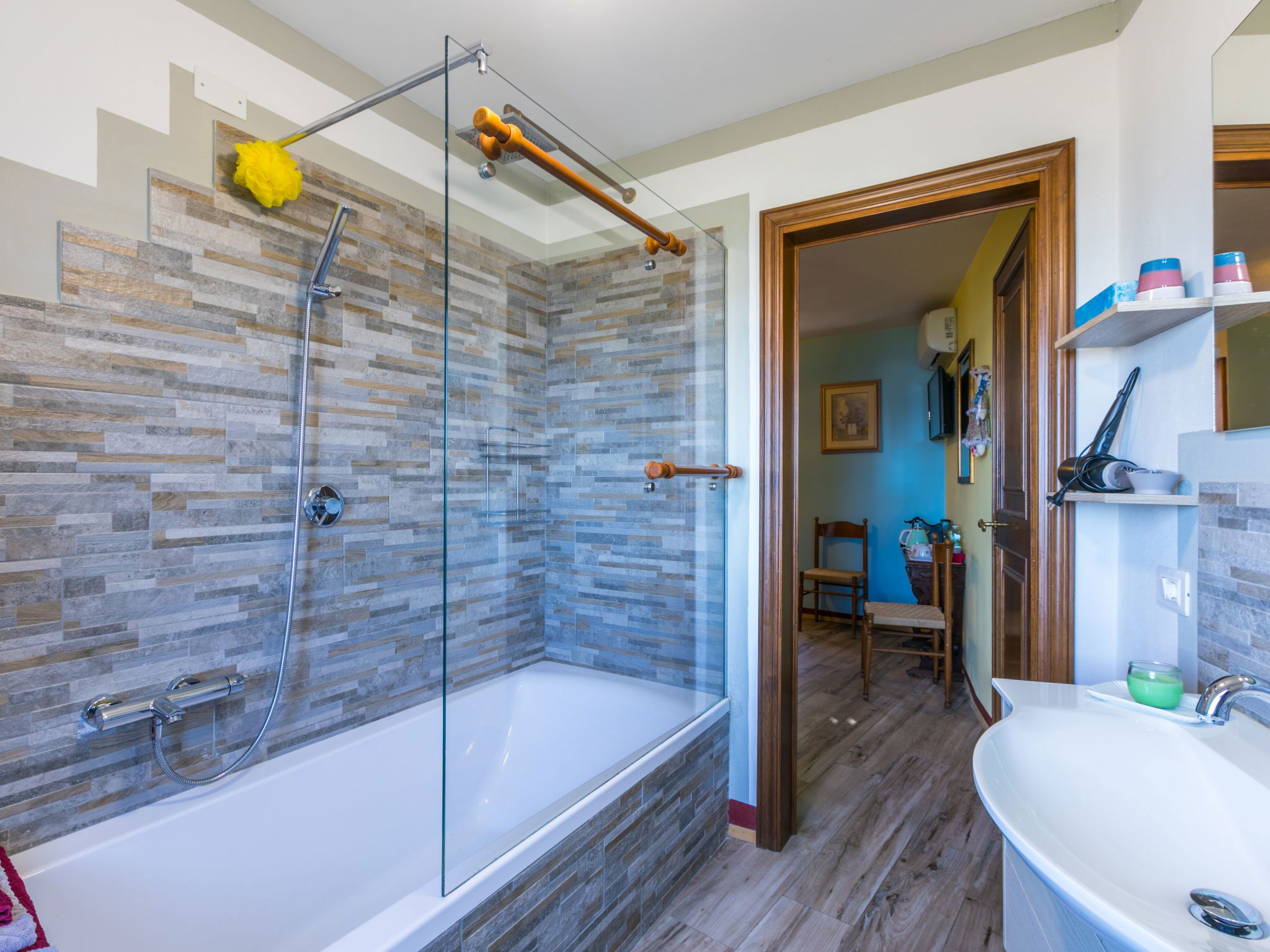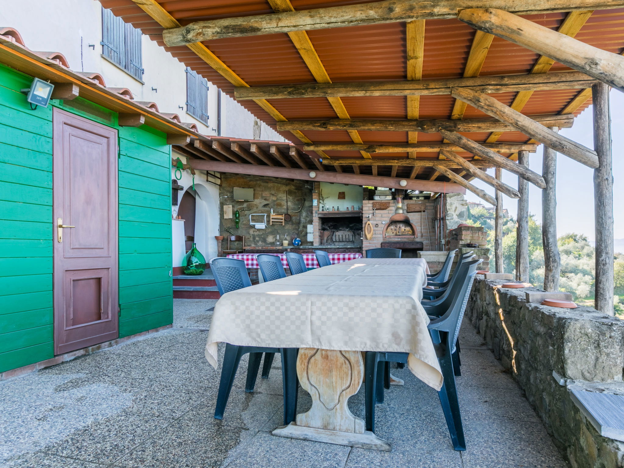 "La Sosta di Fano", 4-room semi-detached house 110 m2 on 2 levels, on the ground floor. Comfortable and cosy furnishings: living/dining room with TV, air conditioning and forced-air heating. 1 double bedroom with shower/bidet/WC, TV, air conditioning and forced-air heating. Kitchenette (4 hot plates, oven, dishwasher, toaster, kettle, microwave, freezer). Upper floor: (spiral staircase), 1 double bedroom with shower/bidet/WC, TV, air conditioning and forced-air heating. 1 double bedroom with bath/bidet/WC, TV, air conditioning and forced-air heating. Patio roofed. Terrace furniture. Panoramic view of the countryside. Facilities: washing machine, iron, mosquito net, children's high chair, baby cot for up to 2 year olds, hair dryer. Internet (WiFi, free). Please note: suitable for families. Maximum 1 pet/ dog allowed. Smoke alarm, fire extinguisher. IT048035C17IYTPXSR