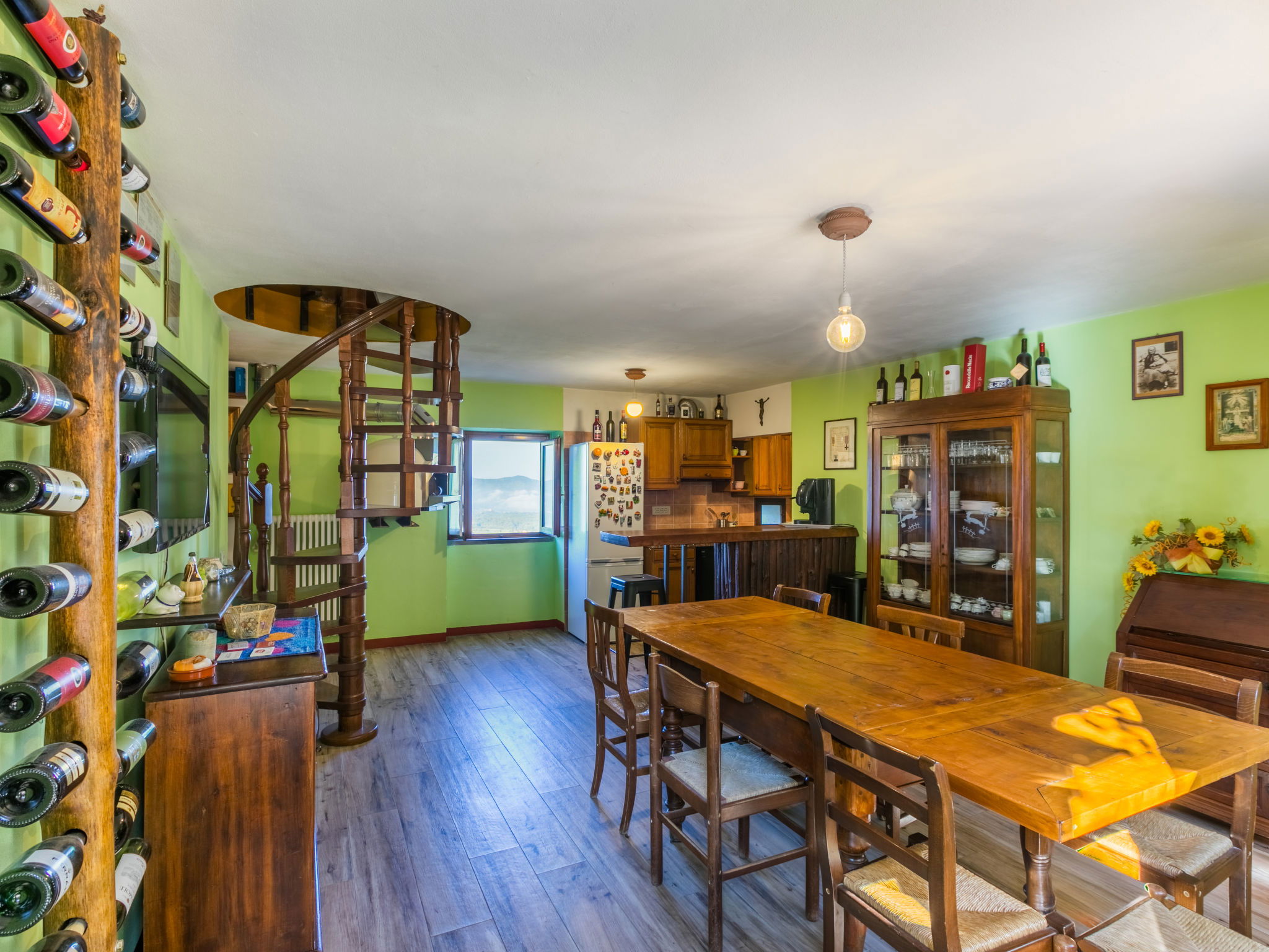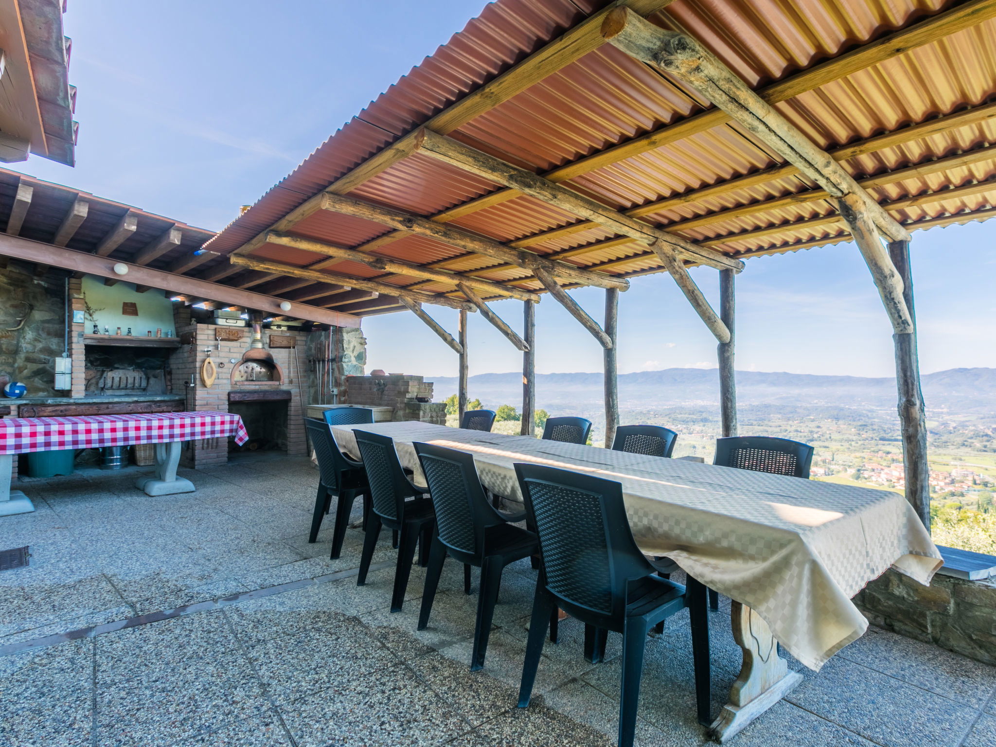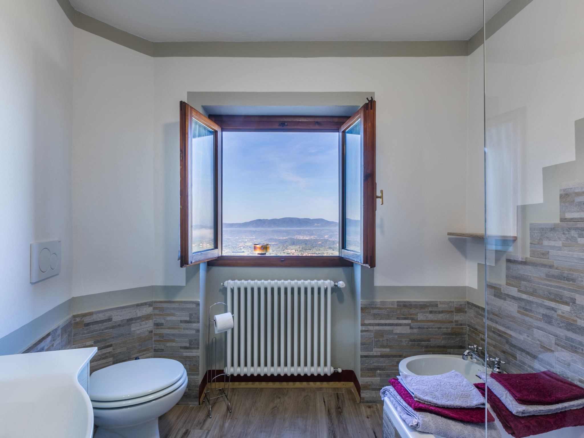 Country house 450 m a.s.l., semi-detached. 1.4 km from the centre of Reggello, 30 km from the centre of Greve in Chianti, 40 km from the centre of Firenze, in an elevated position on top of a hill, in the countryside. Private: terraced garden (fenced), swimming pool heated, fenced (8 x 6 m, depth 140 cm, seasonal availability: 04.Apr. - 24.Oct.). Shower/WC in the pool area, garden furniture. In the house: central heating system, heating to be paid on the spot, heating available only from 01.Nov. - 04.Apr.. Cook on request (extra). Parking on the premises. Shop, grocery, supermarket 700 m, bus stop 2 km, railway station "Figline Valdarno" 12 km, bathing lake "Bilancino" 70 km. Tennis 1 km, riding stable 1 km. Nearby attractions: Castelfranco di Sopra 12 km, Vallombrosa 13 km, Loro Ciuffenna 21 km, Gaiole in Chianti 36 km, Panzano in Chianti, Radda in Chianti 38 km, Siena 75 km. Please note: car recommended.