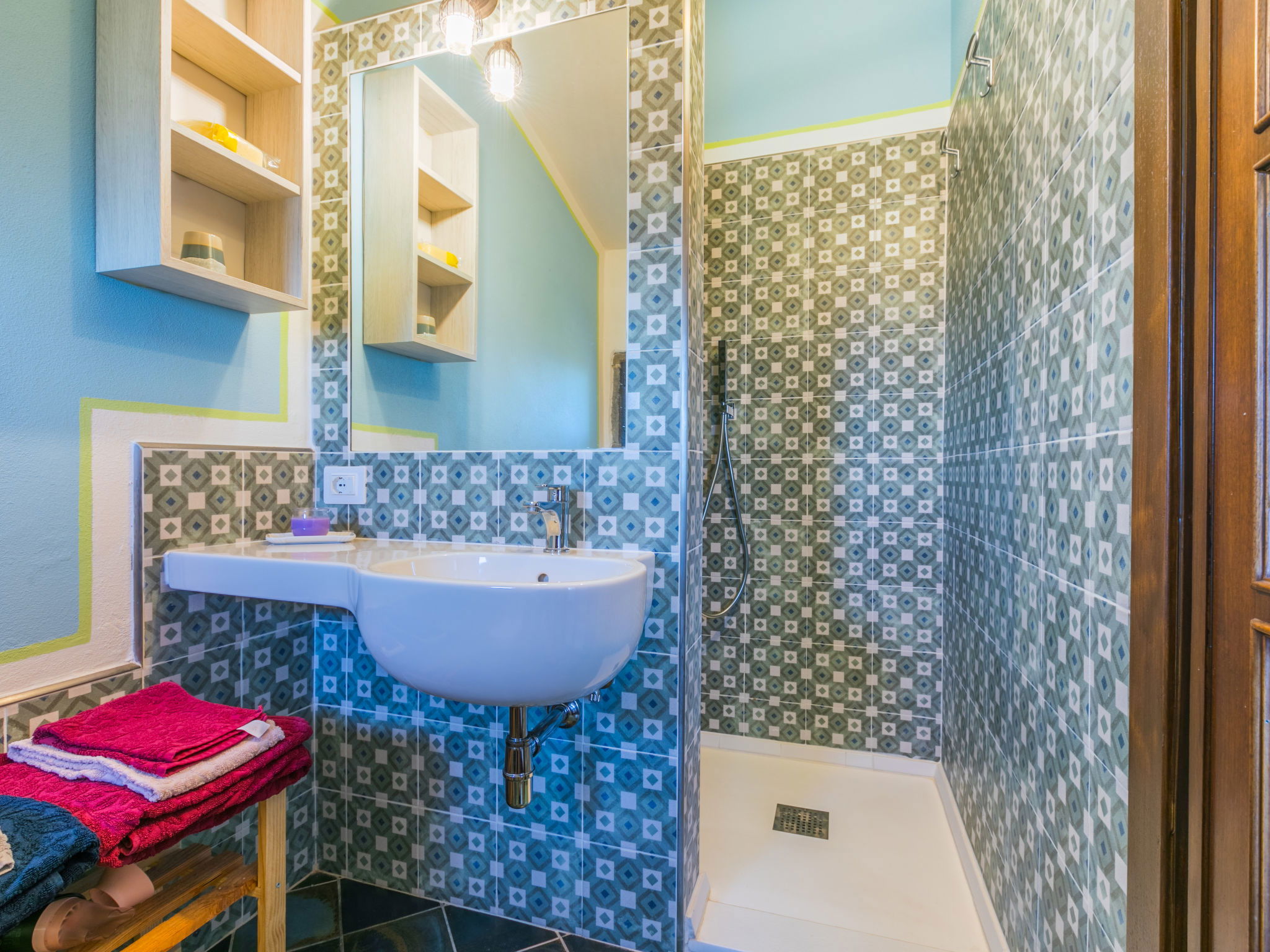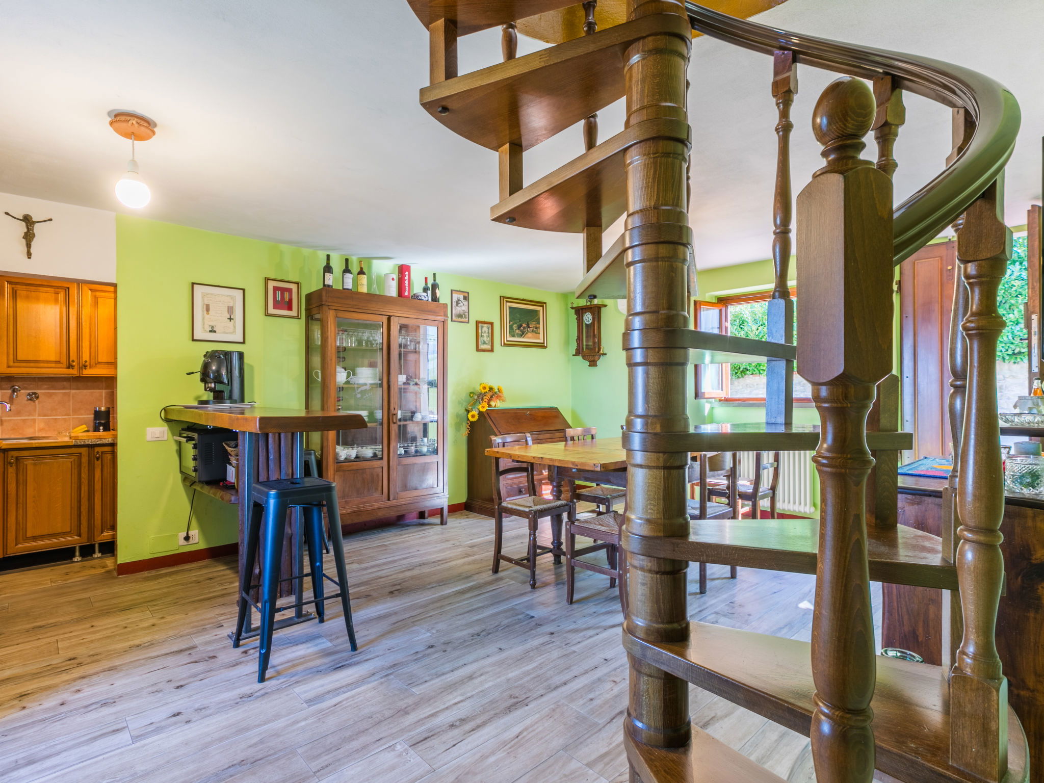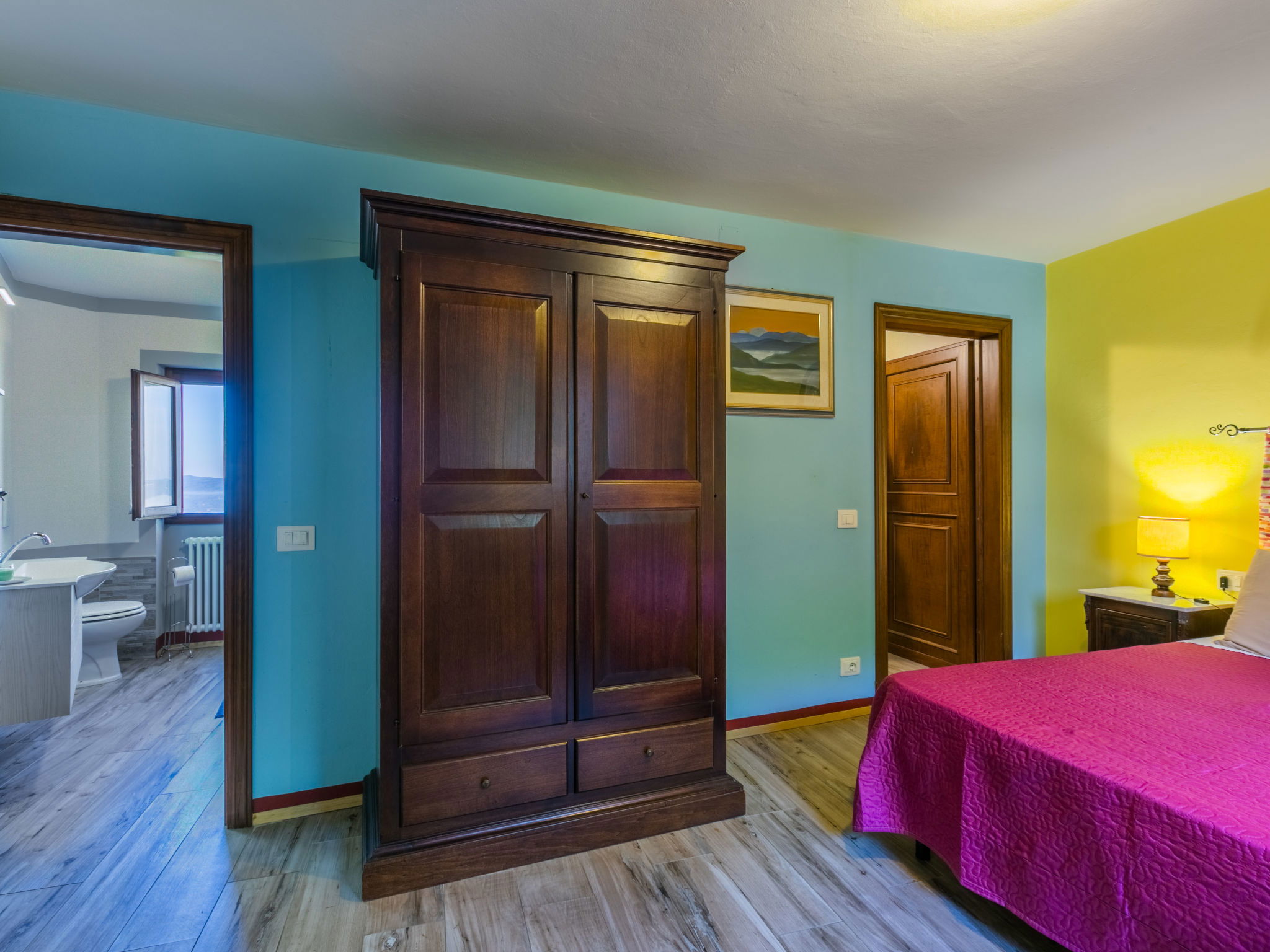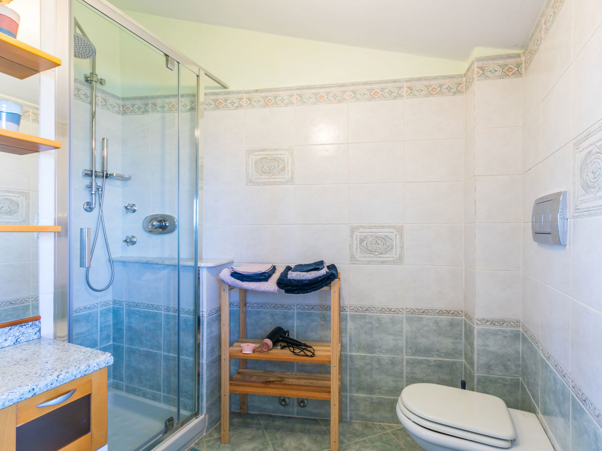 Country house 450 m a.s.l., semi-detached. 1.4 km from the centre of Reggello, 30 km from the centre of Greve in Chianti, 40 km from the centre of Firenze, in an elevated position on top of a hill, in the countryside. Private: terraced garden (fenced), swimming pool heated, fenced (8 x 6 m, depth 140 cm, seasonal availability: 04.Apr. - 24.Oct.). Shower/WC in the pool area, garden furniture. In the house: central heating system, heating to be paid on the spot, heating available only from 01.Nov. - 04.Apr.. Cook on request (extra). Parking on the premises. Shop, grocery, supermarket 700 m, bus stop 2 km, railway station "Figline Valdarno" 12 km, bathing lake "Bilancino" 70 km. Tennis 1 km, riding stable 1 km. Nearby attractions: Castelfranco di Sopra 12 km, Vallombrosa 13 km, Loro Ciuffenna 21 km, Gaiole in Chianti 36 km, Panzano in Chianti, Radda in Chianti 38 km, Siena 75 km. Please note: car recommended.