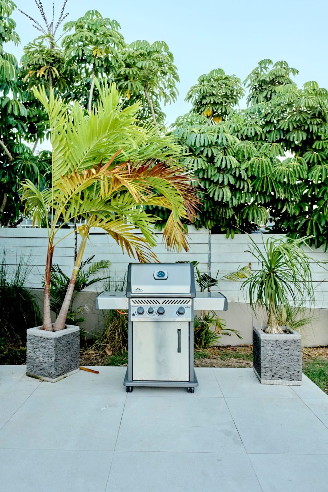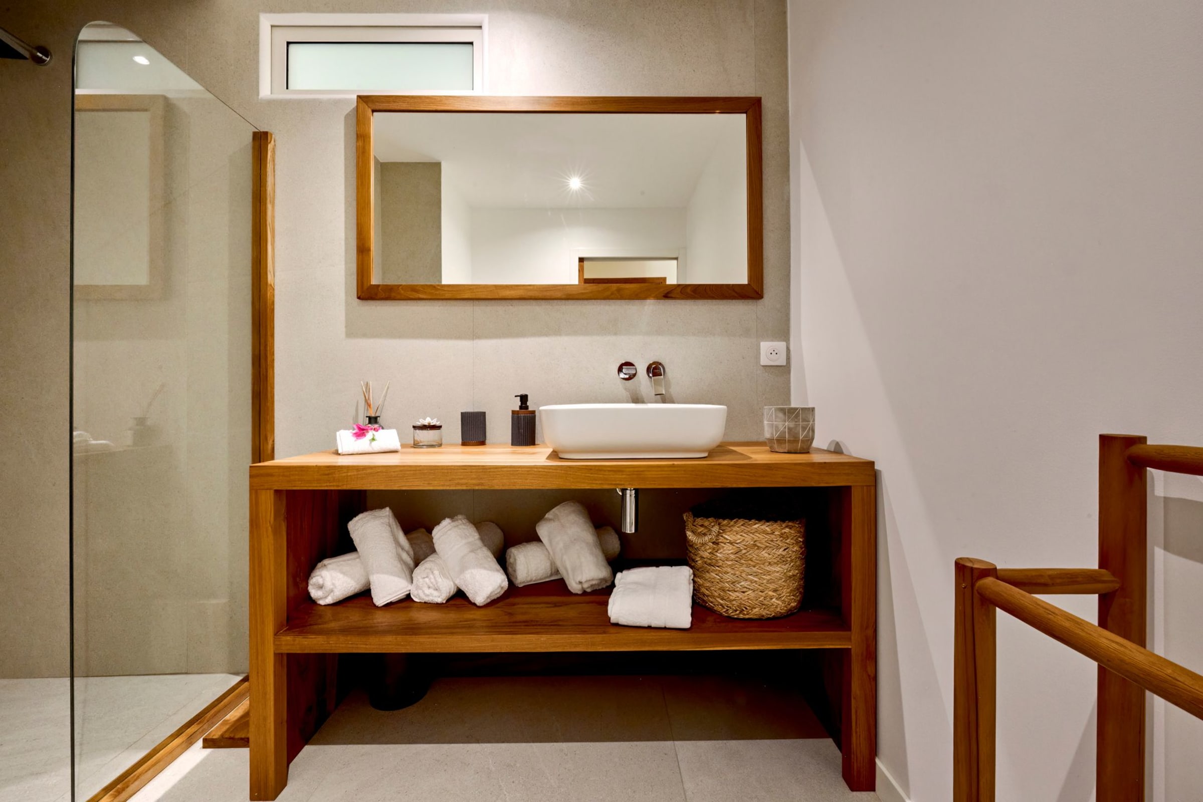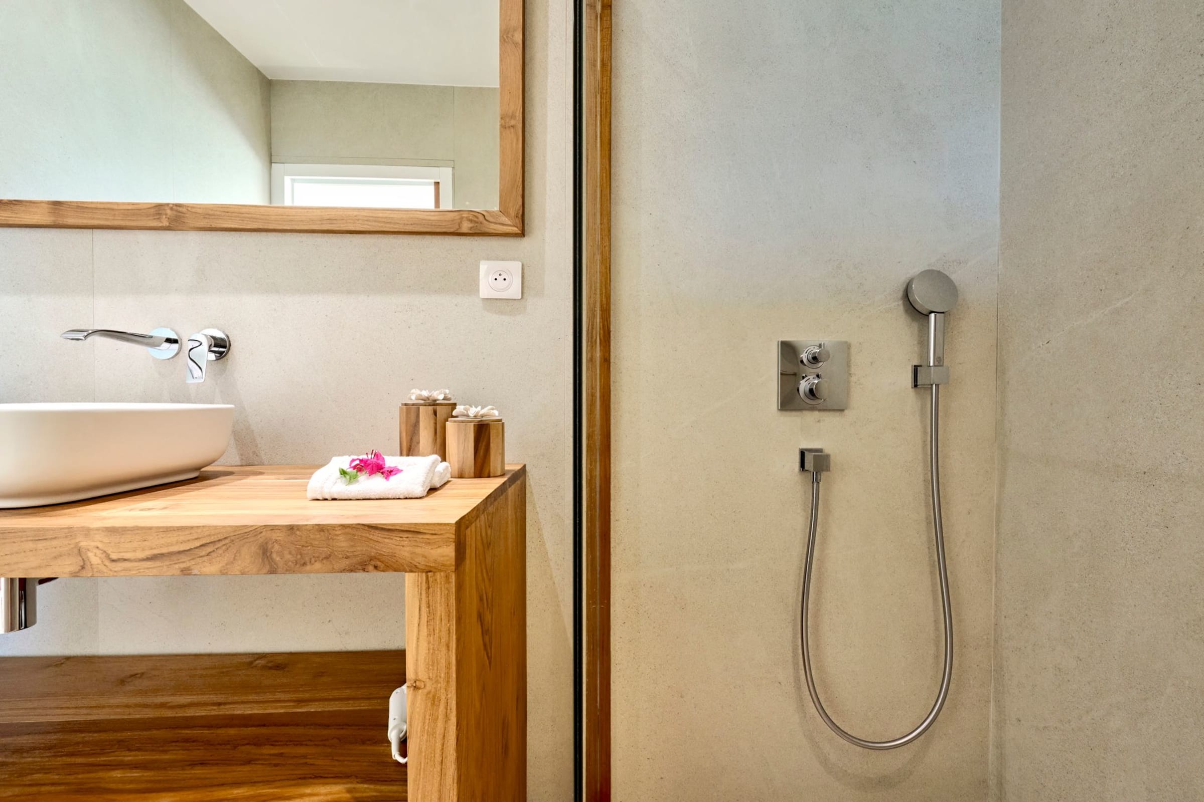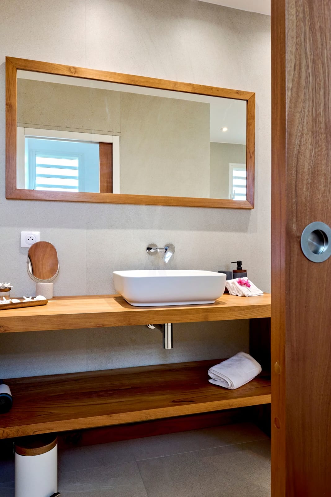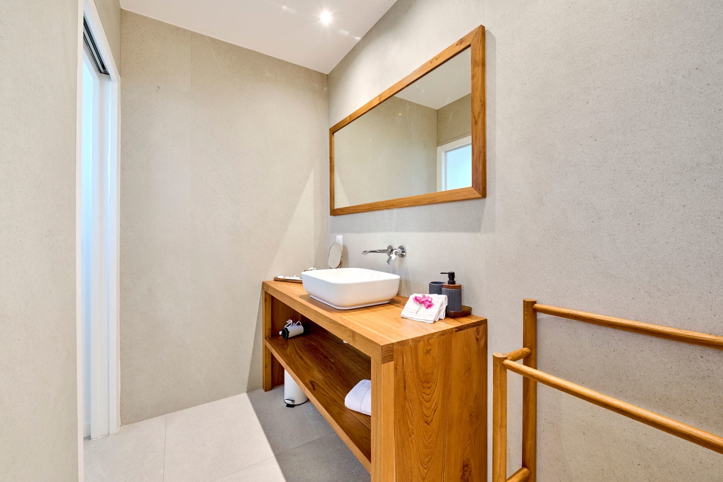 At the heart of the villa lies a modern and functional open-plan kitchen, fully equipped and complemented by a second area designed for casual breakfasts. Flowing naturally from this space, the fully air-conditioned living room offers a warm and refined atmosphere, with a cozy sofa and a large screen for moments of pure relaxation. Bathed in natural light, a games room will soon add a new dimension to leisure and entertainment within the villa.