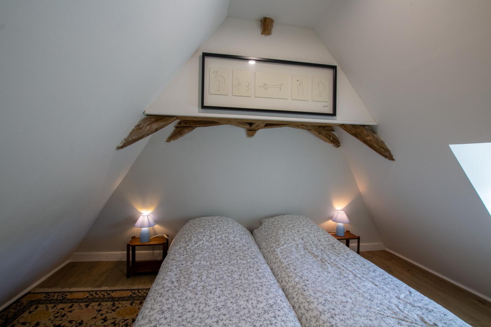 A spiral staircase leads to the last attic bedroom, which has two 80x190cm beds.