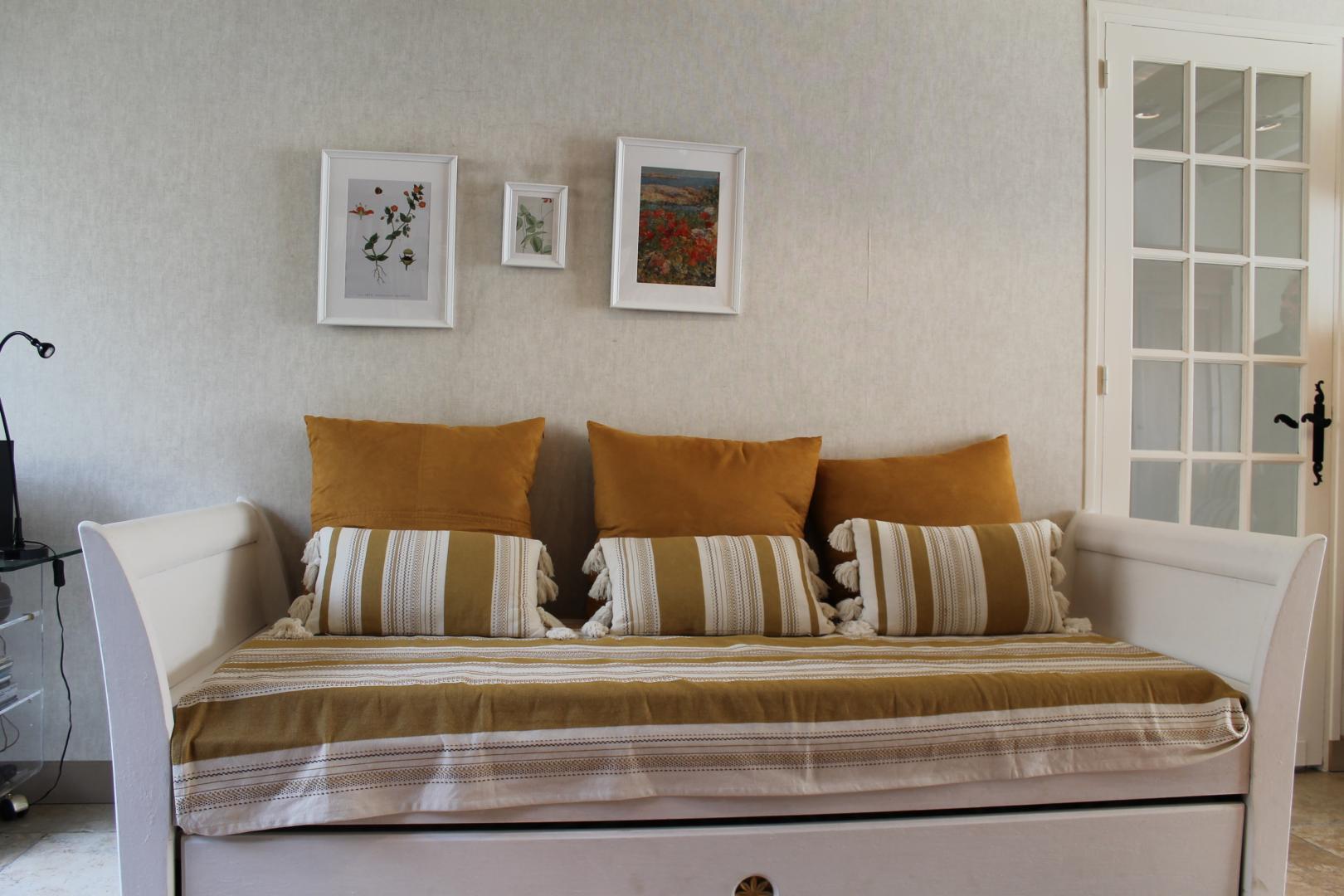 This charming detached house is located opposite the owners' house, with no vis-à-vis. On the ground floor, you will find a fully equipped kitchen with a dining area, a cozy living room (sofa, pull-out sofa bed, TV, Wi-Fi) and a veranda. After 4 steps, you will have access to the 2 bedrooms, one equipped with a 160x200 bed and the other with 2 single beds.