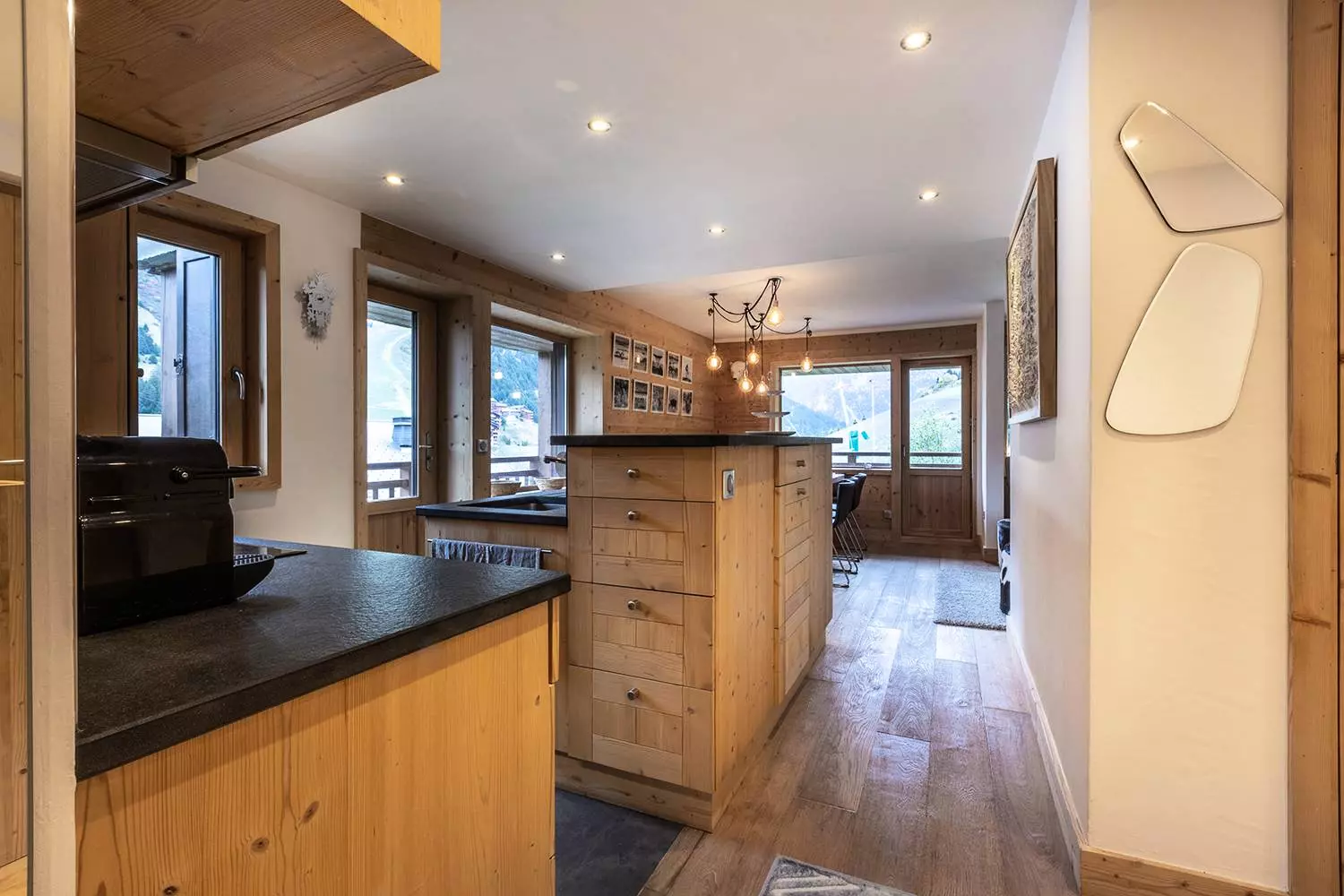 This apartment is located in the PAS DU LAC residence, on the edge of the slopes and close to all amenities. Ski departure from your balcony. Sleeping arrangements: Bedroom 1: 1 bed 160, Bedroom 2: 2 beds 90, Bedroom 3: 2 bunk beds (sleeps 4 80). Bedroom 4: 1 bed 140. Non-smoking apartment / Pets not allowed. The ground floor consists of a large living room with a fully equipped open kitchen. Double bedroom en suite (shower room) and dressing room. Separate toilet and cloakroom in the entrance. Large balconies facing SOUTH and EAST.