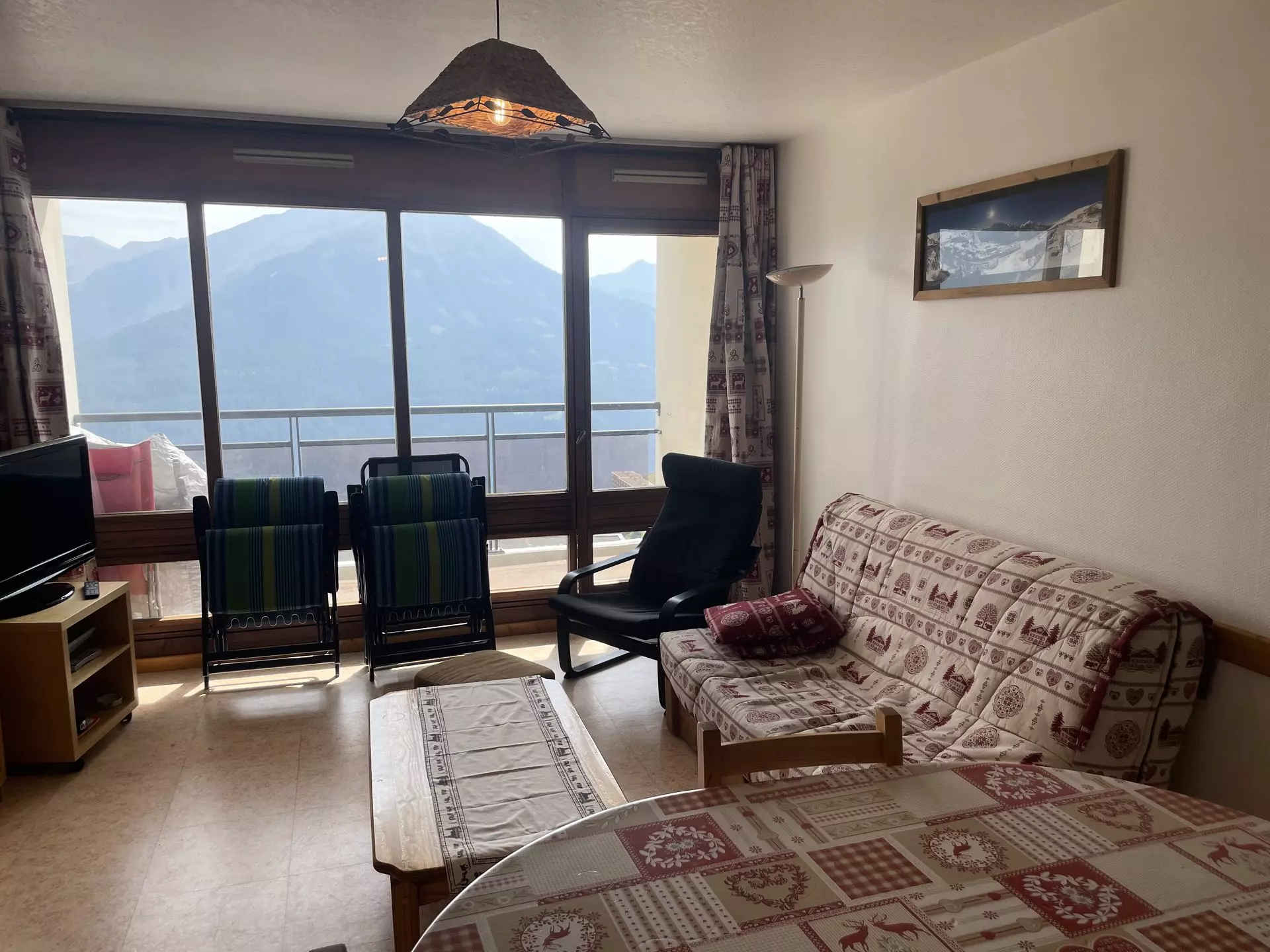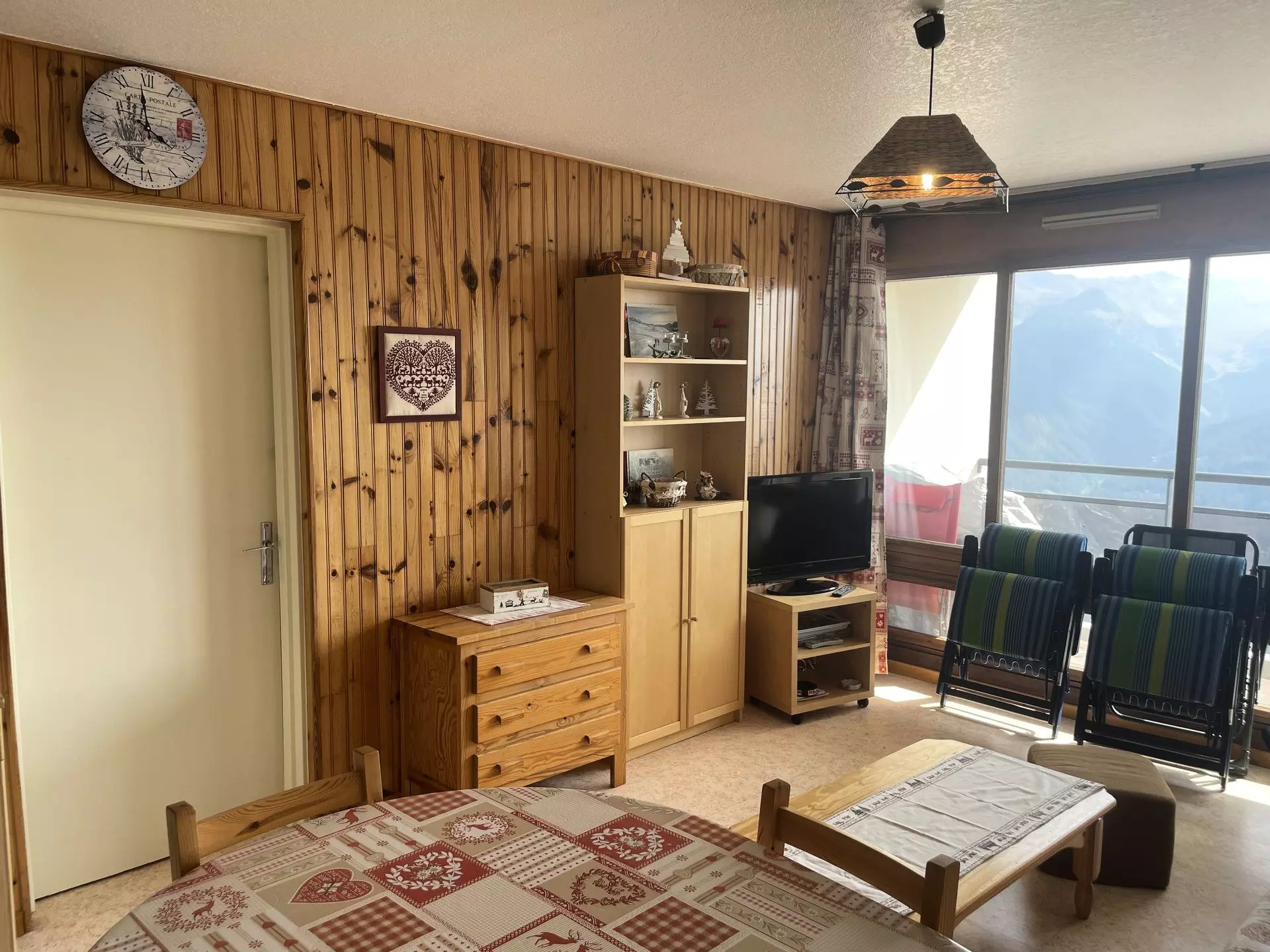2-room apartment of approximately 52 m², located on the 7th floor with elevator (lower or upper floor stop); 2 south-facing balconies with views of the valley and the resort.