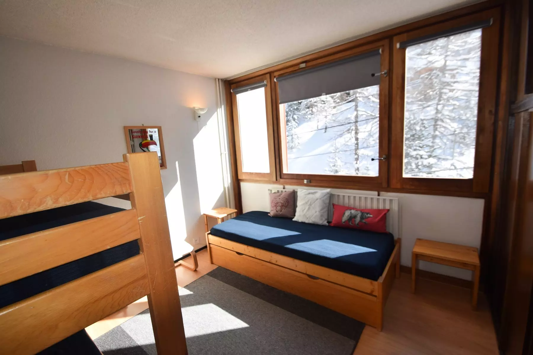 Appartement de 6 pers, 41m2, Divisible living room + Bedroom facing SOUTH, with balcony, view on the slopes, on the 6th floor with elevator. Separate kitchen with serving hatch opening: 4 electric hotplates, refrigerator, oven, microwave, dishwasher, washing machine, electric coffee maker. Living room: divided into 2 parts by a sliding partition: dining area, 1 single sofa bed, lounge area, double sofa bed 140cm, sofa, television. Bedroom: 2 bunk beds, 1 single bed. Bathroom: bathtub, WC included - Bedding: duvets - 1 baby bed provided in the apartment - PETS NOT ALLOWED and NON-SMOKING APPT - End of stay cleaning, sheets, towels and ski passes are optional.
