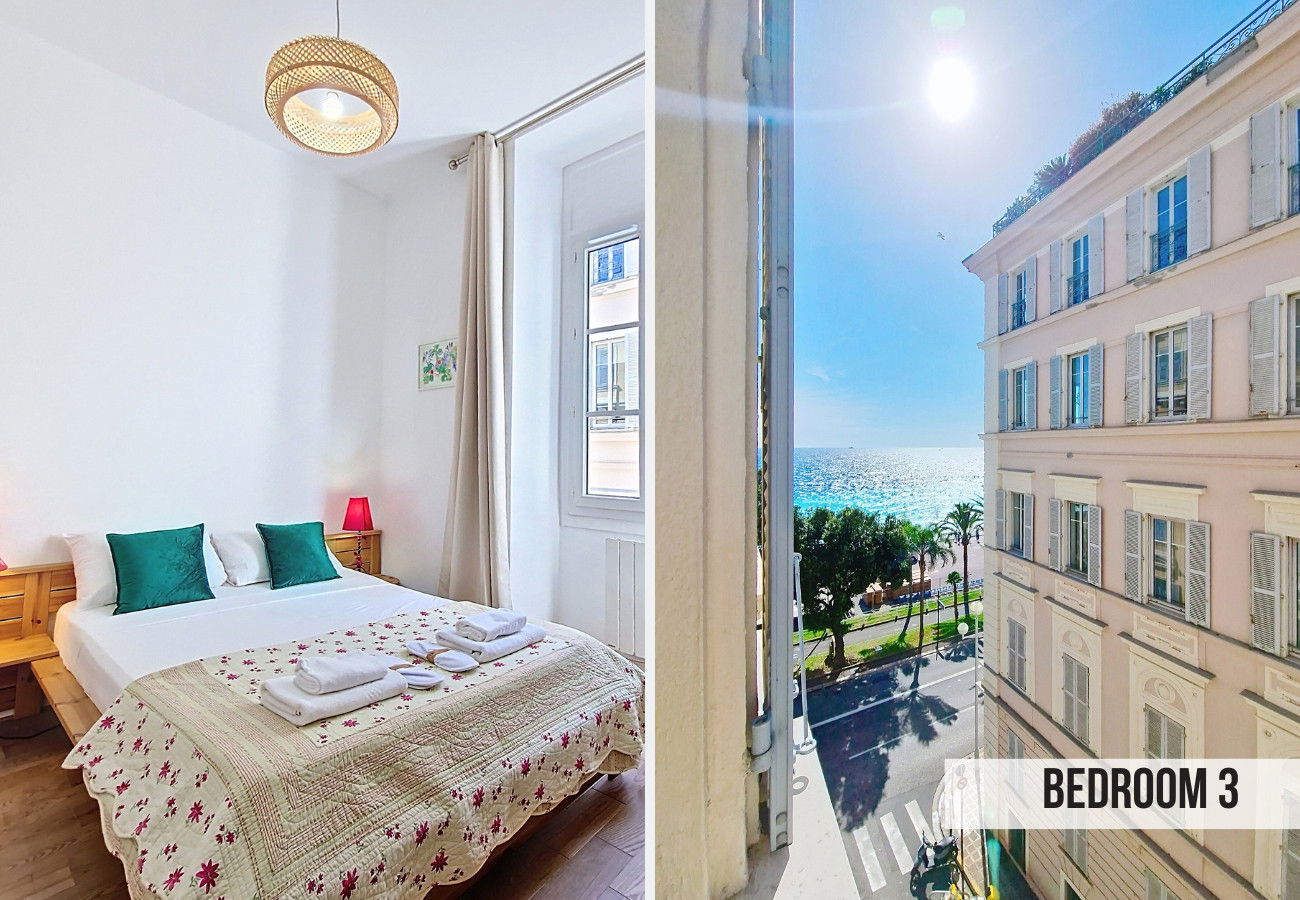Welcome to BLEU PANORAMA, an exceptional apartment located on the 3rd floor of a historic building on the Quai des États-Unis, one of the most prestigious addresses in Nice.