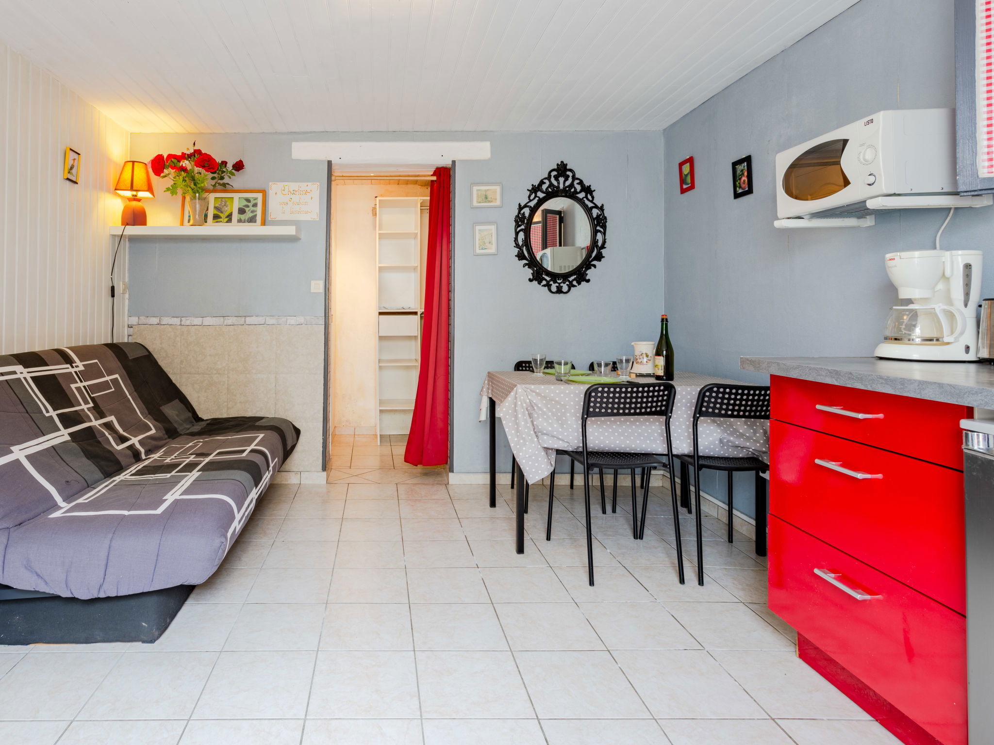 1-room apartment 22 m2, on the mezzanine, west facing position. Living/dining room with 1 double sofabed (140 cm, length 190 cm), TV (flat screen). Kitchenette (2 ceramic glass hob hotplates, toaster, kettle, microwave, electric coffee machine). Shower, sep. WC. Electric heating. Parking space n XX. Please note: smoke alarm. Offer by a private individual according to Art. 155, IV of CGI.