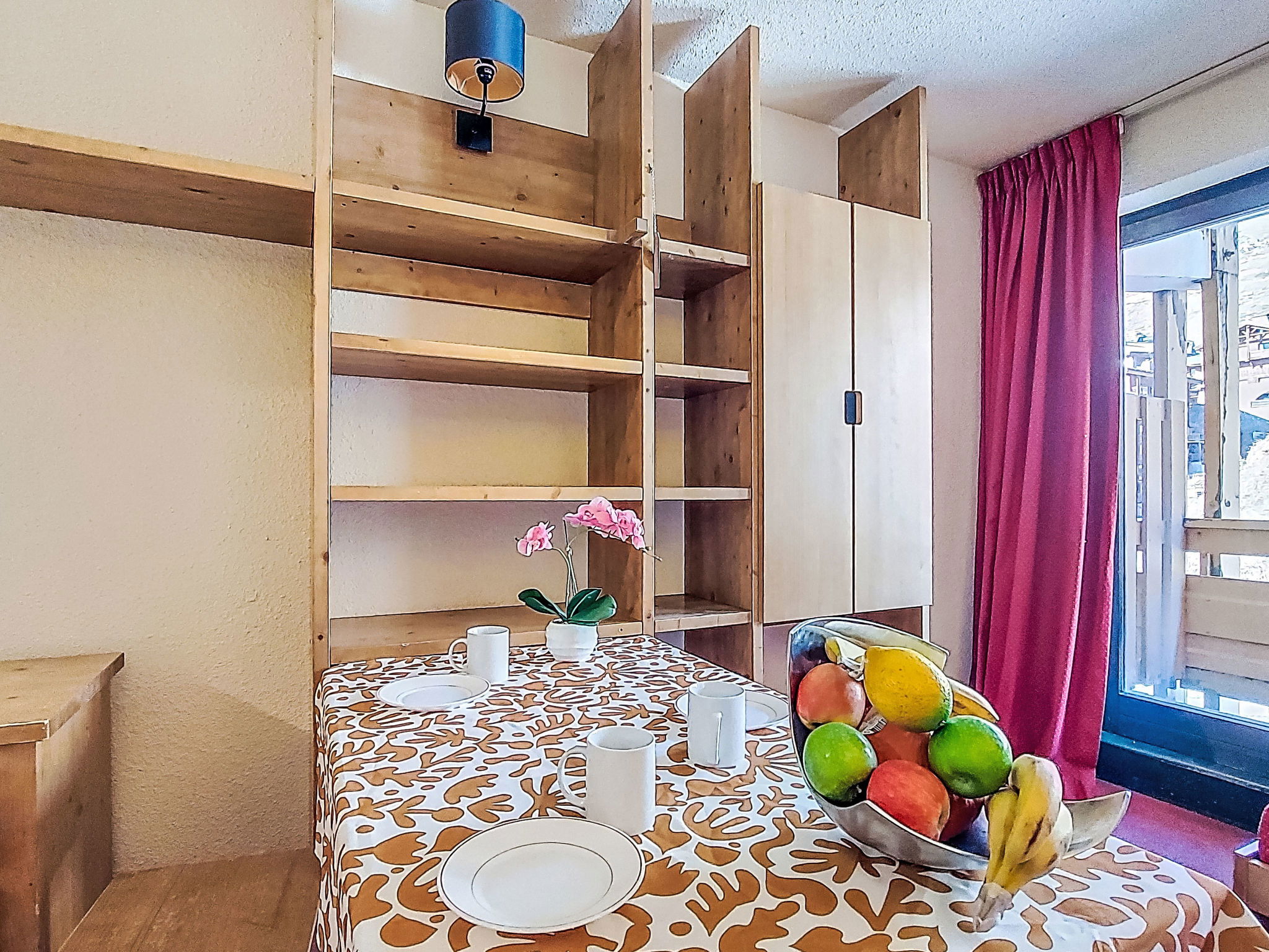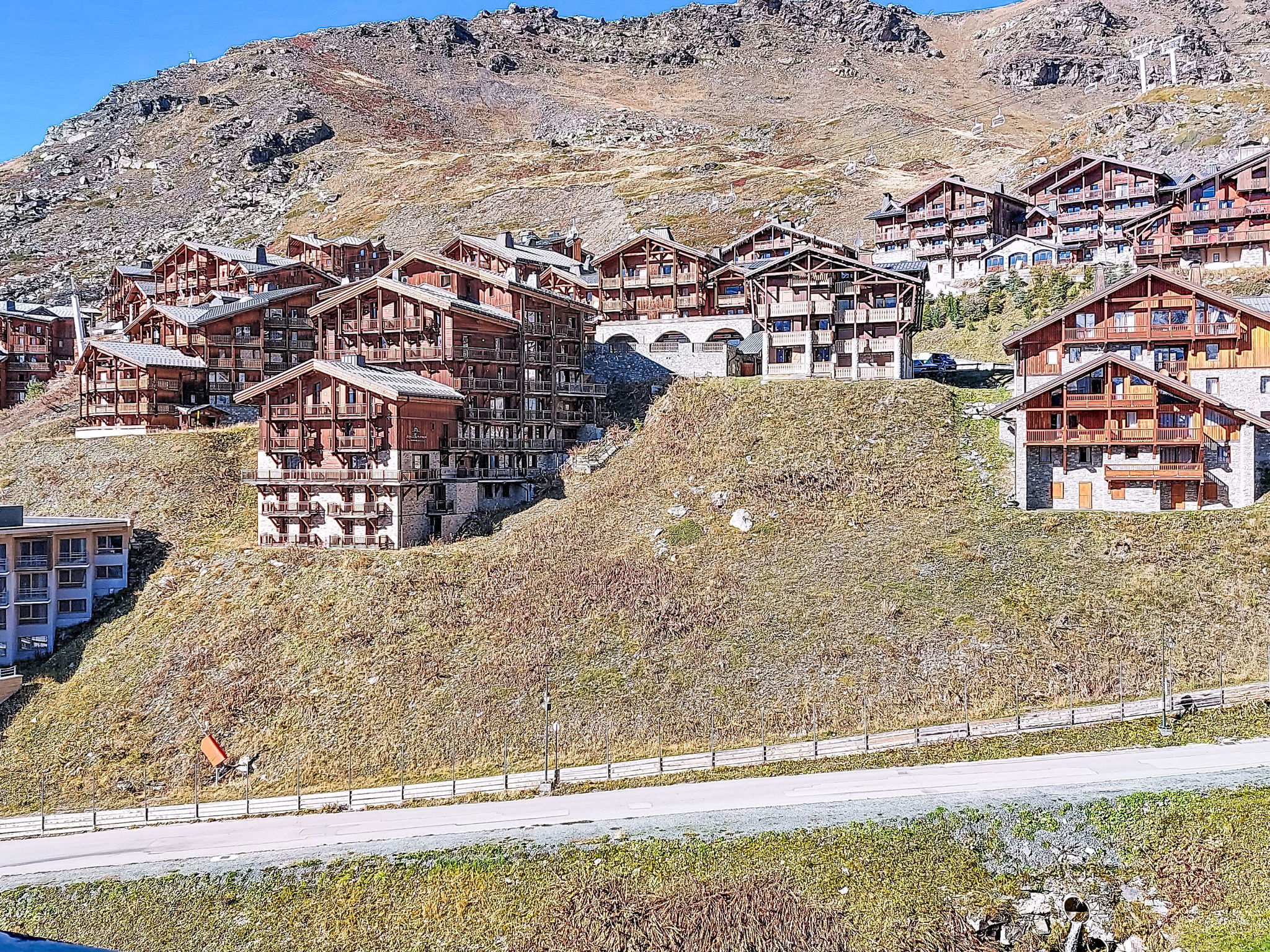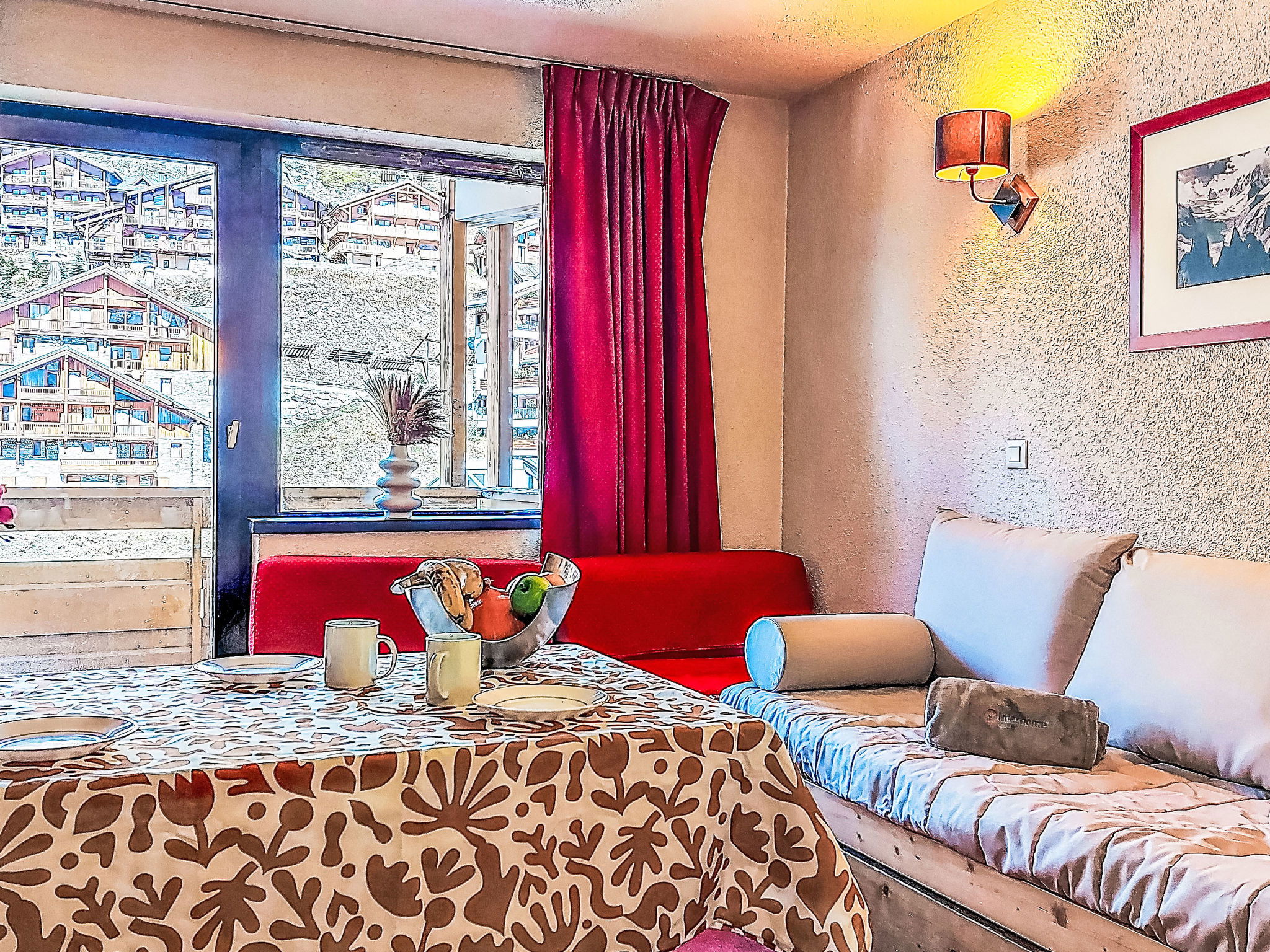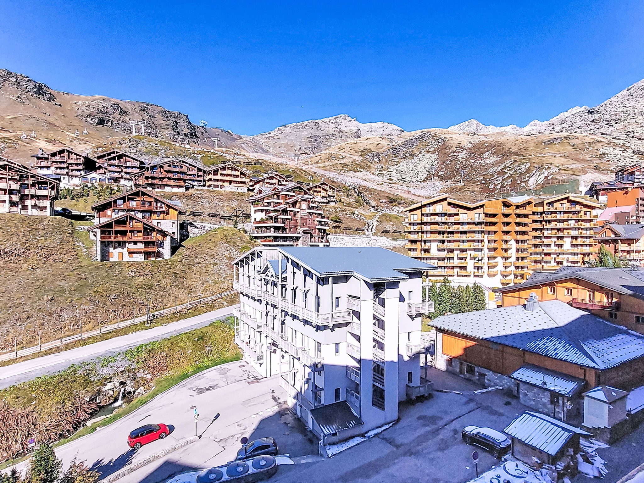 Residence "Les Olympiades", 7 storeys. In the centre of Val Thorens, in the resort, in a central, busy, sunny position in the residential district, 100 m from the skiing area. In the complex: lift, storage room for skis. In Winter: please take snow chains. Public car park at 50 m, extra. E-charging station. Shop, grocery, supermarket, shopping centre, restaurant 5 m, bar 50 m, bakery, café 5 m, pedestrian zone 2 m, bus stop "navette gratuit" 200 m, outdoor swimming pool 50 m. Sports centre 10 m, cable car 150 m, chair lift 50 m, gondola lift 10 m, slopes 50 m, ski rental 5 m, ski bus stop 150 m, ski school 100 m, ice rink 500 m. Nearby attractions: Centre Sportif 100 m. Well-known ski regions can easily be reached: domaine des 3 Vallées 100 m, Val Thorens – Orelle 100 m. Well-known lakes can easily be reached: Lac du Lou 800 m, Lac du Menuires 600 m. Please note: entertainment in the season. Suitable for families, baby equipment on request (extra). The owner does not accept any youth groups. Ski bus (free of charge). In case of good snow conditions, the house is accessible on skis. The apartment is located in a zone with limited traffic. Additional accommodations can be booked.