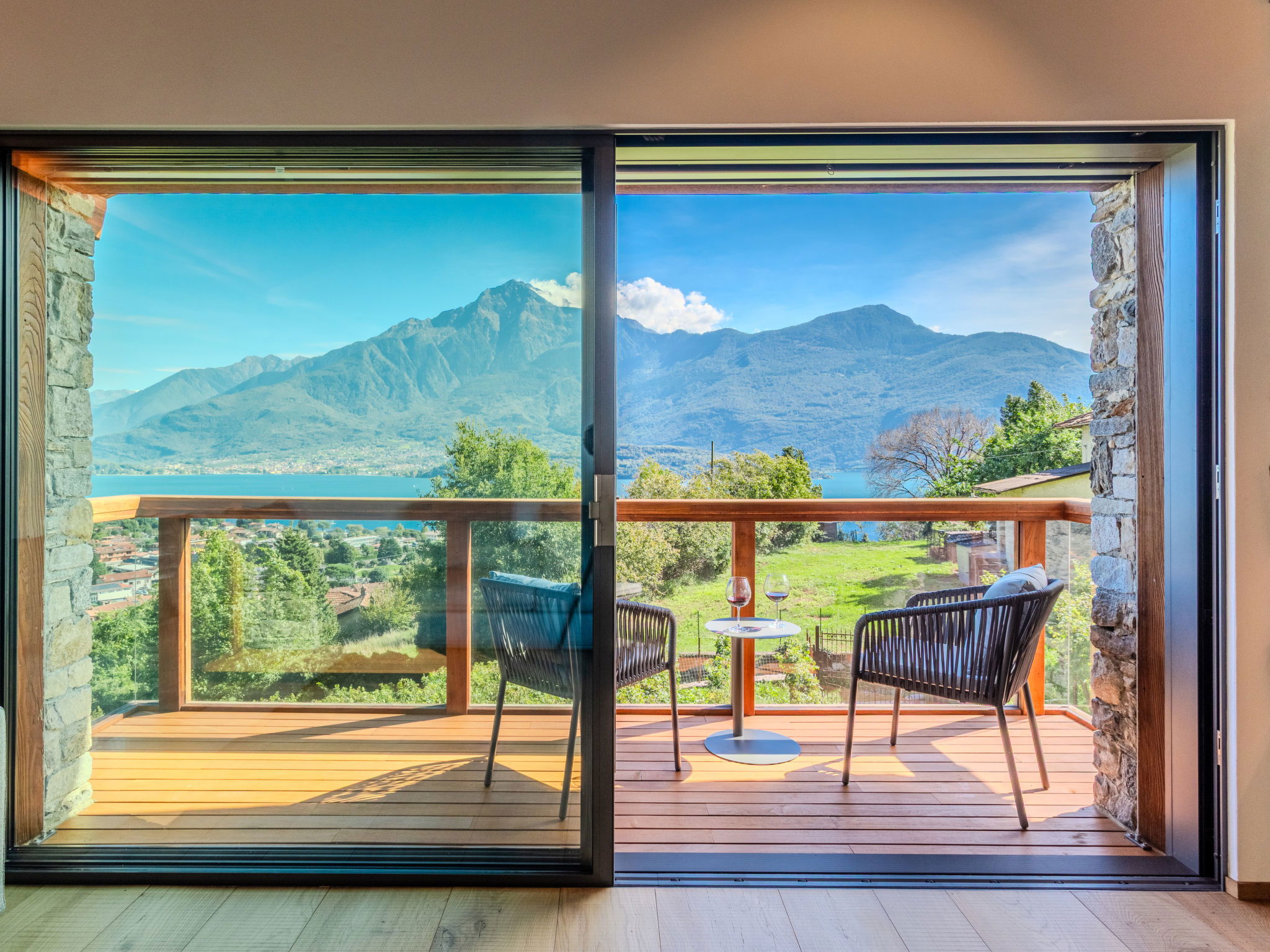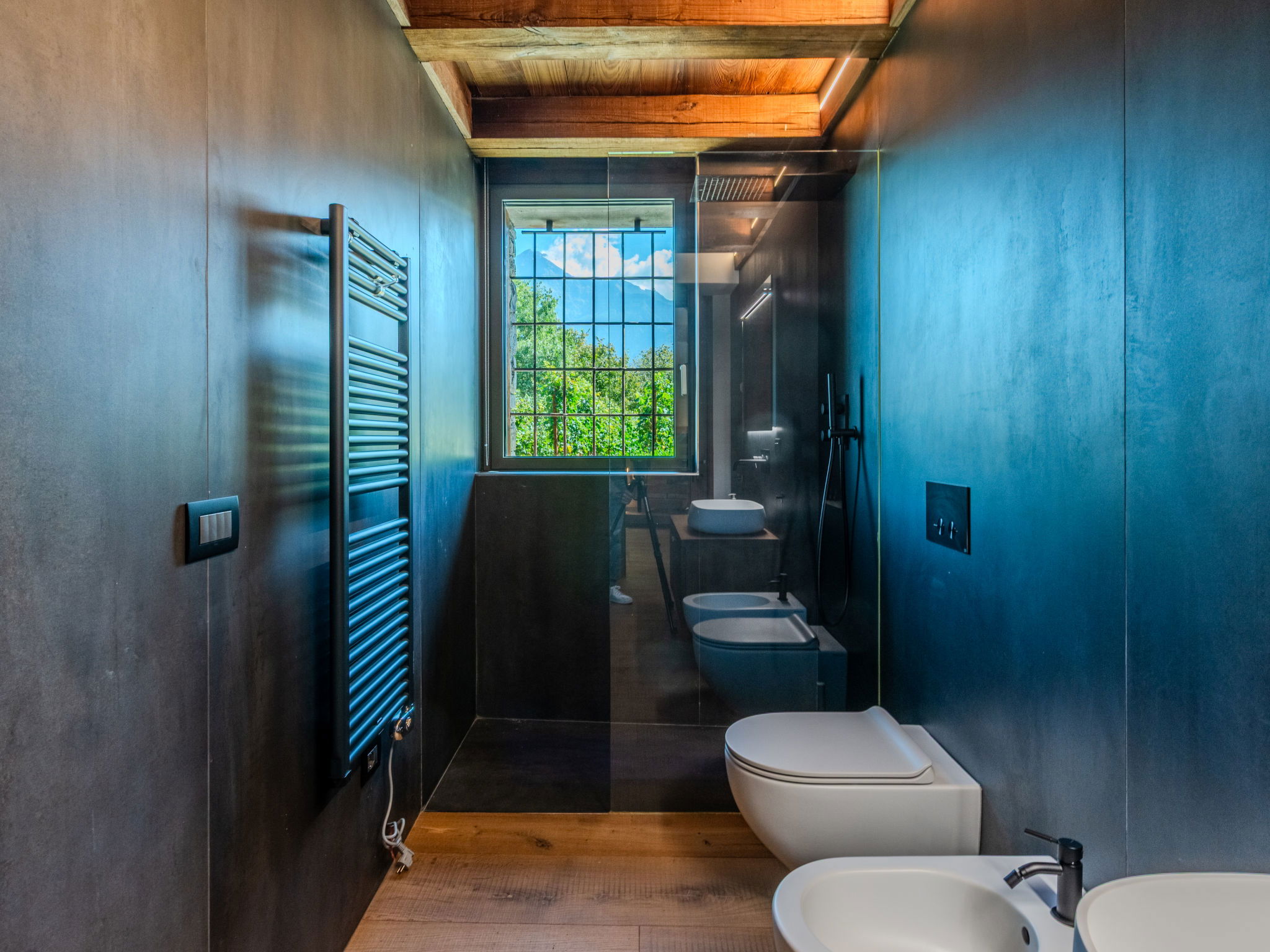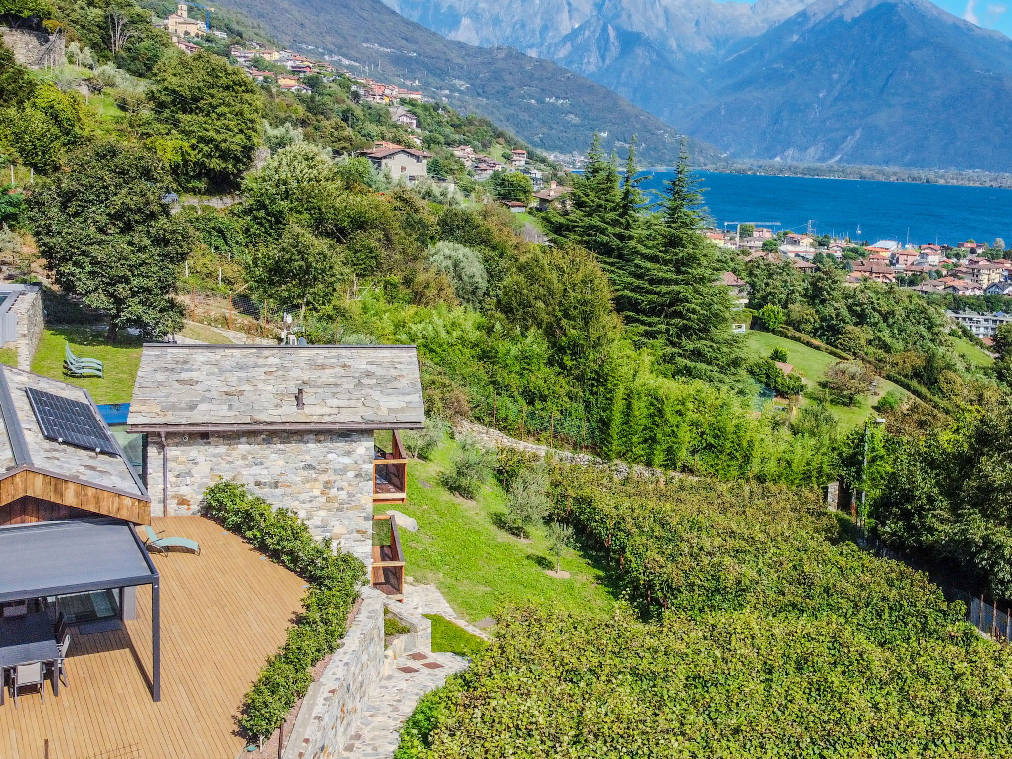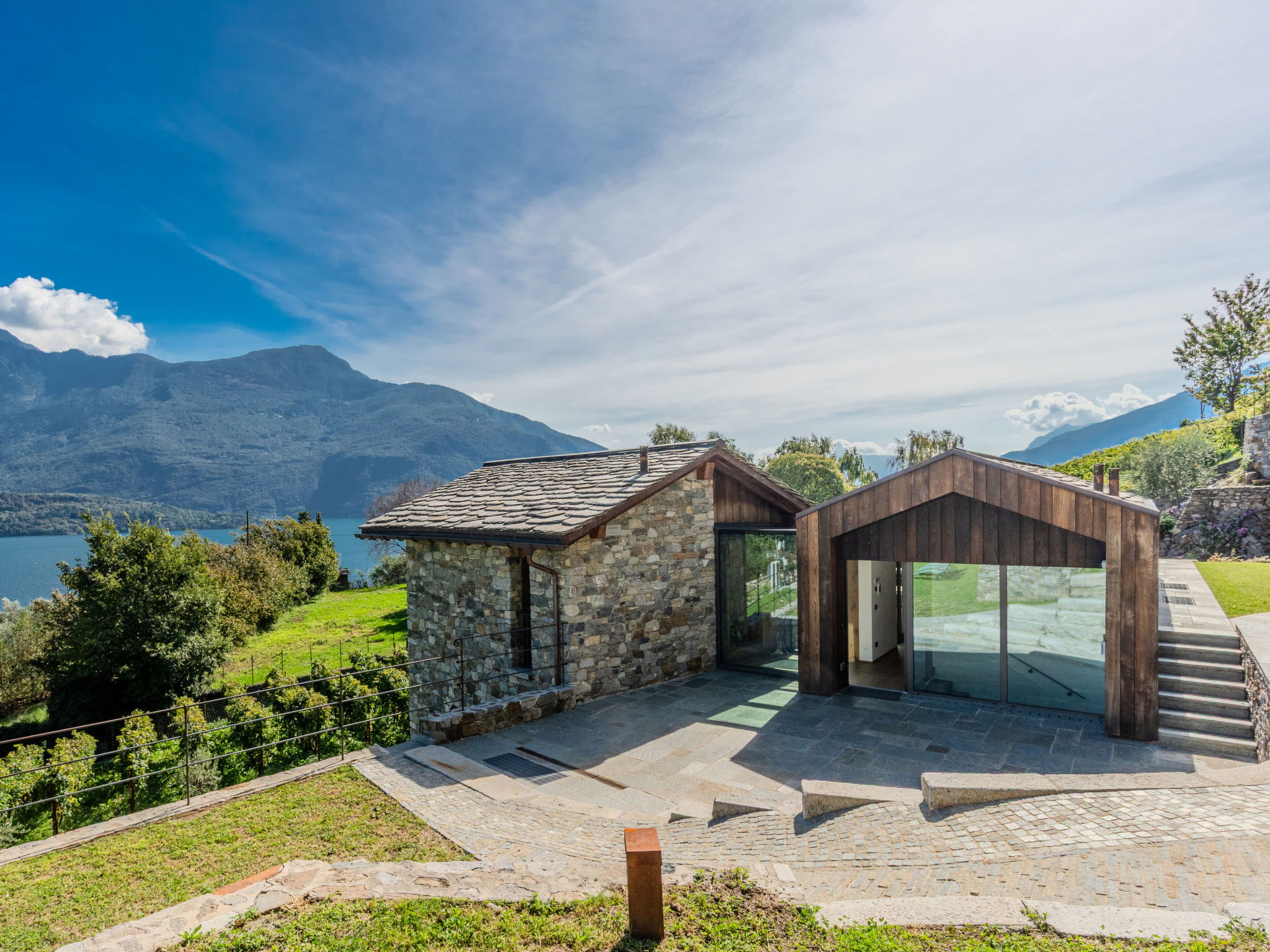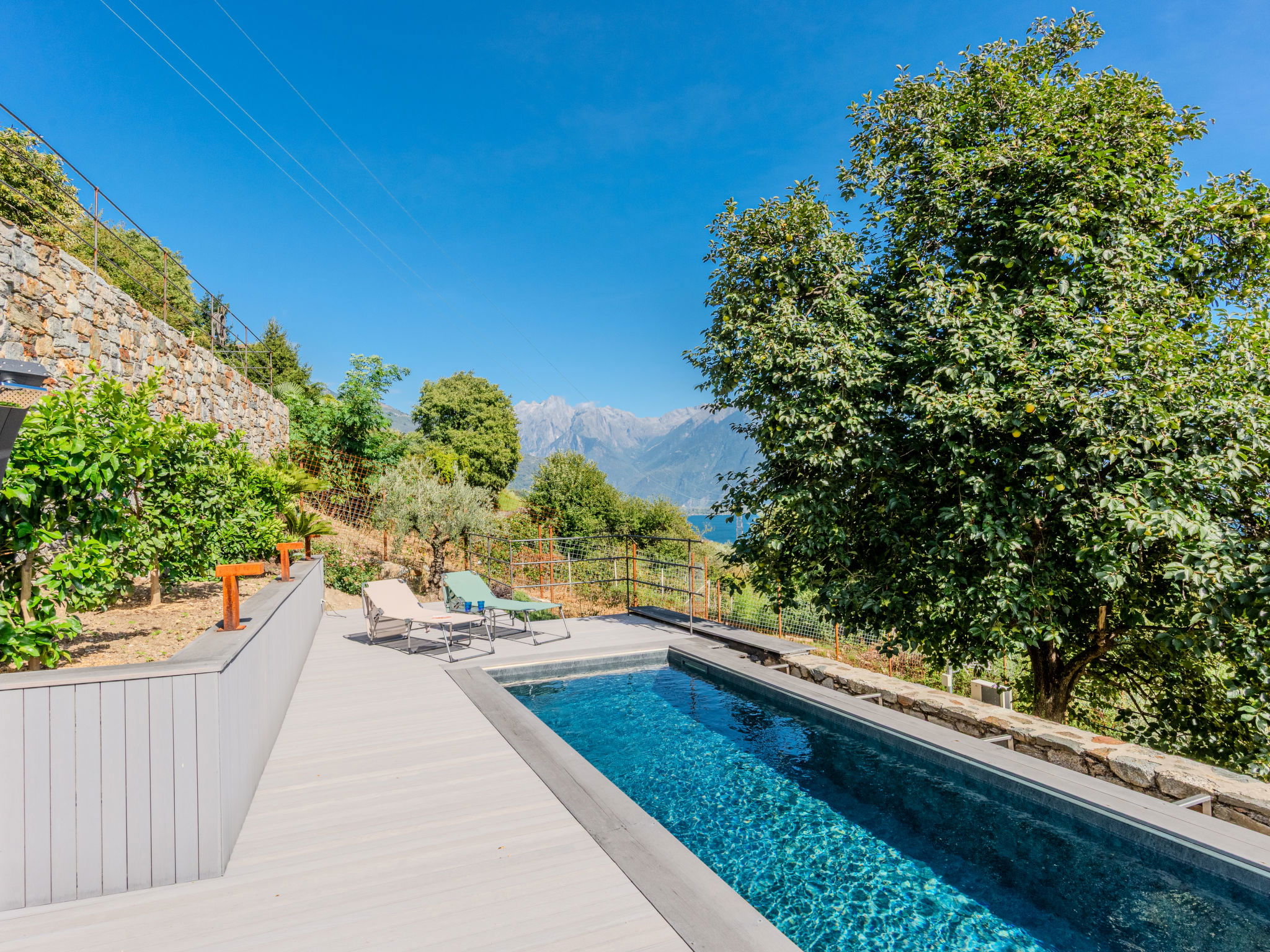 Luxurious "rustico" cottage "Woodhouse Domaso", 3 storeys, surrounded by vineyards. 2 km from the centre of Domaso, on the outskirts, 52 km from the centre of Como, 52 km from the centre of Lecco, in a secluded position on a slope, 600 m from the lake, in the countryside. Private: property 3'000 m2, terraced garden (fenced), swimming pool (3 x 8 m, depth 140 cm, seasonal availability: 30.May. - 30.Sep.) with salt water and salt-electrolysis pool-cleaning system. Outdoor shower, pool maintenance by the owner/gardener. Linen change (suppl. charge extra). Towel change (suppl. charge extra). Room cleaning on request (extra). Steep motor access to 50 m from the house. Parking. Supermarket 2 km, restaurant 600 m, bar 700 m, bus stop "Domaso" 700 m, railway station "Como" 52 km, pebble beach "Spiaggia 'Madonnina'" 700 m. Marina 2 km, golf course (18 hole) 27 km, surf school 900 m, cycle lane 700 m, children's playground 500 m. Nearby attractions: Villa Villa Camilla, Chiesa San Bartolomeo, Chiesa Santa Maria del Tiglio Gravedona, Forte Montecchio Nord a Colico. Well-known lakes can easily be reached: Lago di Mezzola. Hiking paths: Sasso Pelo, Monti di Vercana, Monte Berlinghera. Please note: car recommended. Not suitable for small children. The owner does not accept any youth groups.
