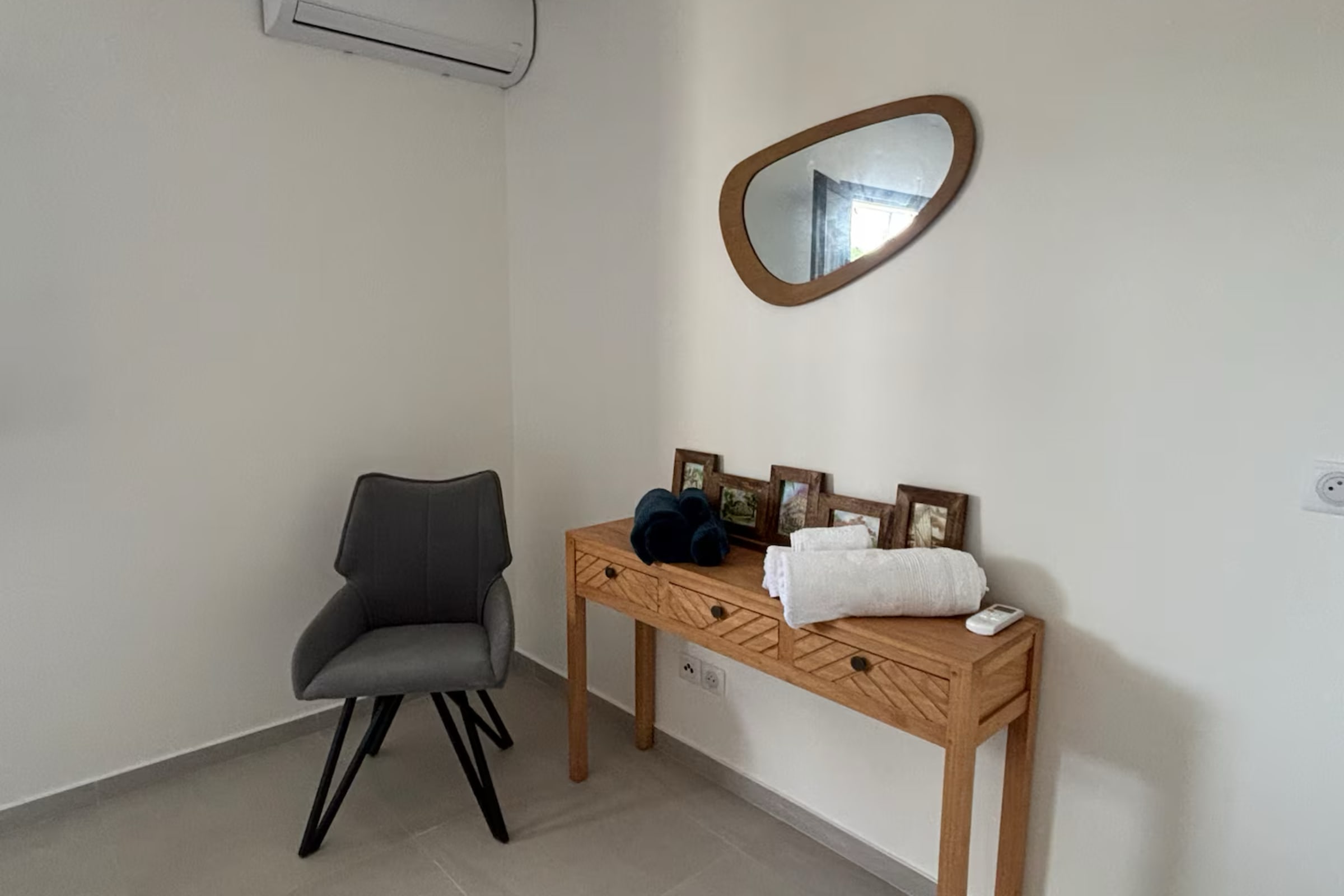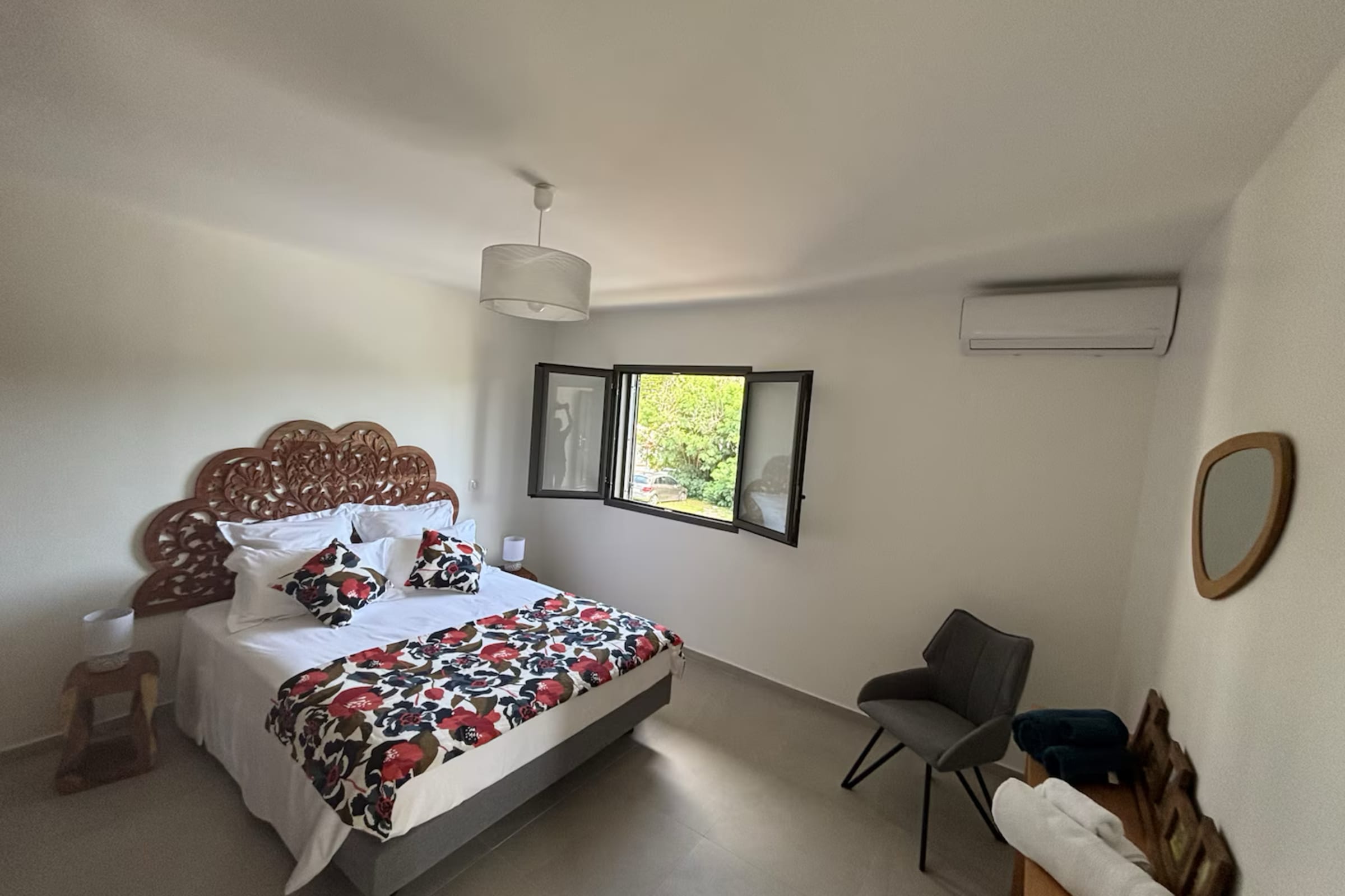 With its 60 m², this accommodation is perfect for up to 4 guests. You’ll find two independent air-conditioned bedrooms: one with a queen-size bed (160 cm) and the other with two single beds (90 cm). The modern kitchen is fully equipped to prepare delicious meals.