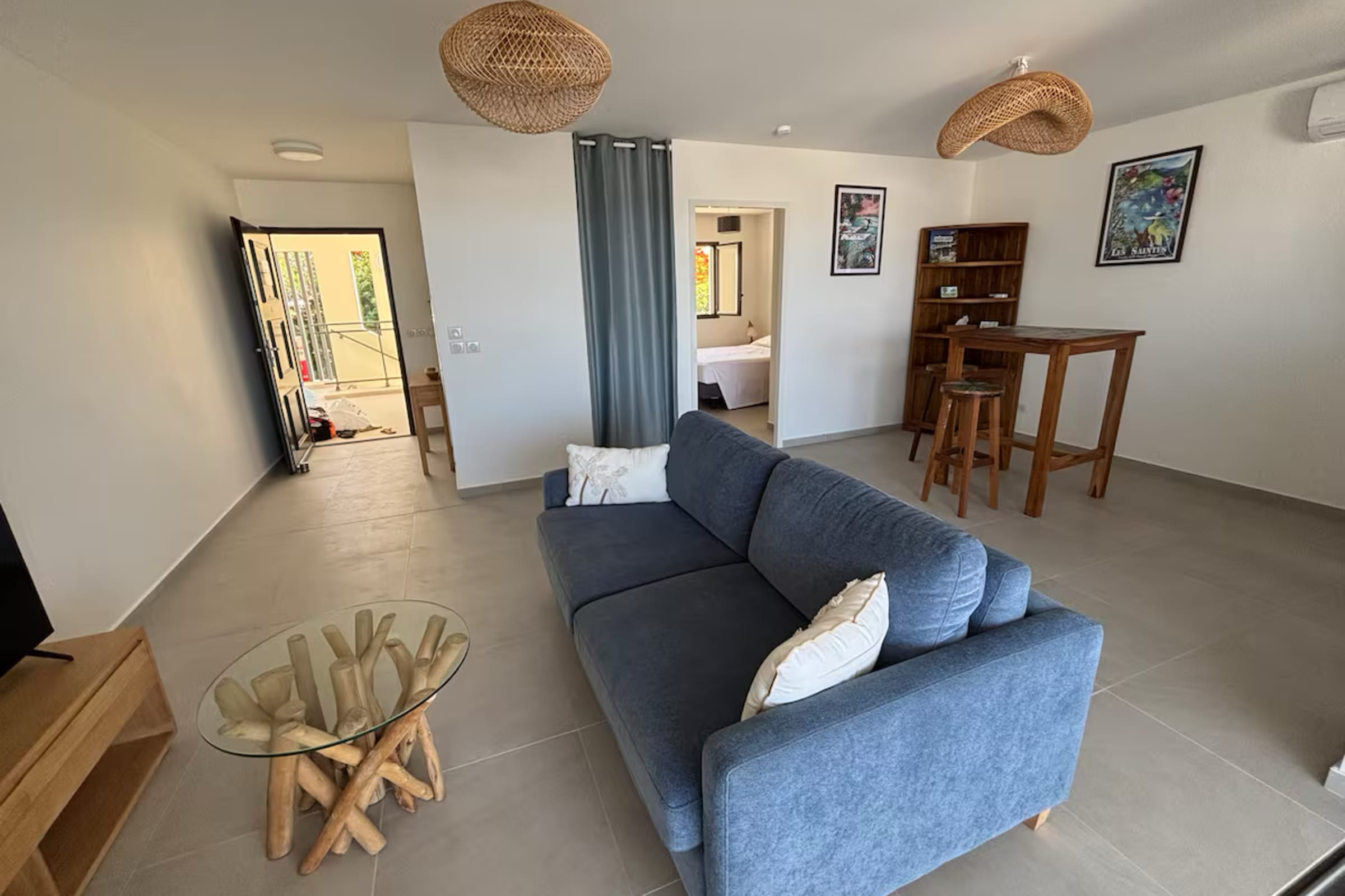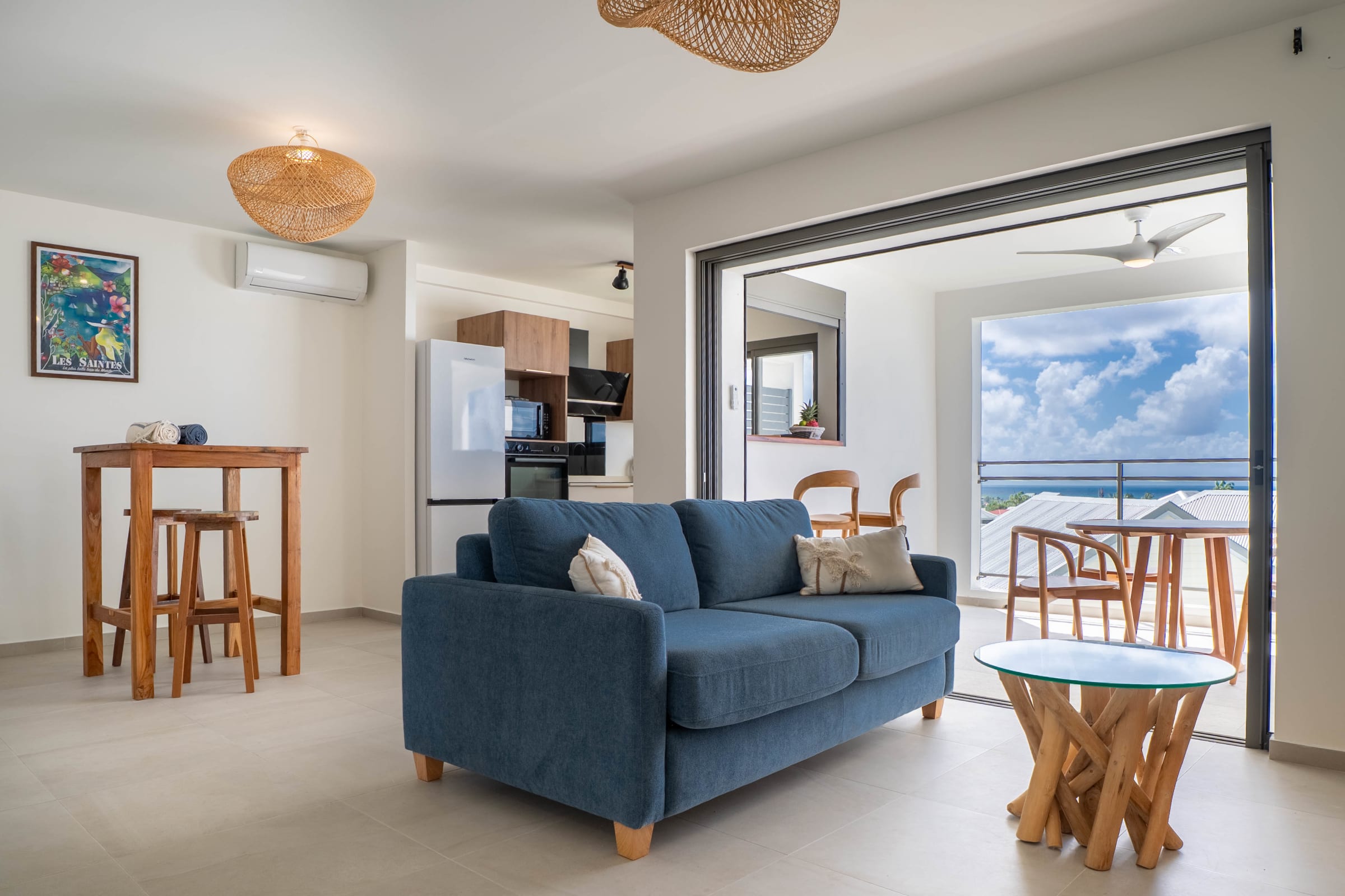 Discover apartment Azura, a modern and comfortably furnished one-bedroom apartment designed for your Guadeloupe getaway. Nestled in a high-end residence in Saint-François, this 40 m² apartment promises an unforgettable stay with spectacular views of Marie-Galante and Petite Terre. The cozy, air-conditioned bedroom features a queen-size bed (160 cm), perfect for two guests. The bright, air-conditioned living room includes a high-quality sofa bed that can accommodate two additional guests if needed.