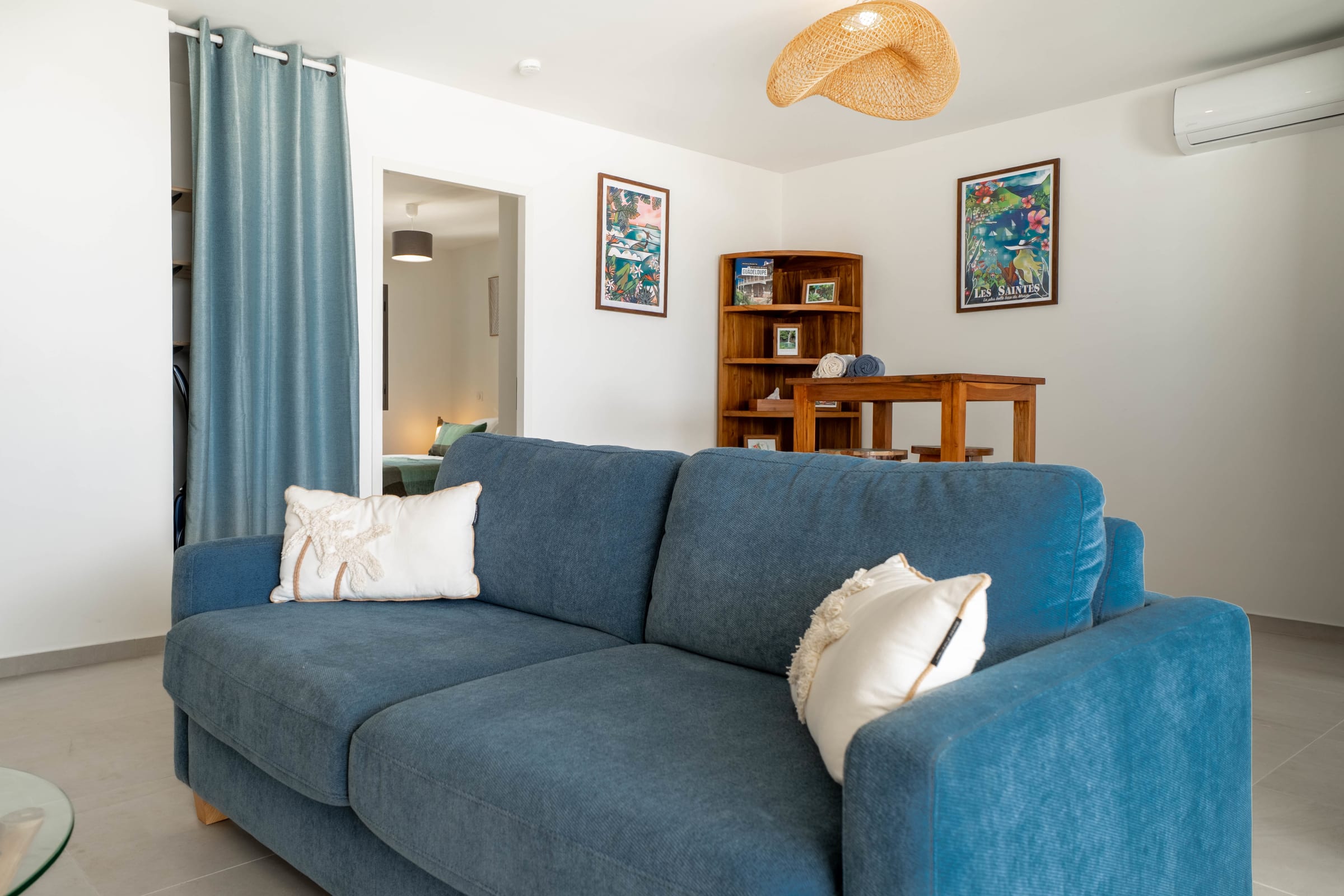 Discover apartment Azura, a modern and comfortably furnished one-bedroom 4* apartment designed for your Guadeloupe getaway. Nestled in a high-end residence in Saint-François, this 40 m² apartment promises an unforgettable stay with spectacular views of Marie-Galante and Petite Terre. The cozy, air-conditioned bedroom features a queen-size bed (160 cm), perfect for two guests. The bright, air-conditioned living room includes a high-quality sofa bed that can accommodate two additional guests if needed.