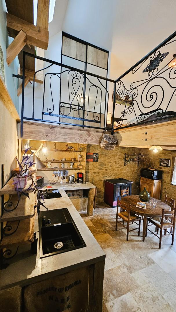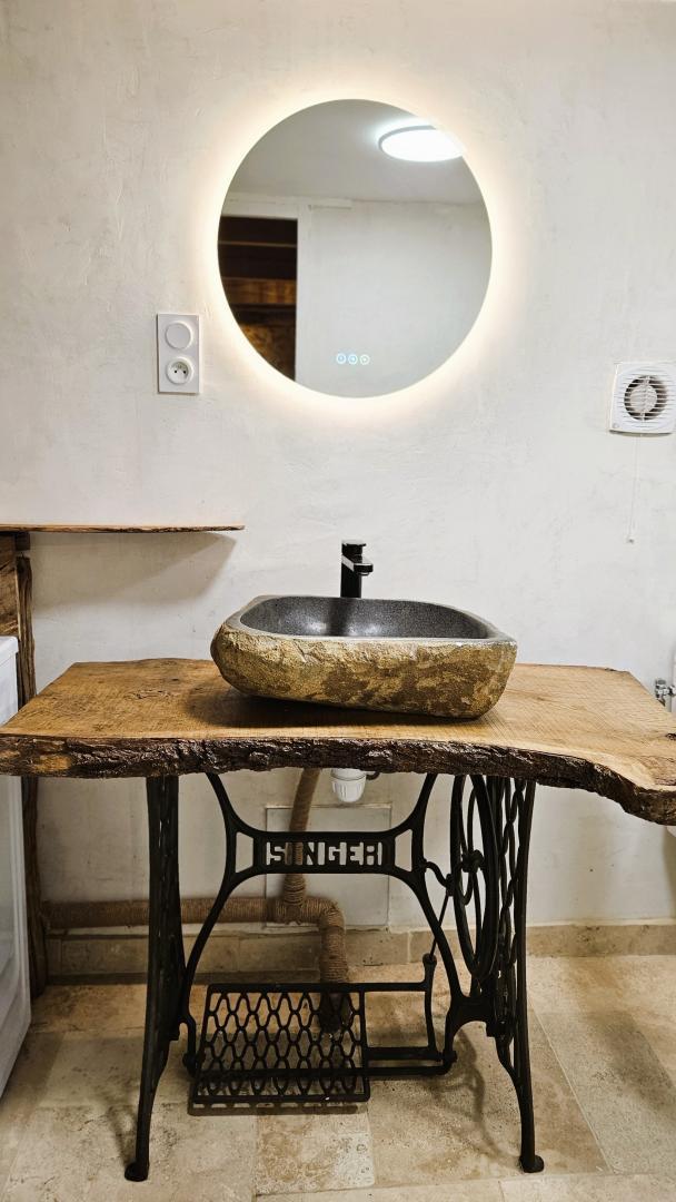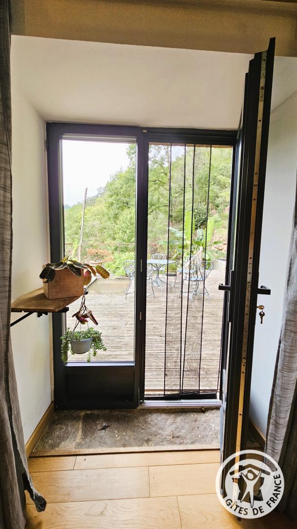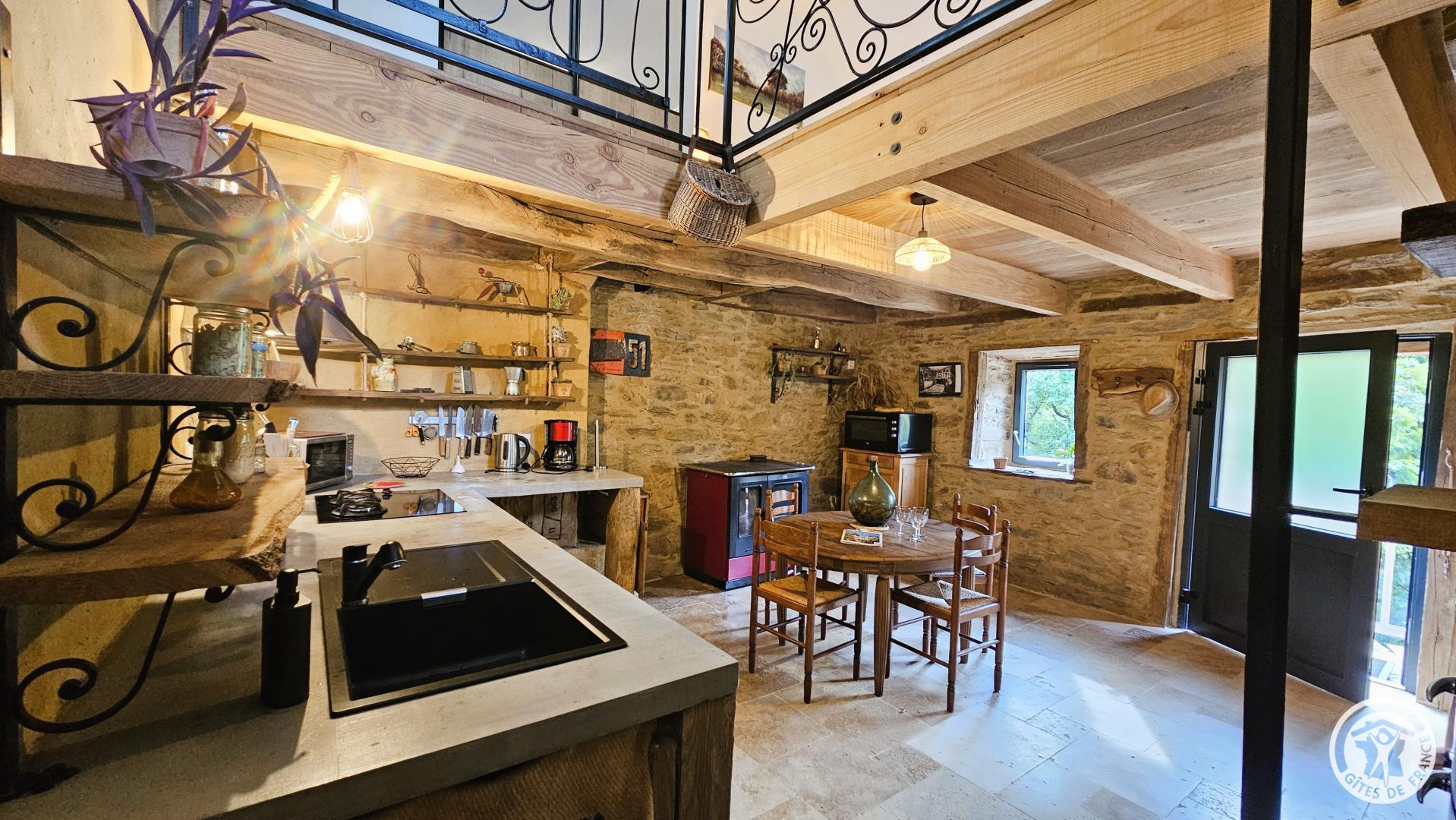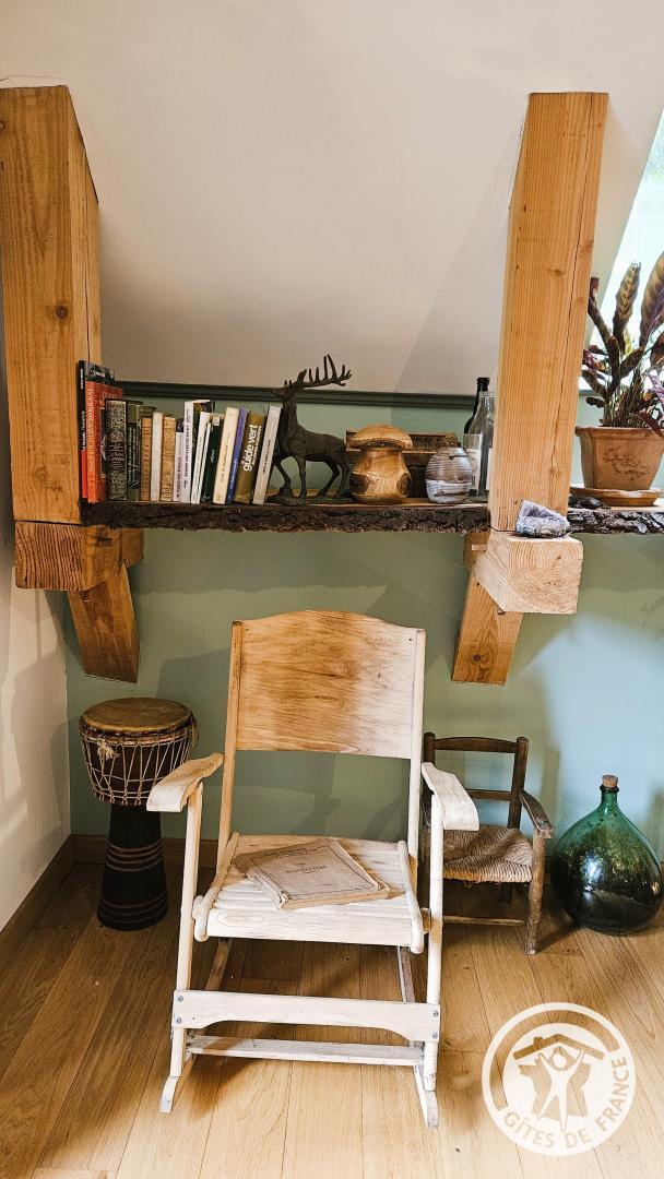 Upstairs: a mezzanine equipped with a king-size bed, a sofa, a desk, a chair, and a television, offering direct access to the terrace with a garden table and chairs. Ideally located in Argentat-sur-Dordogne, a stone's throw from the peaceful Maronne River, this charming gîte, a former winemaker's house, completely renovated by the owner with care, combines authenticity and modern comfort.