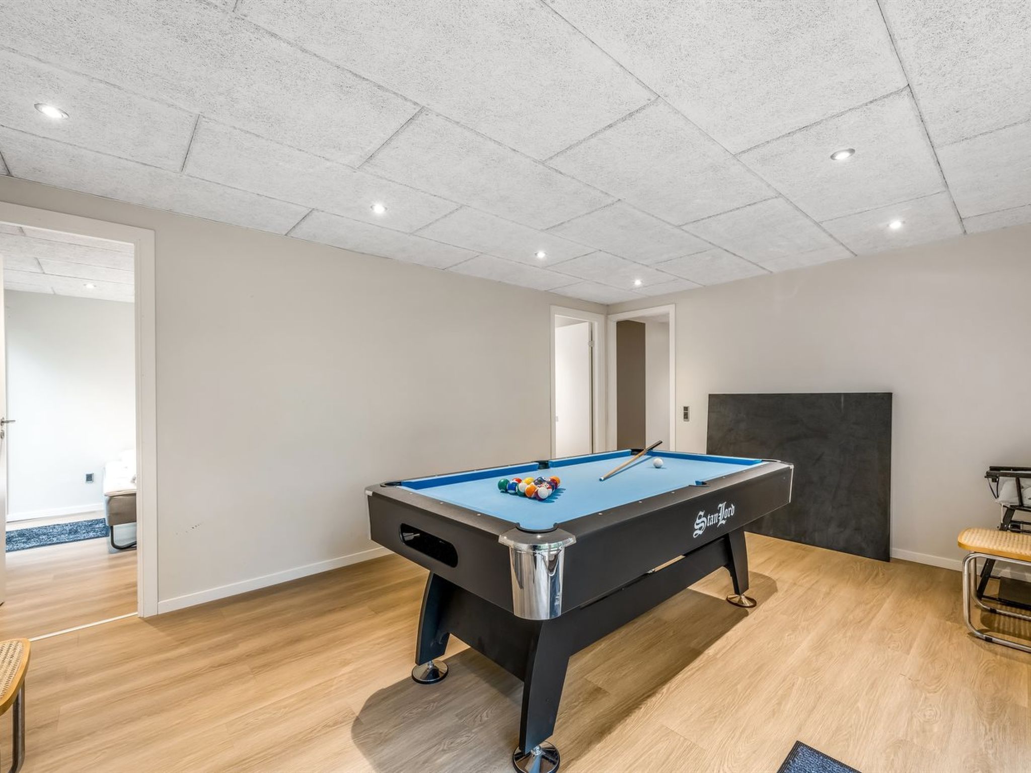 Single-family house, built in 1975. Private: natural state property 1'200 m2. Outdoor shower, children's playground (slide, swing). In the house: table football, washing machine, tumble dryer. Parking at the house. E-charging station. Grocery 850 m. Golf course 7.5 km. The owner does not accept any youth groups.