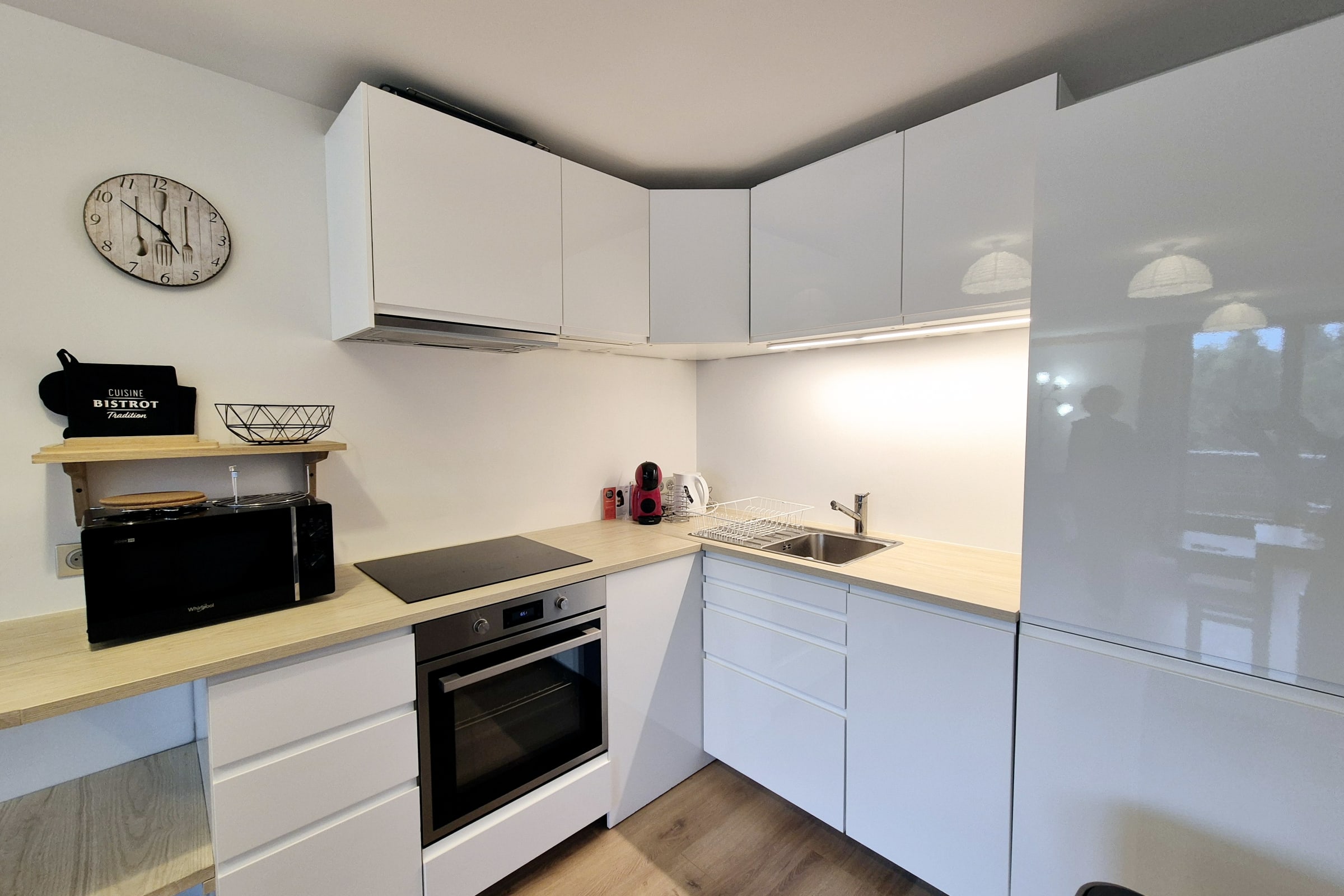 * **Modern, fully equipped kitchen:** oven, microwave, large fridge-freezer, dishwasher, Dolce Gusto coffee machine, kettle, vacuum cleaner.