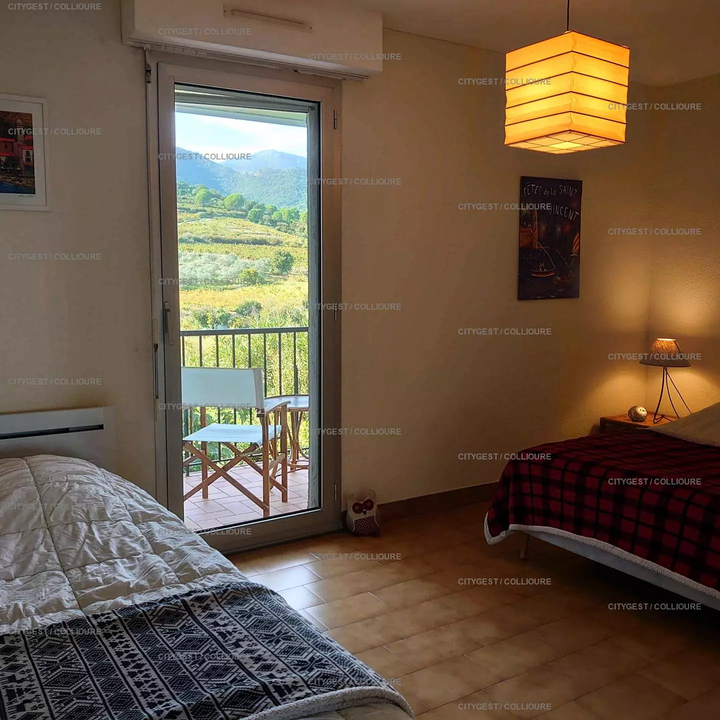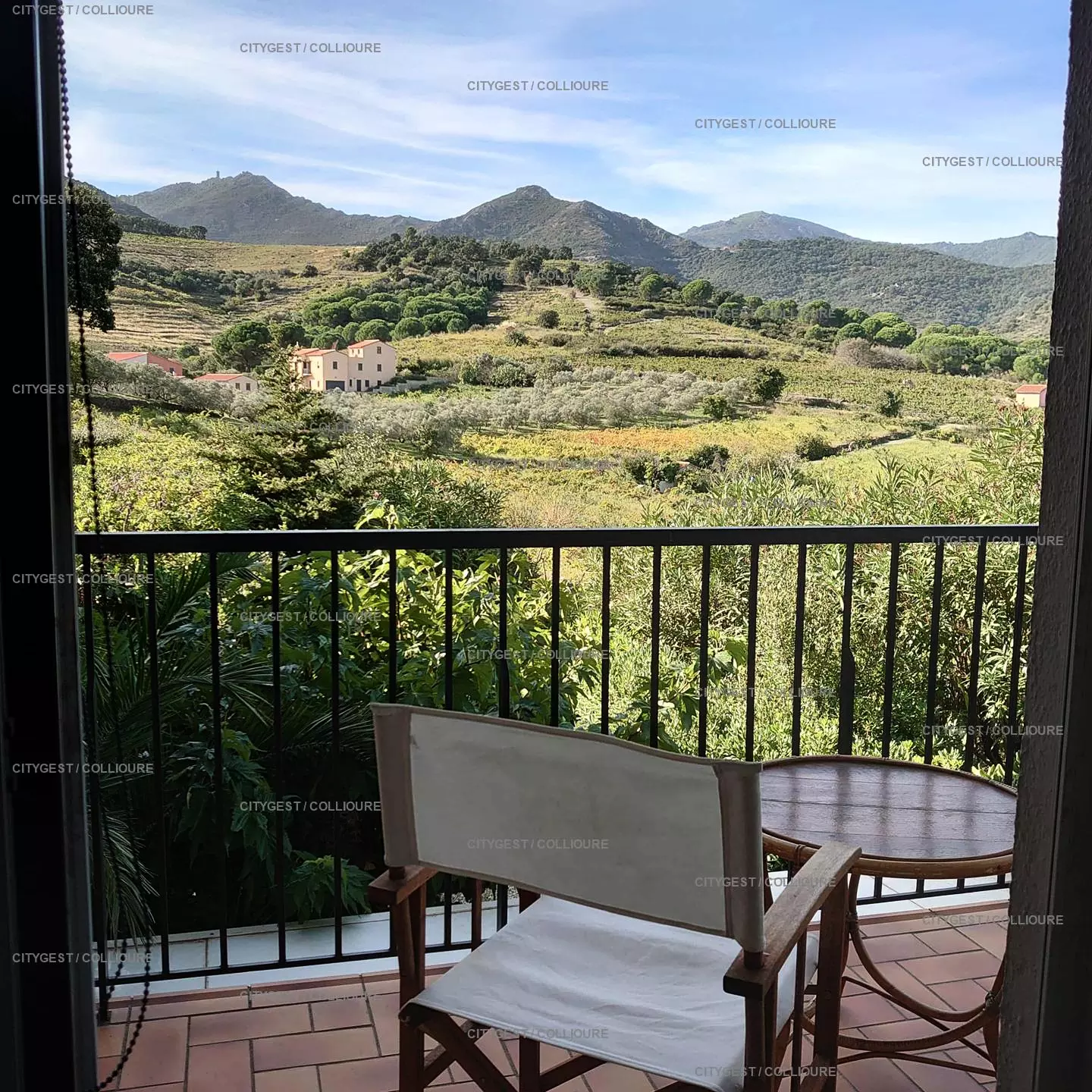 Pleasant apartment for 4 people with terraces, lovely view of the hills and glimpse of the sea. It consists of an entrance hall, a bedroom with a 140 cm bed and a balcony with a clear view of the mountains, a living/dining room, a 140 cm sofa bed, a TV, a fully equipped kitchen with a microwave, oven, ceramic hob and washing machine, a bathroom, and a separate toilet. Garage (private box).