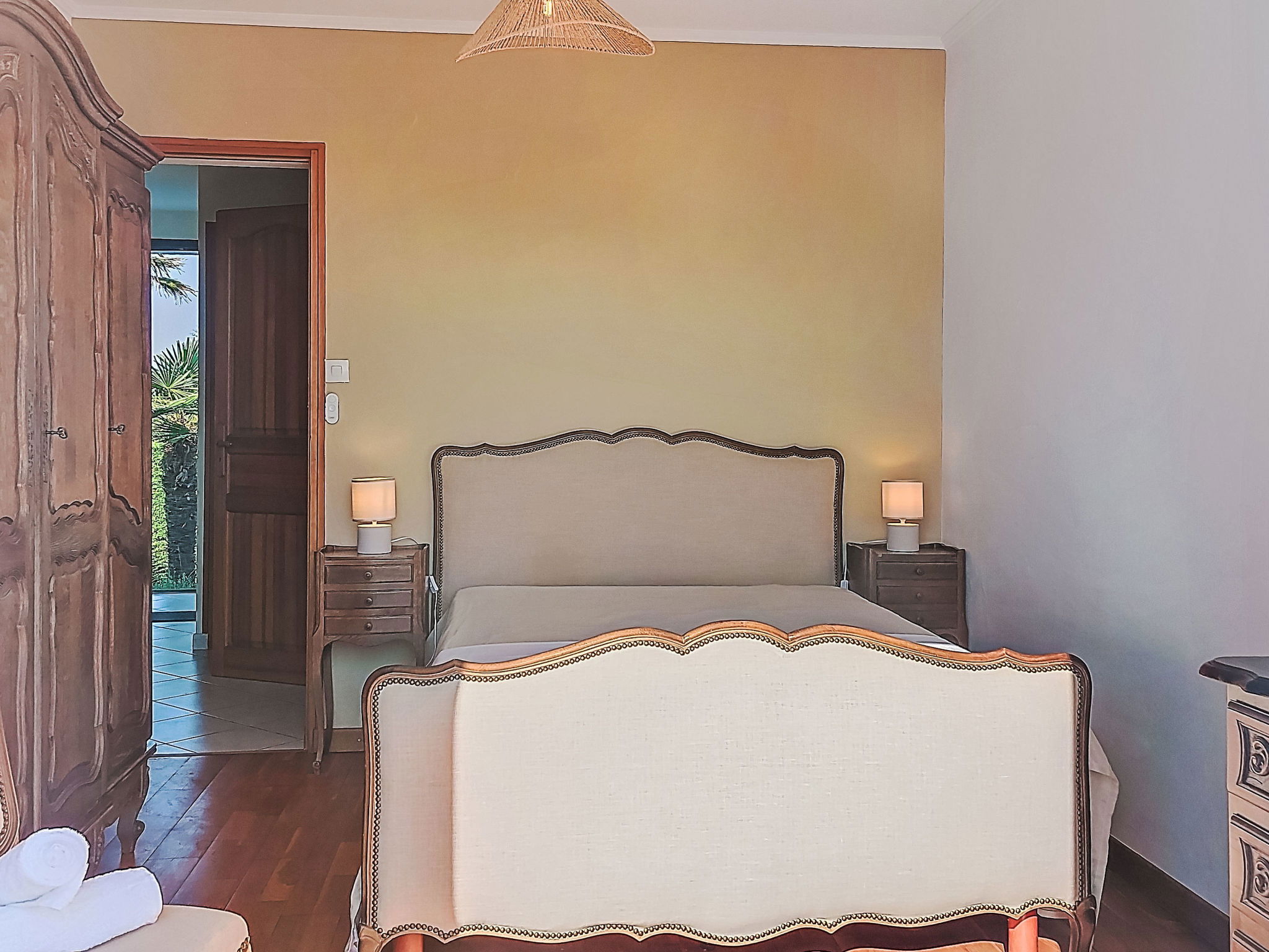 "L'Allée", 4-room house 100 m2, lower ground floor. Simple and practical furnishings: living/dining room with TV (flat screen). Exit to the garden, to the terrace. 1 room with 2 beds (80 cm, length 190 cm). 1 room with 1 french bed (140 cm, length 190 cm). Kitchen (oven, dishwasher, 4 ceramic glass hob hotplates, toaster, kettle, microwave, electric coffee machine). Bathroom, sep. WC. On the lower ground floor: 1 room with 1 french bed (140 cm, length 190 cm), bathroom and separate WC. Playroom. Electric heating. Large terrace, large garden. Terrace furniture, barbecue. Facilities: washing machine, iron, hair dryer. Internet (WiFi, extra). Parking (fenced), garage on the property. Please note: non-smoking house. Smoke alarm. Offer by a private individual according to Art. 155, IV of CGI.