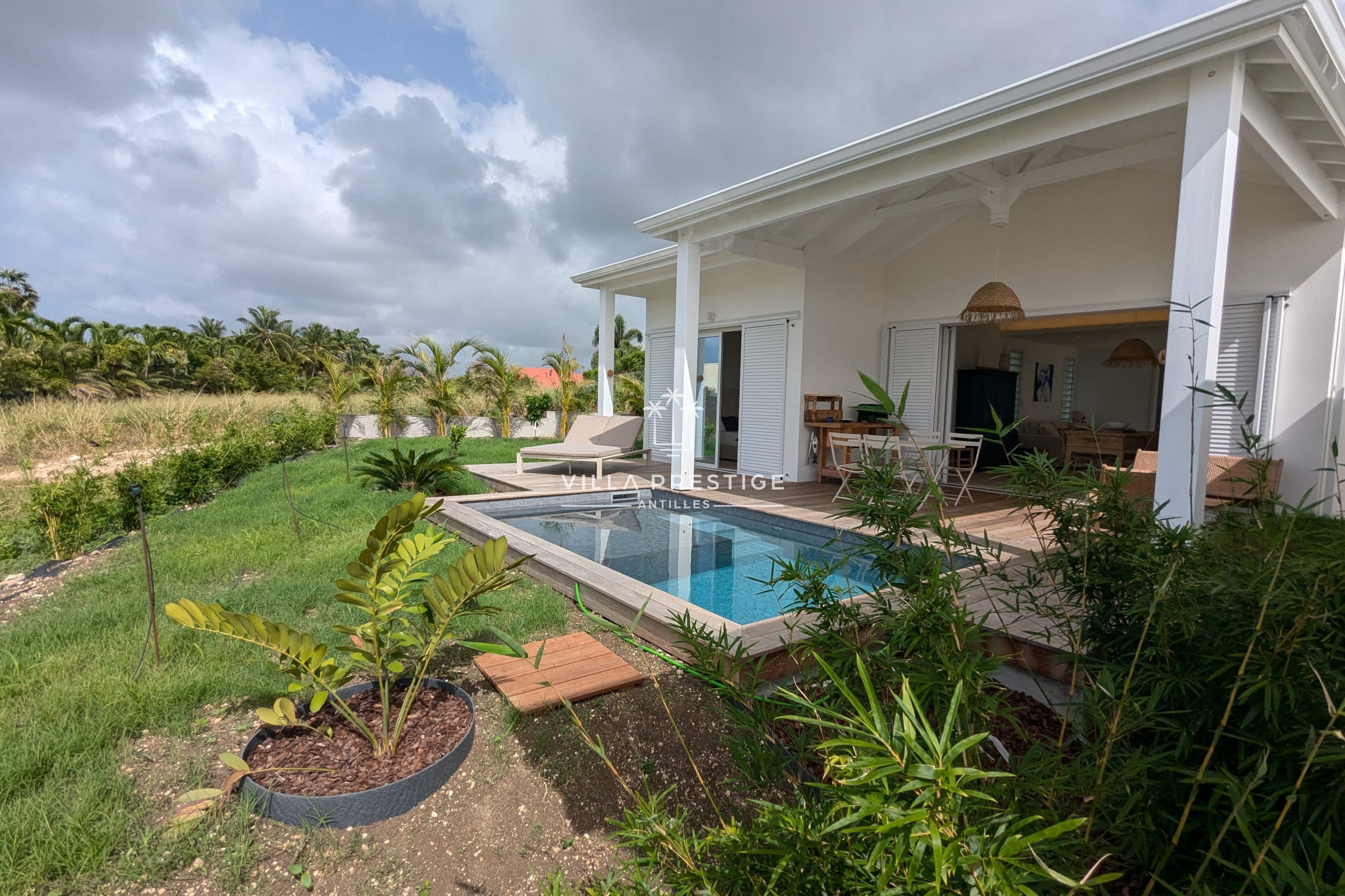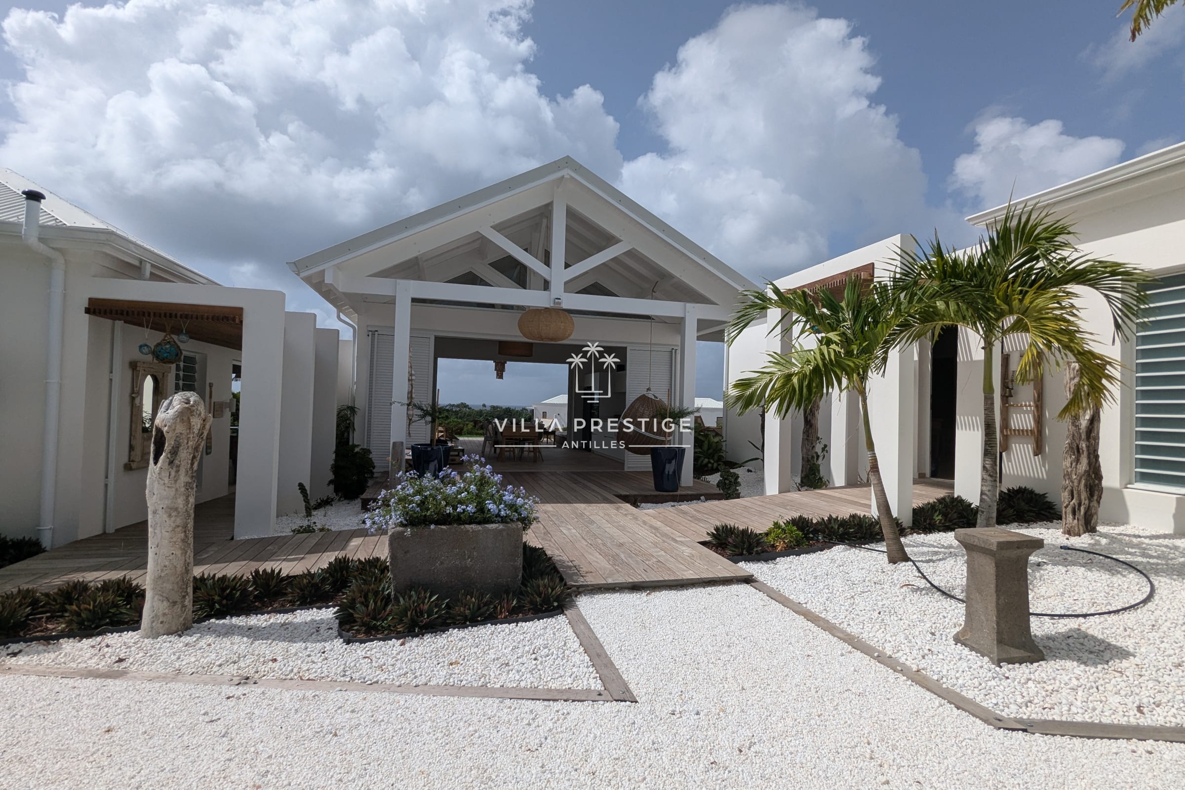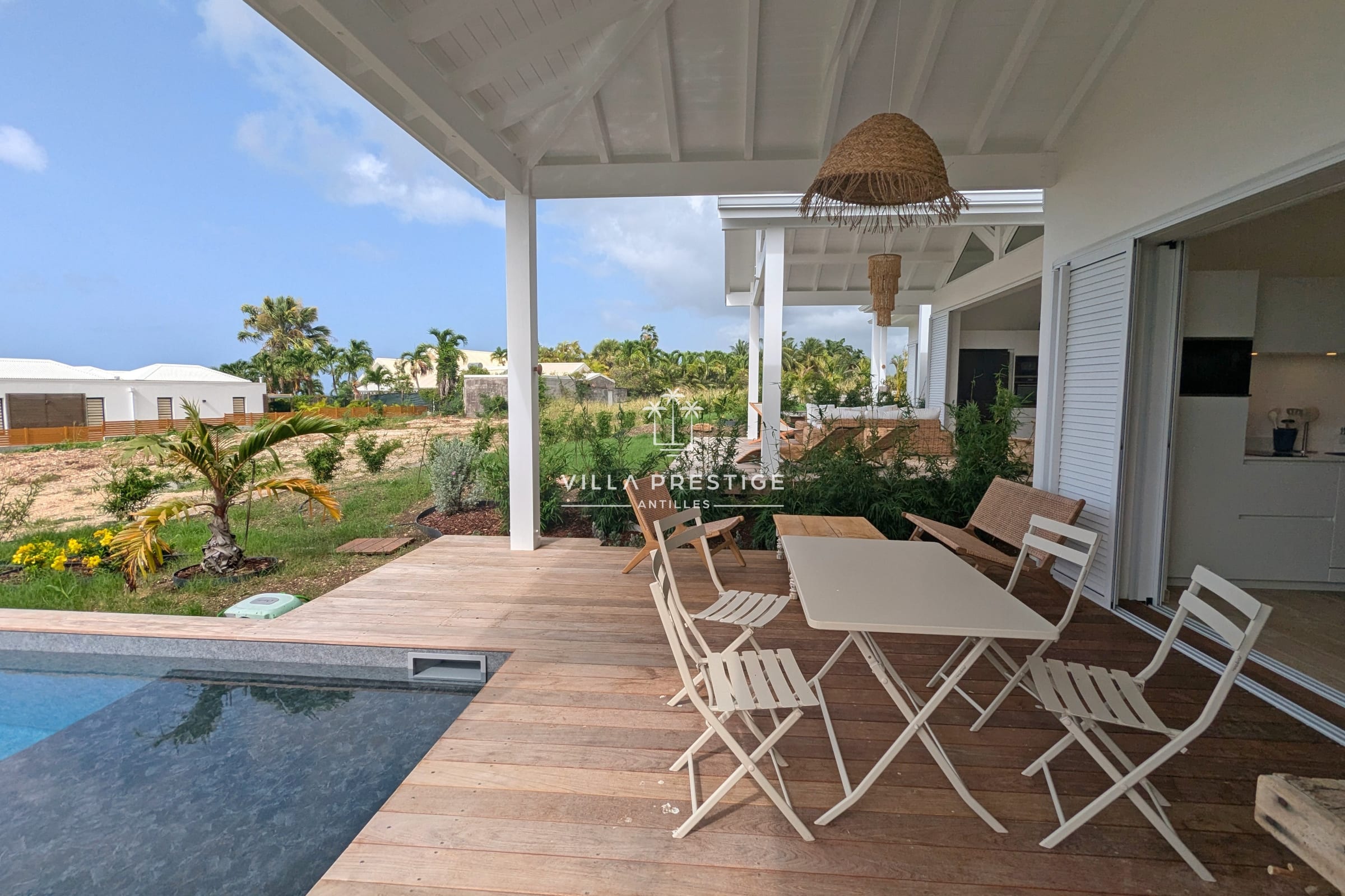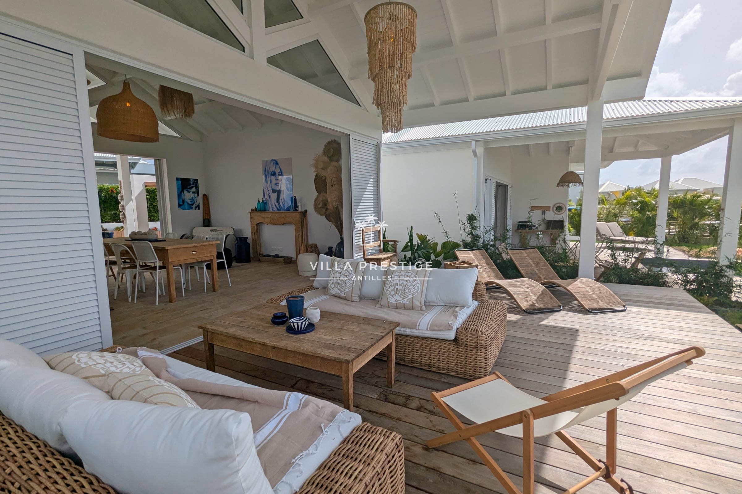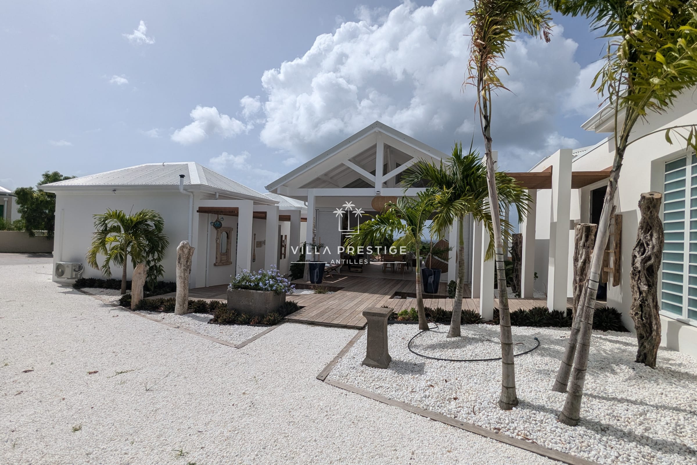 Each villa features its own private terrace with a dining area and lounge corner facing a small private pool. Ideally located, within just a two-minute drive from the residence you will find La Coulée beach, the casino, the airfield, the golf course, and the marina of Saint-François.