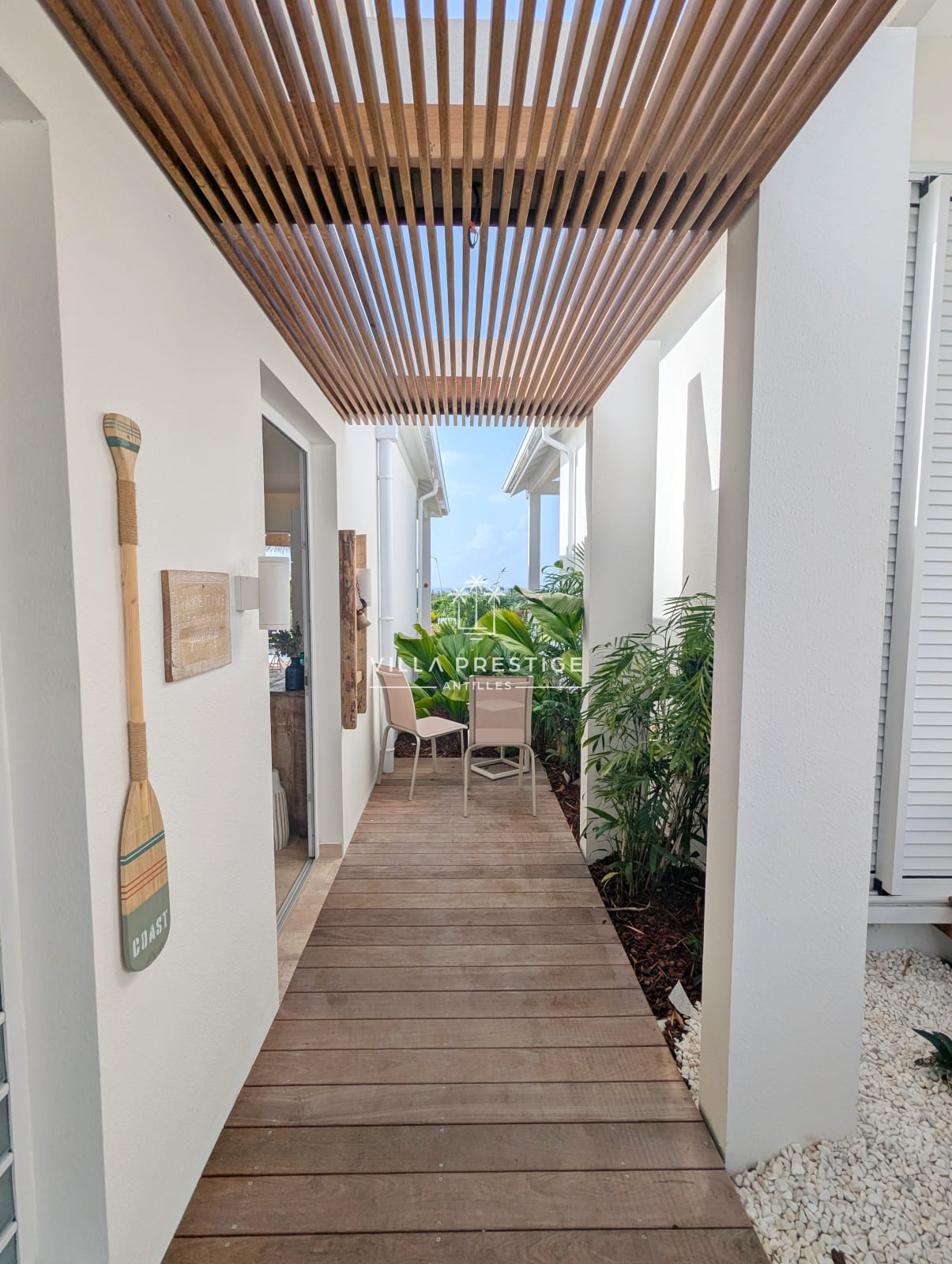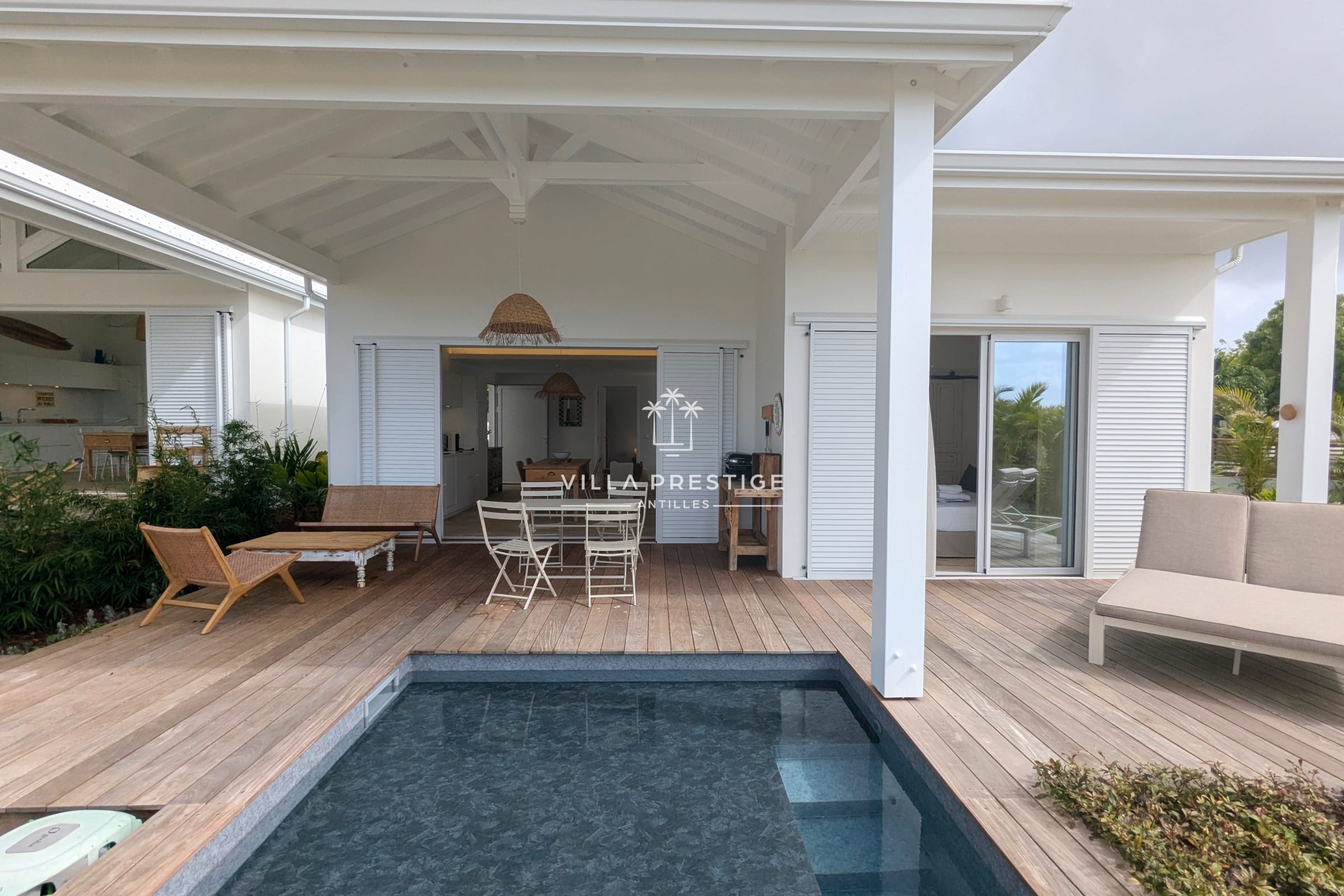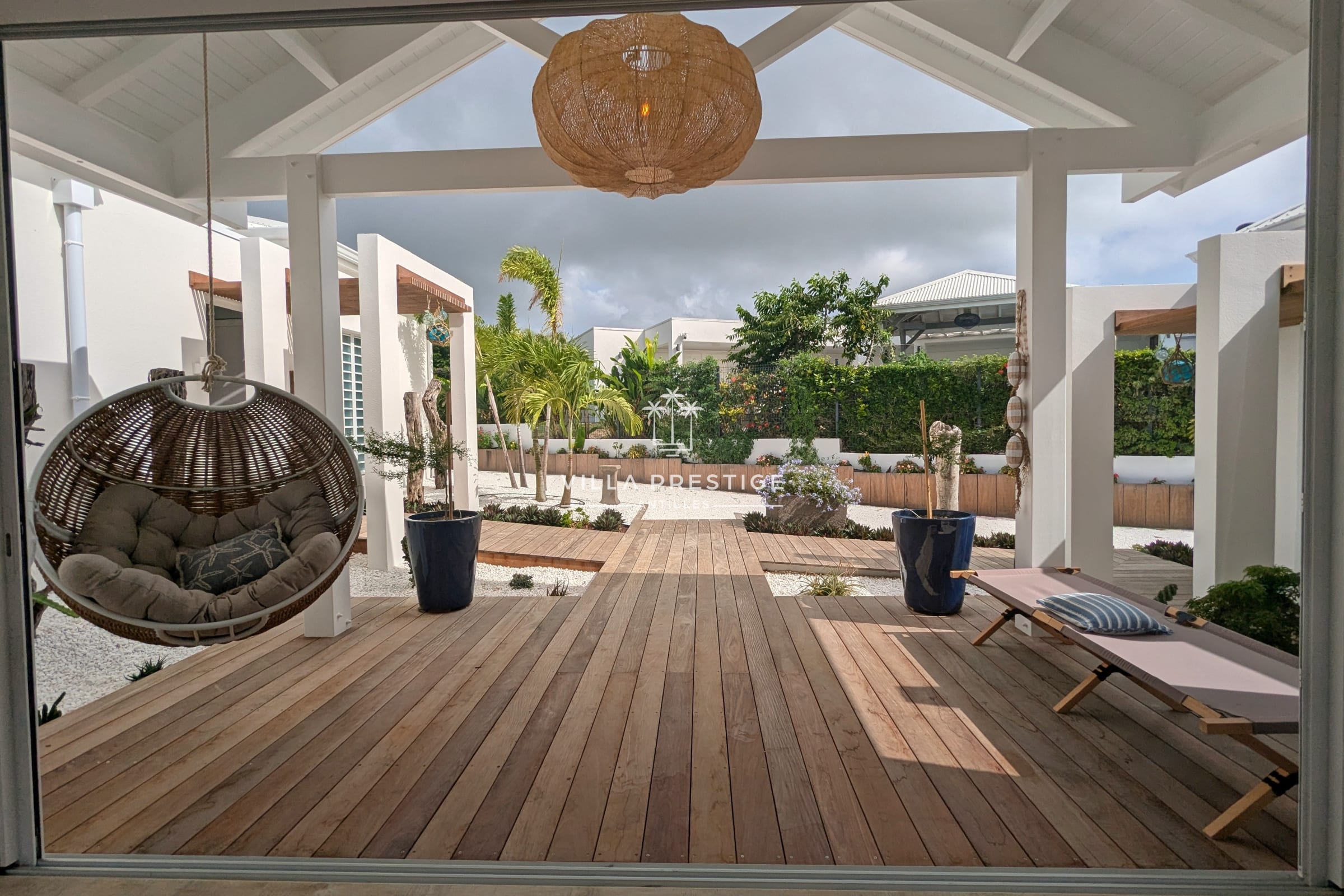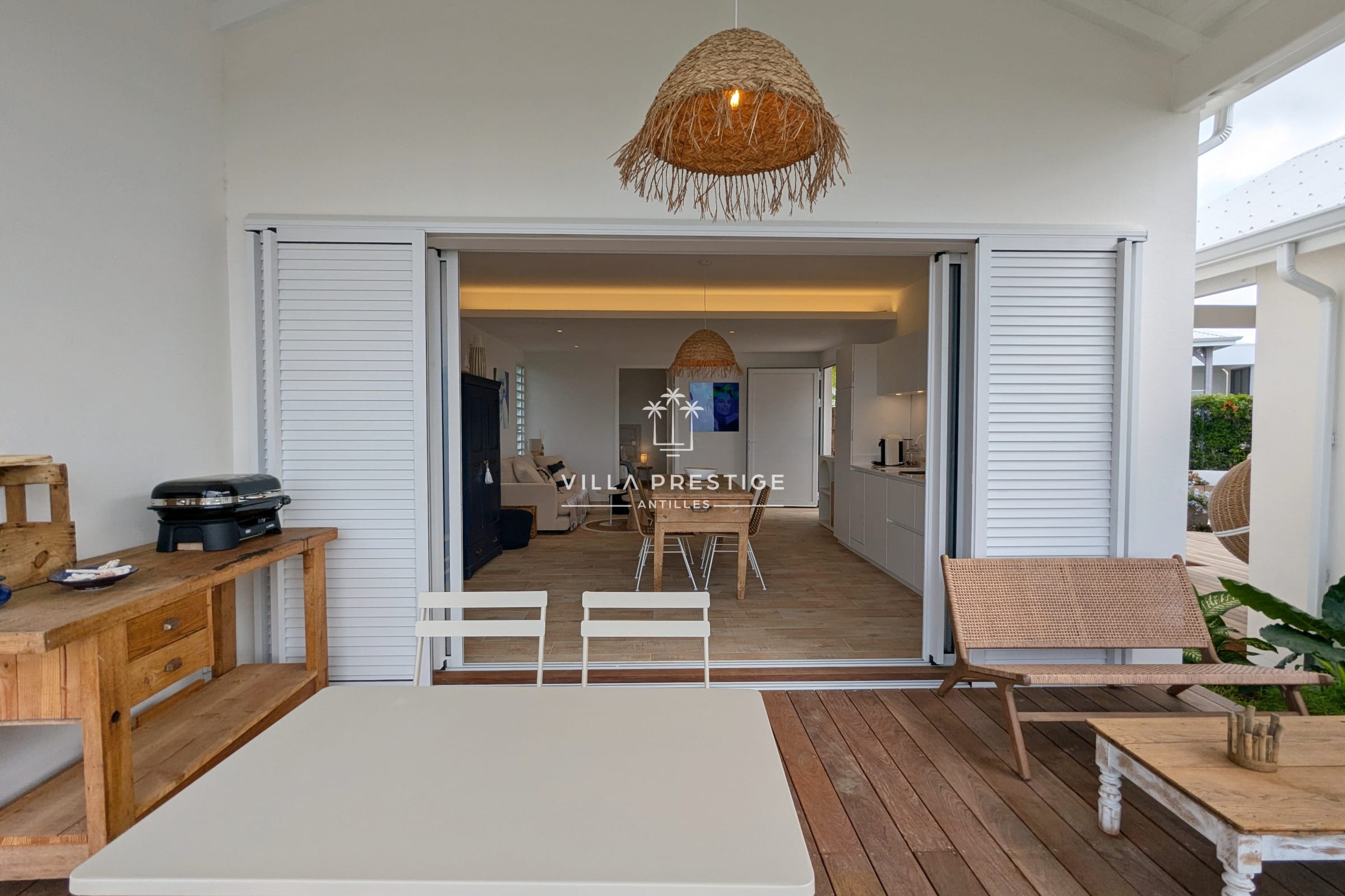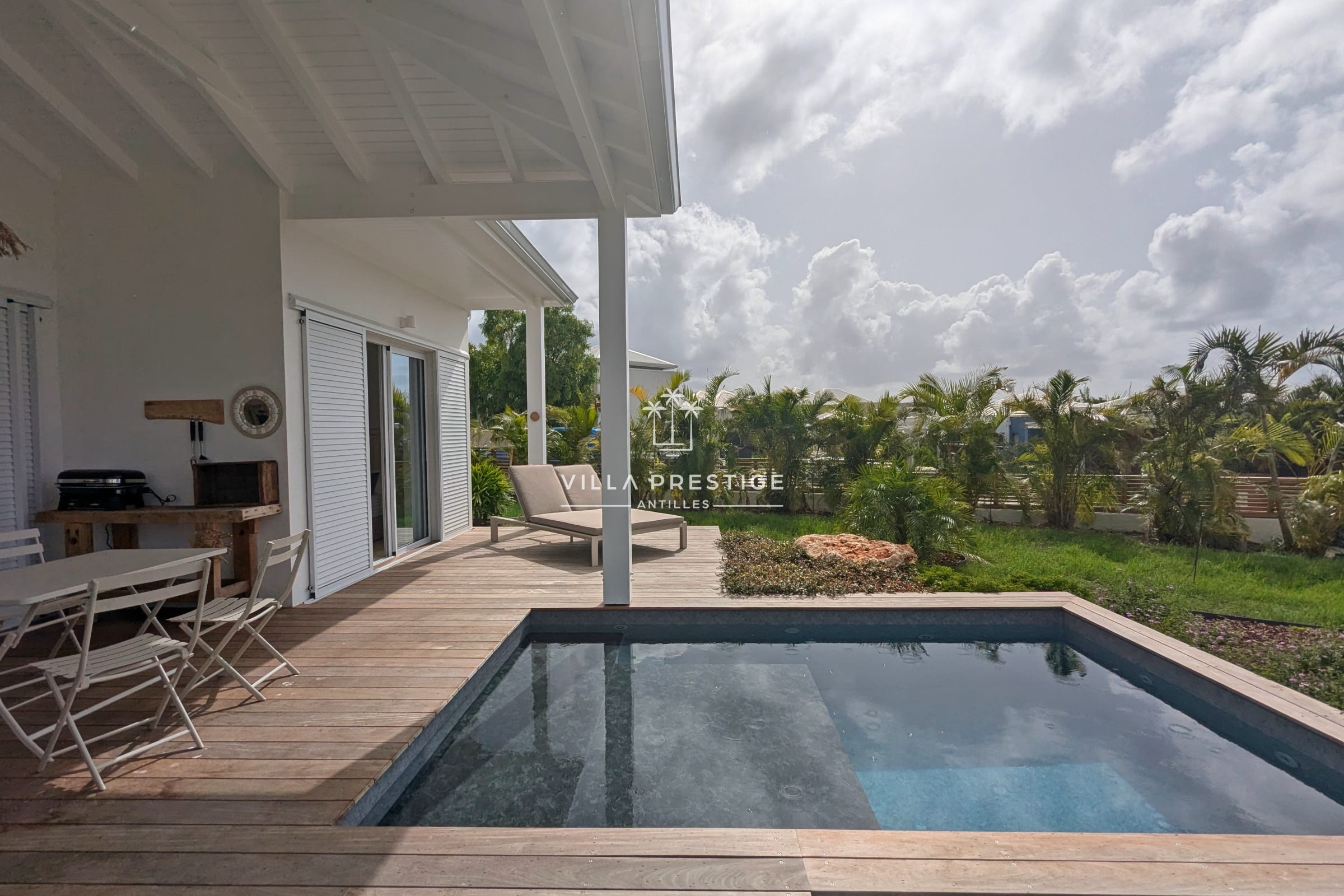 Each villa features its own private terrace with a dining area and lounge corner facing a small private pool. Ideally located, within just a two-minute drive from the residence you will find La Coulée beach, the casino, the airfield, the golf course, and the marina of Saint-François.