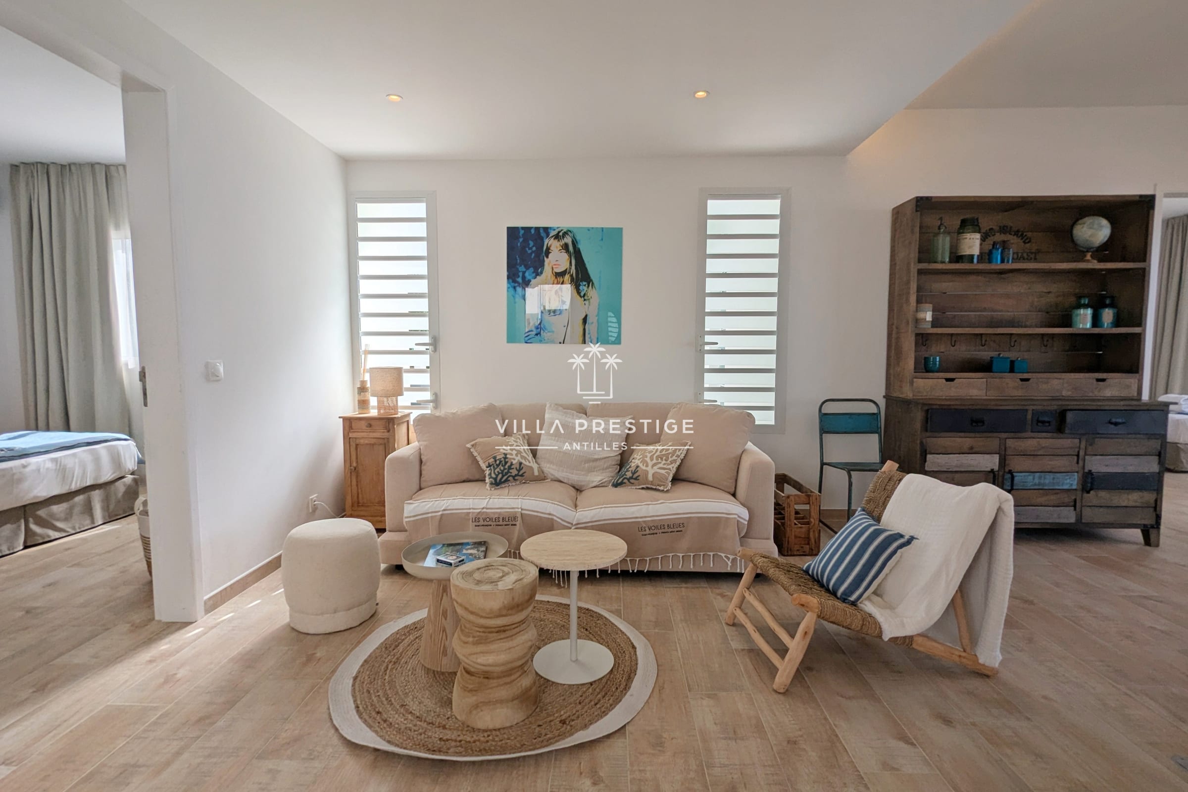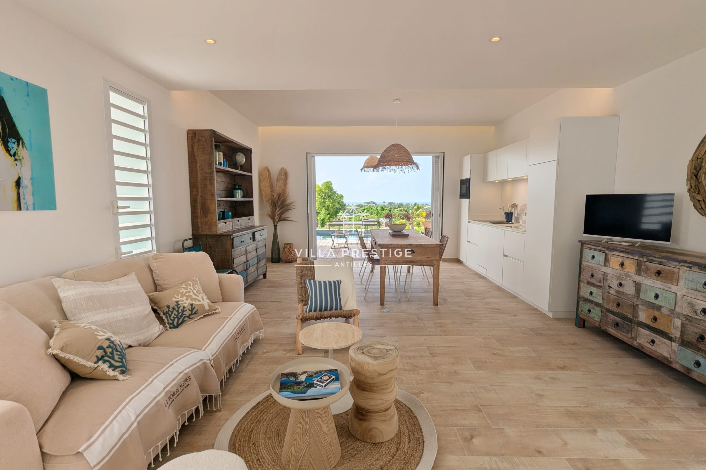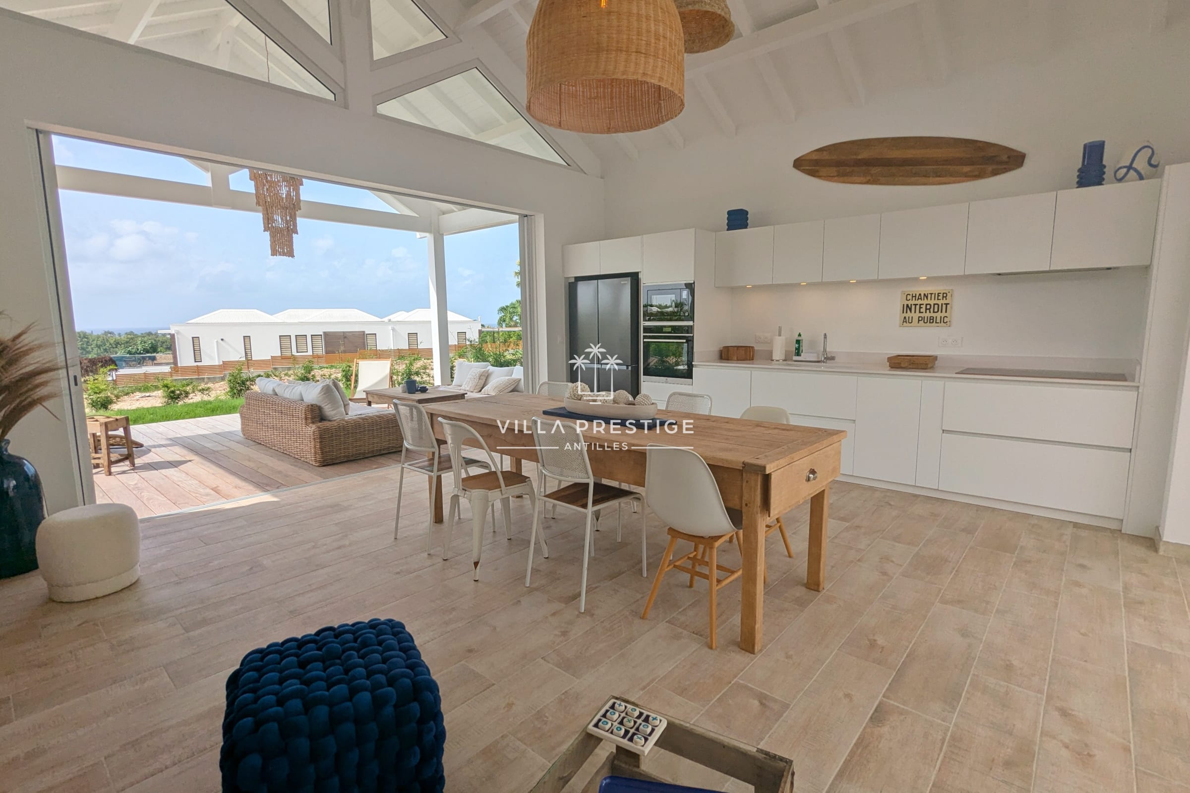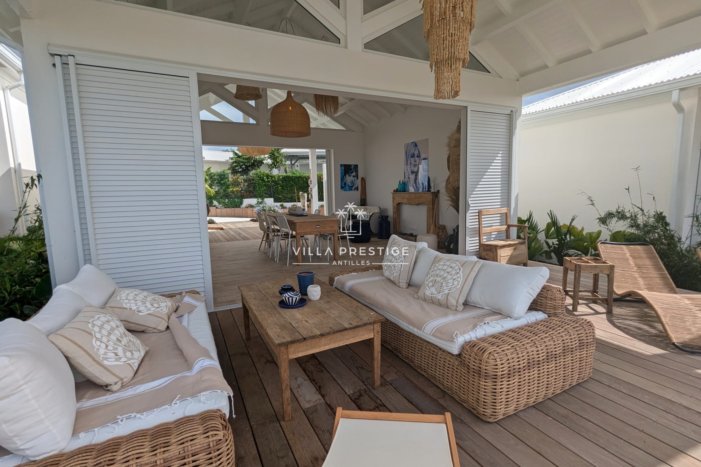 Each villa features its own private terrace with a dining area and lounge corner facing a small private pool. Ideally located, within just a two-minute drive from the residence you will find La Coulée beach, the casino, the airfield, the golf course, and the marina of Saint-François.