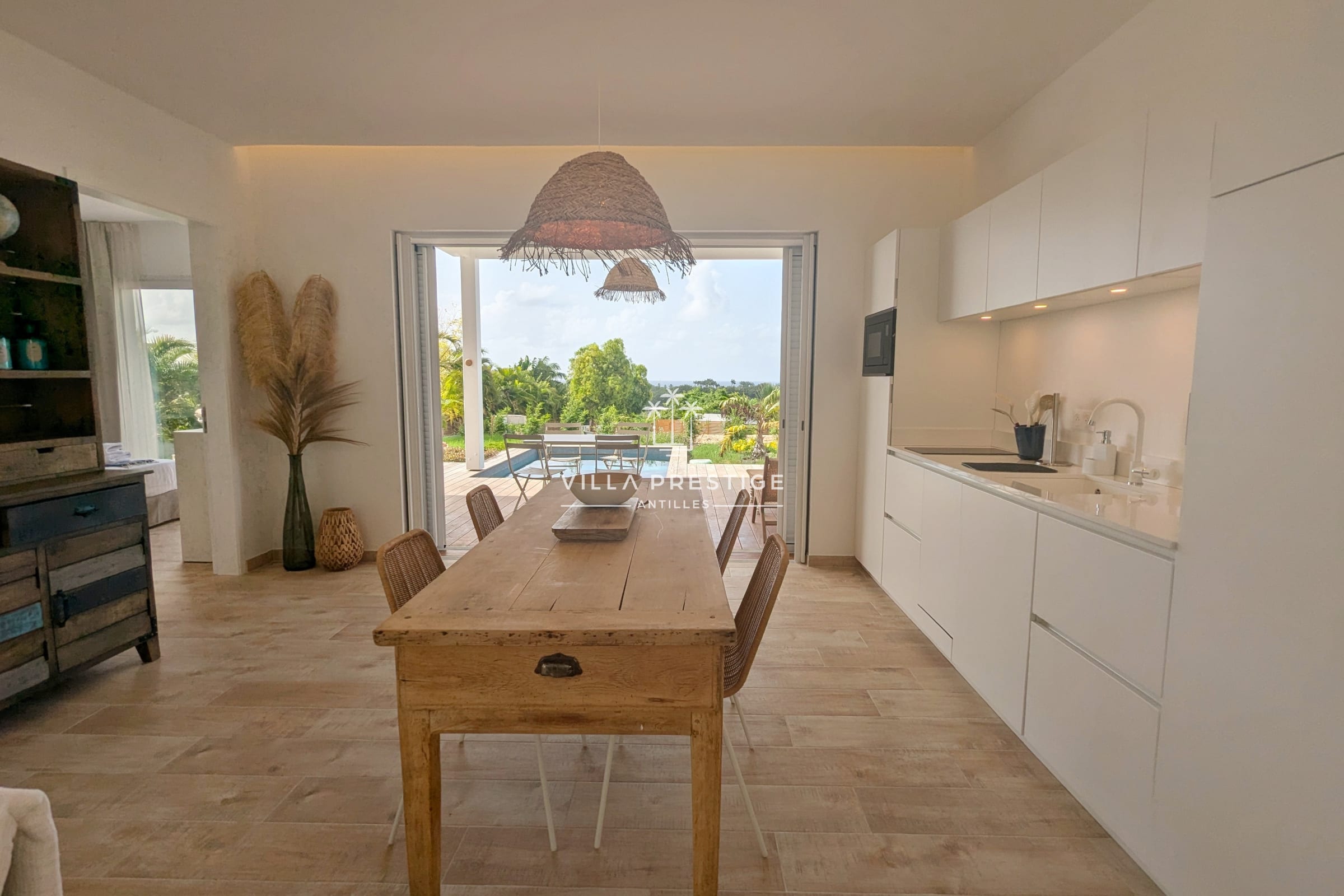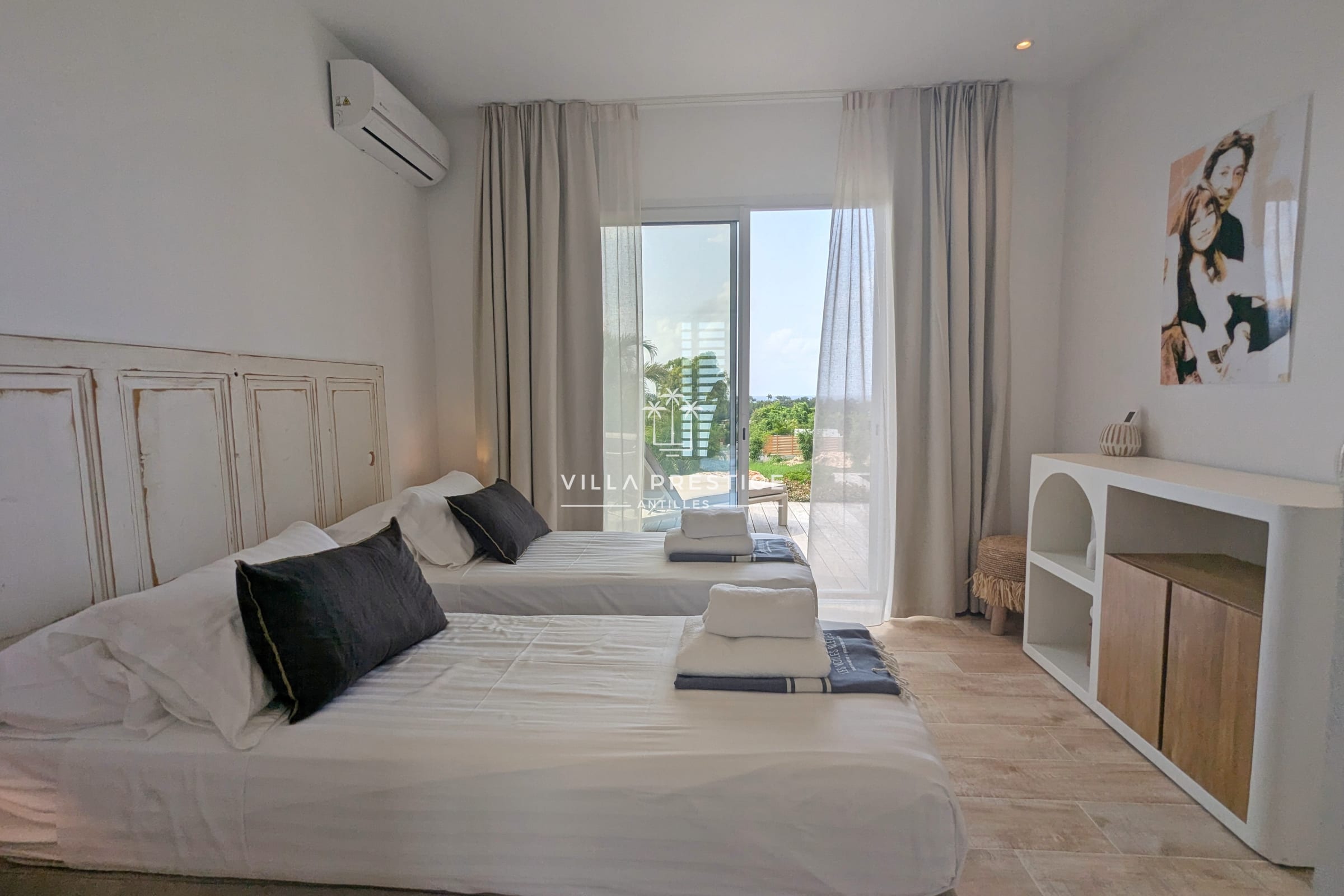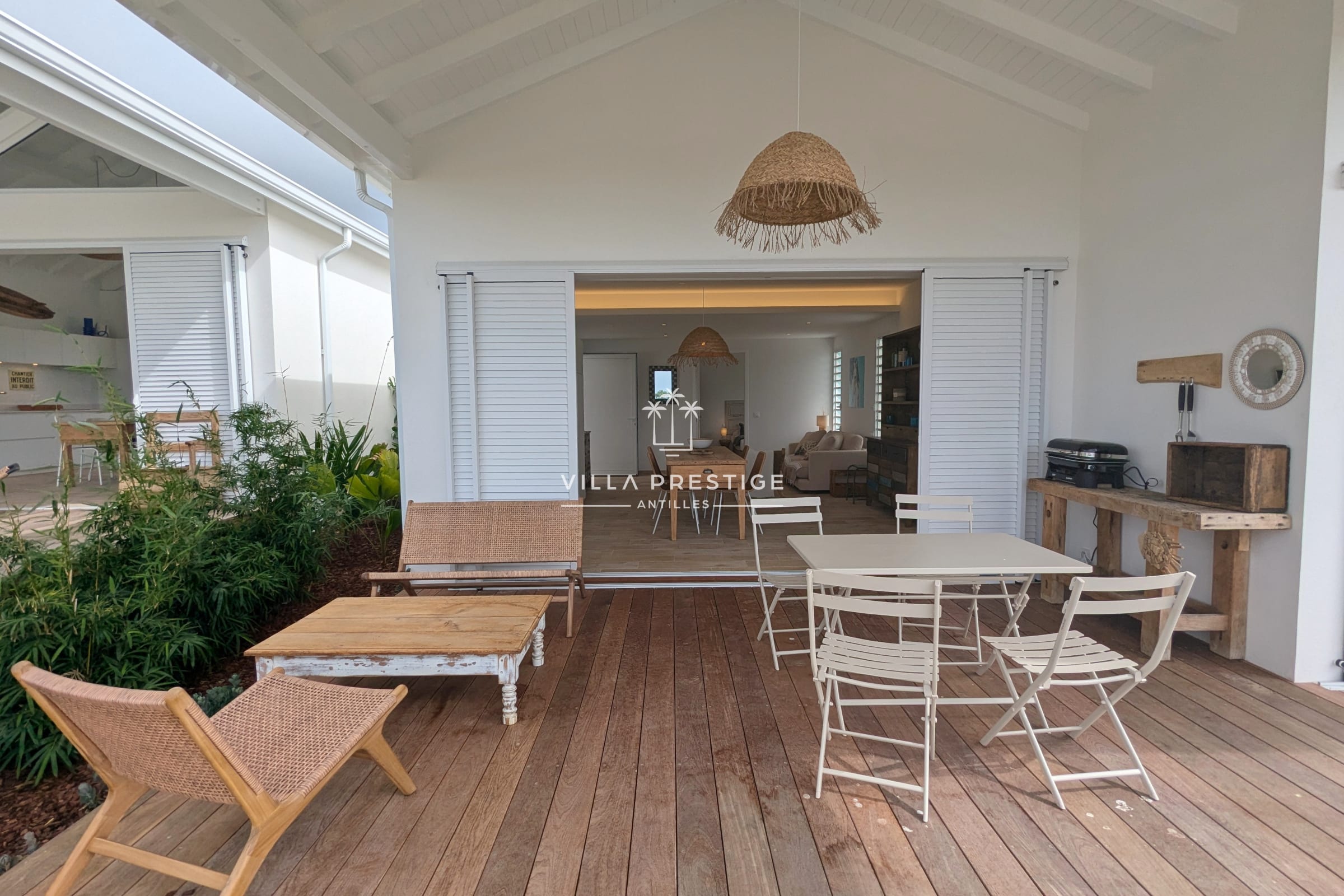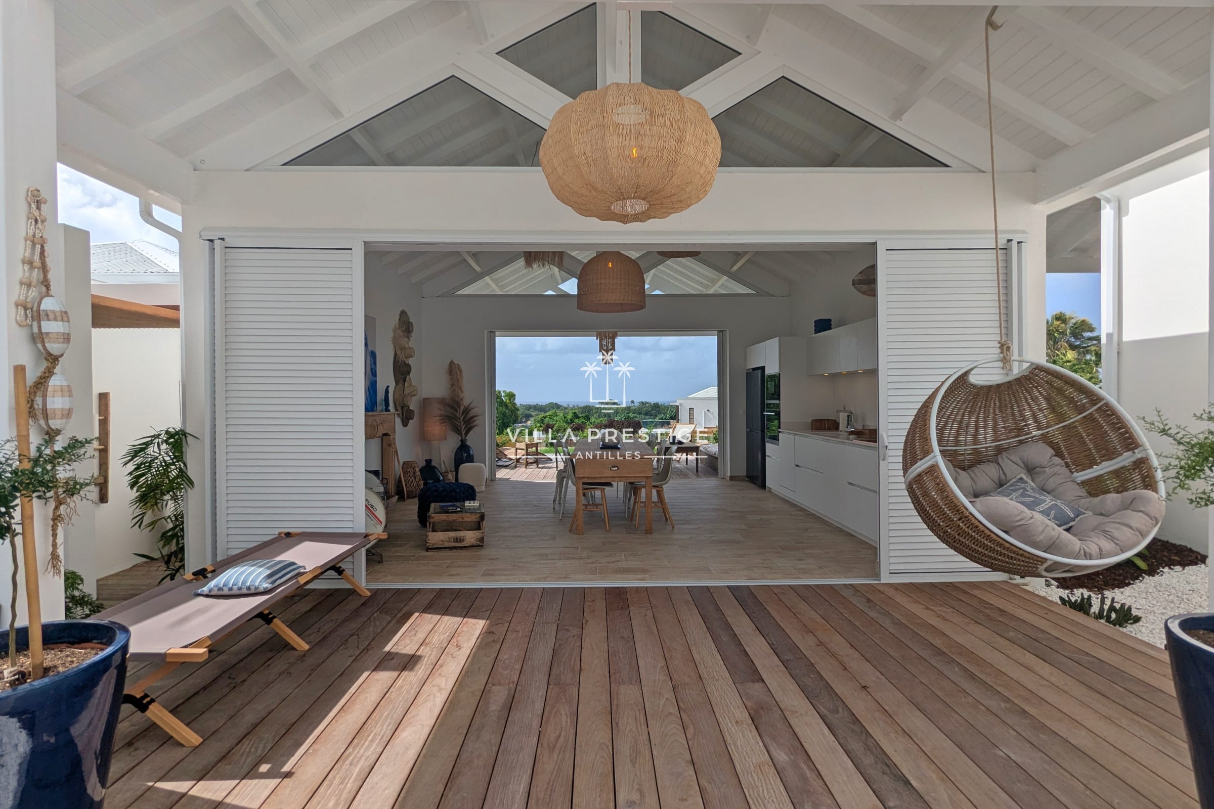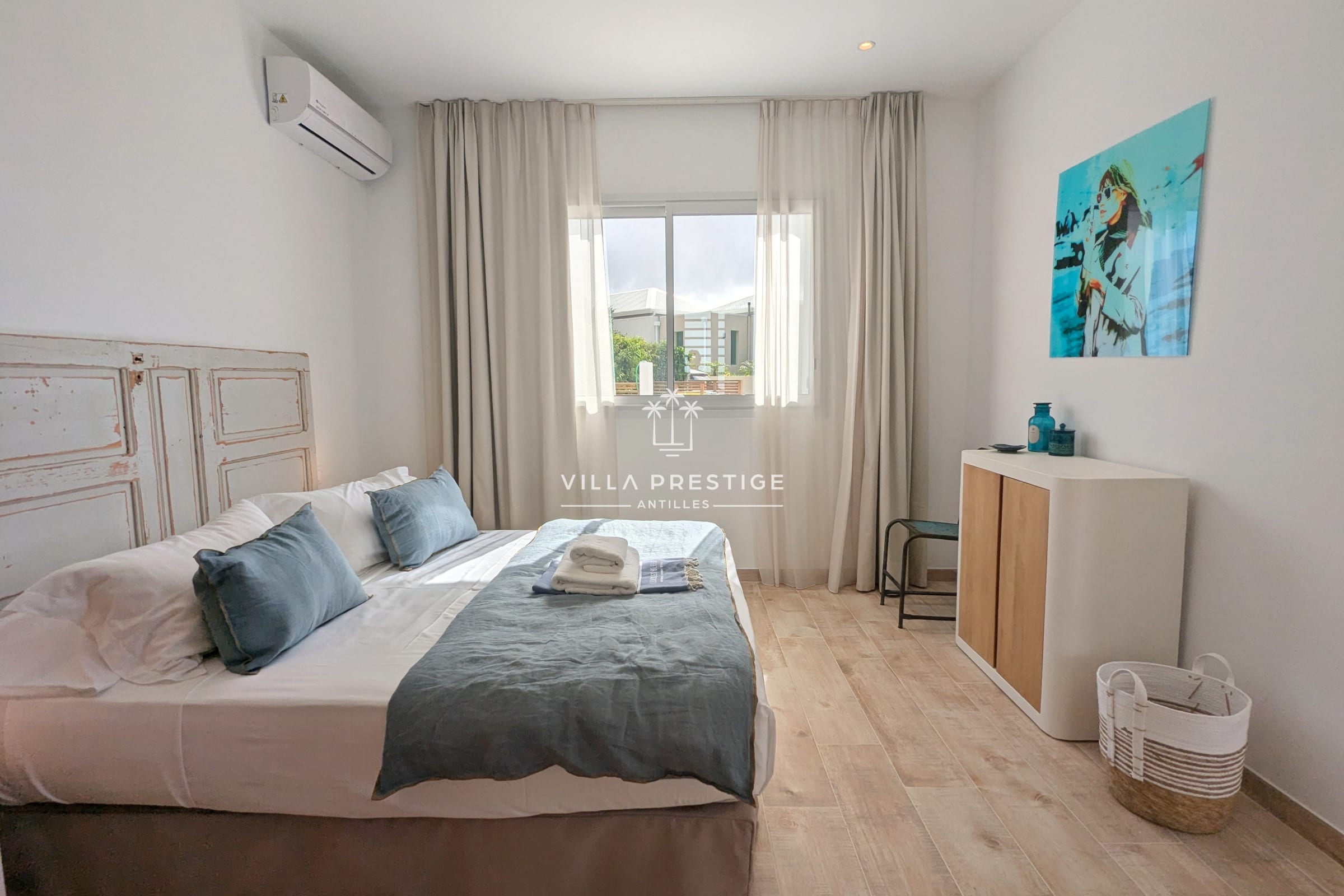 Each villa features its own private terrace with a dining area and lounge corner facing a small private pool. Ideally located, within just a two-minute drive from the residence you will find La Coulée beach, the casino, the airfield, the golf course, and the marina of Saint-François.
