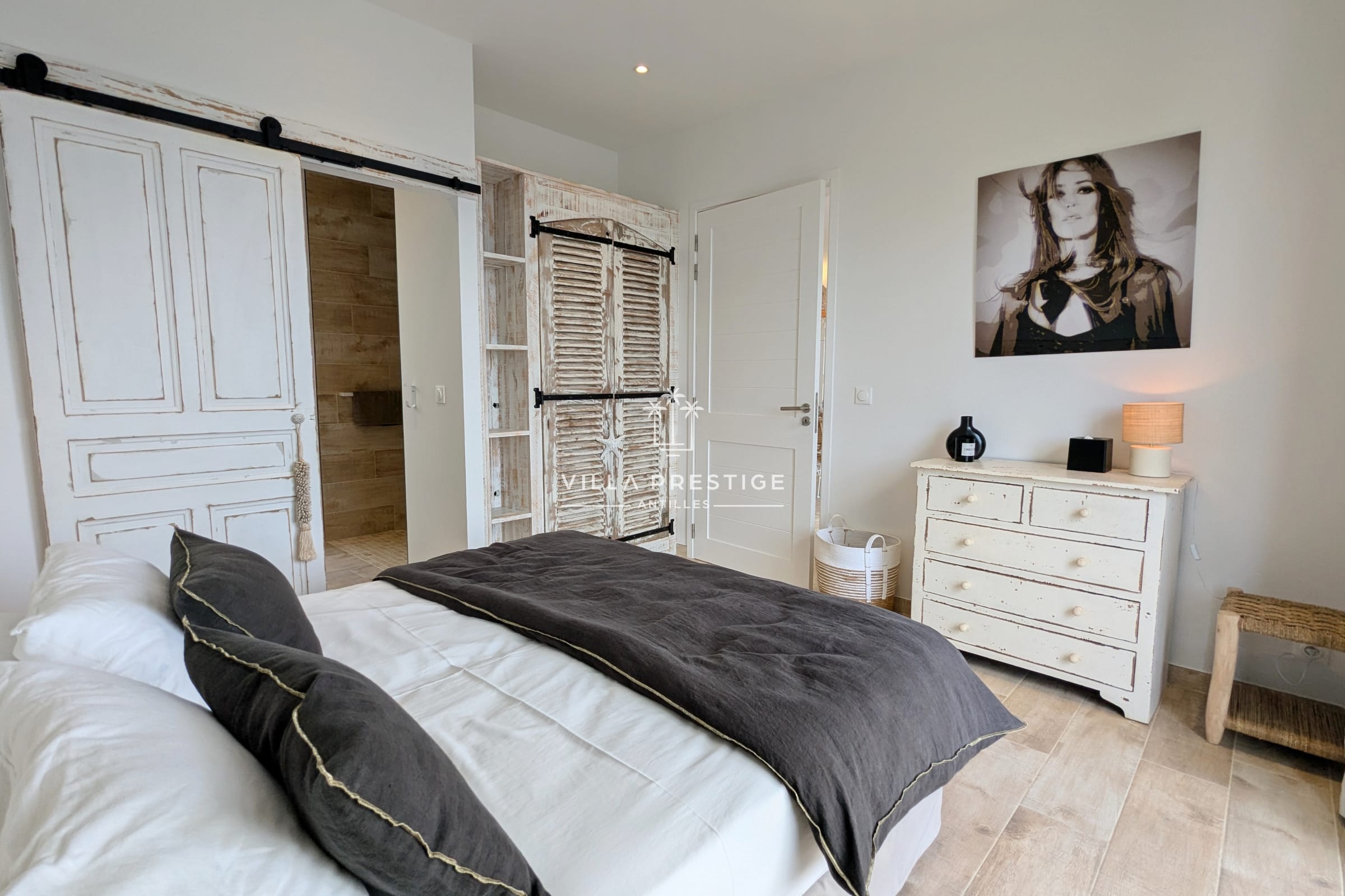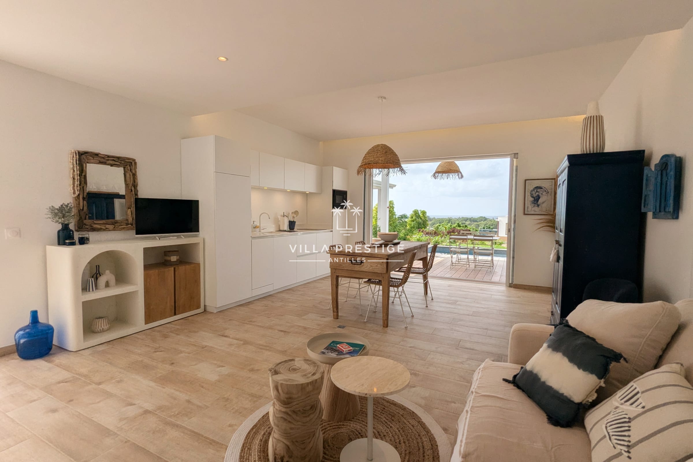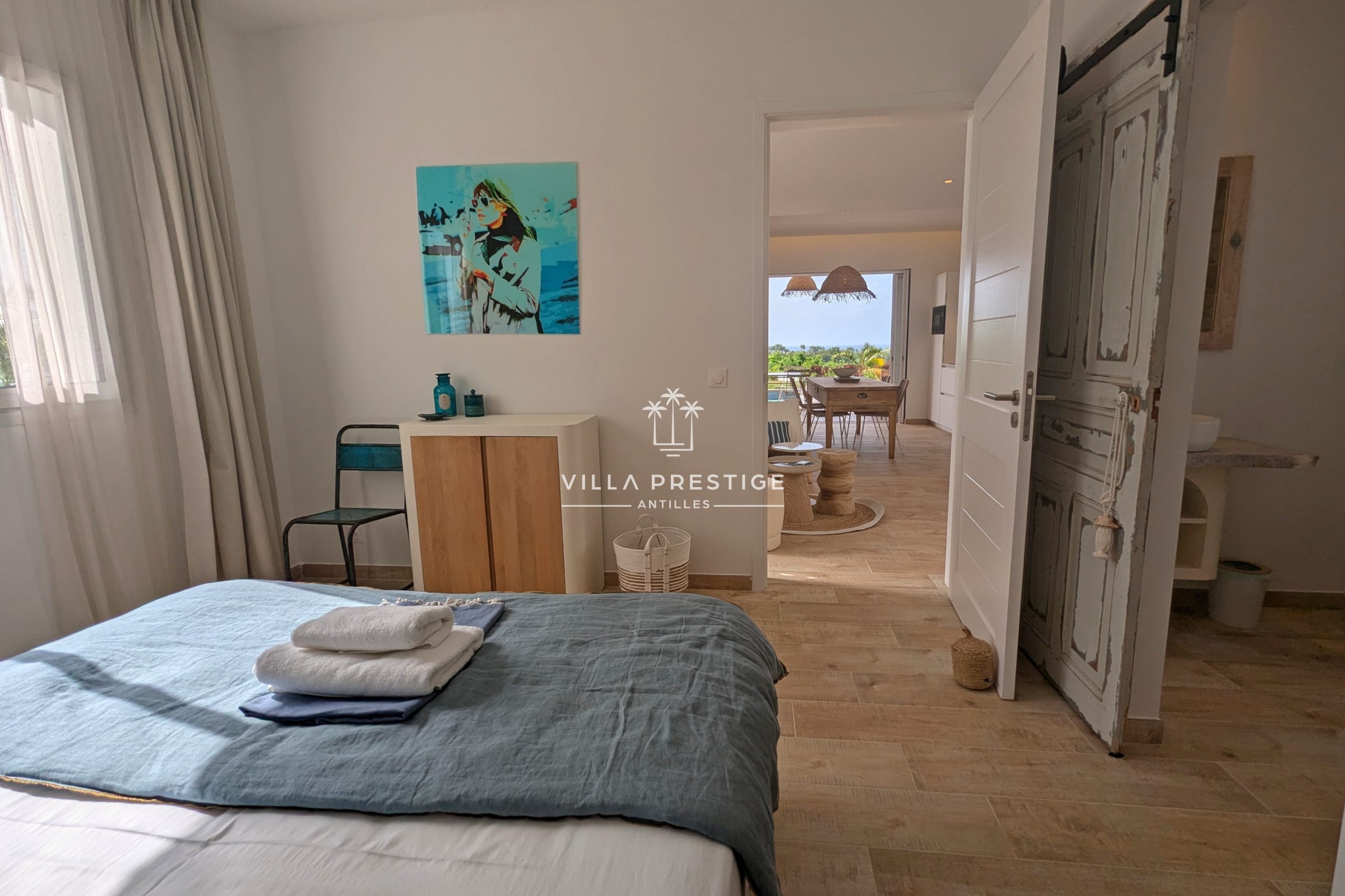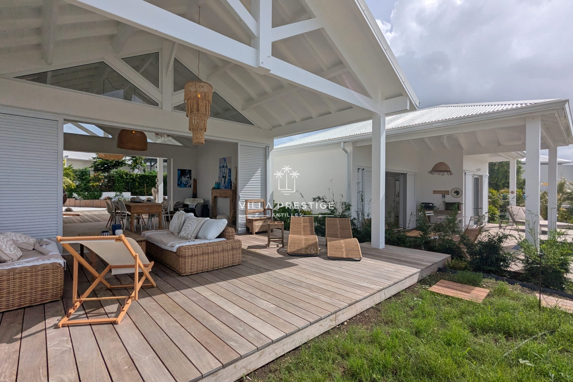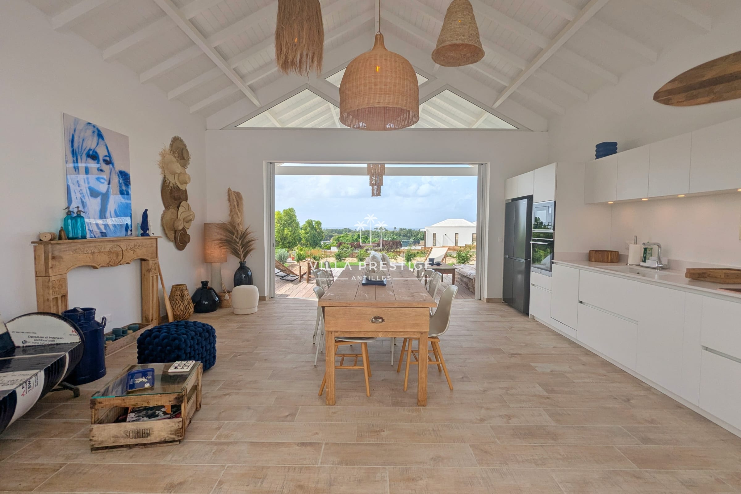 Each villa features its own private terrace with a dining area and lounge corner facing a small private pool. Ideally located, within just a two-minute drive from the residence you will find La Coulée beach, the casino, the airfield, the golf course, and the marina of Saint-François.