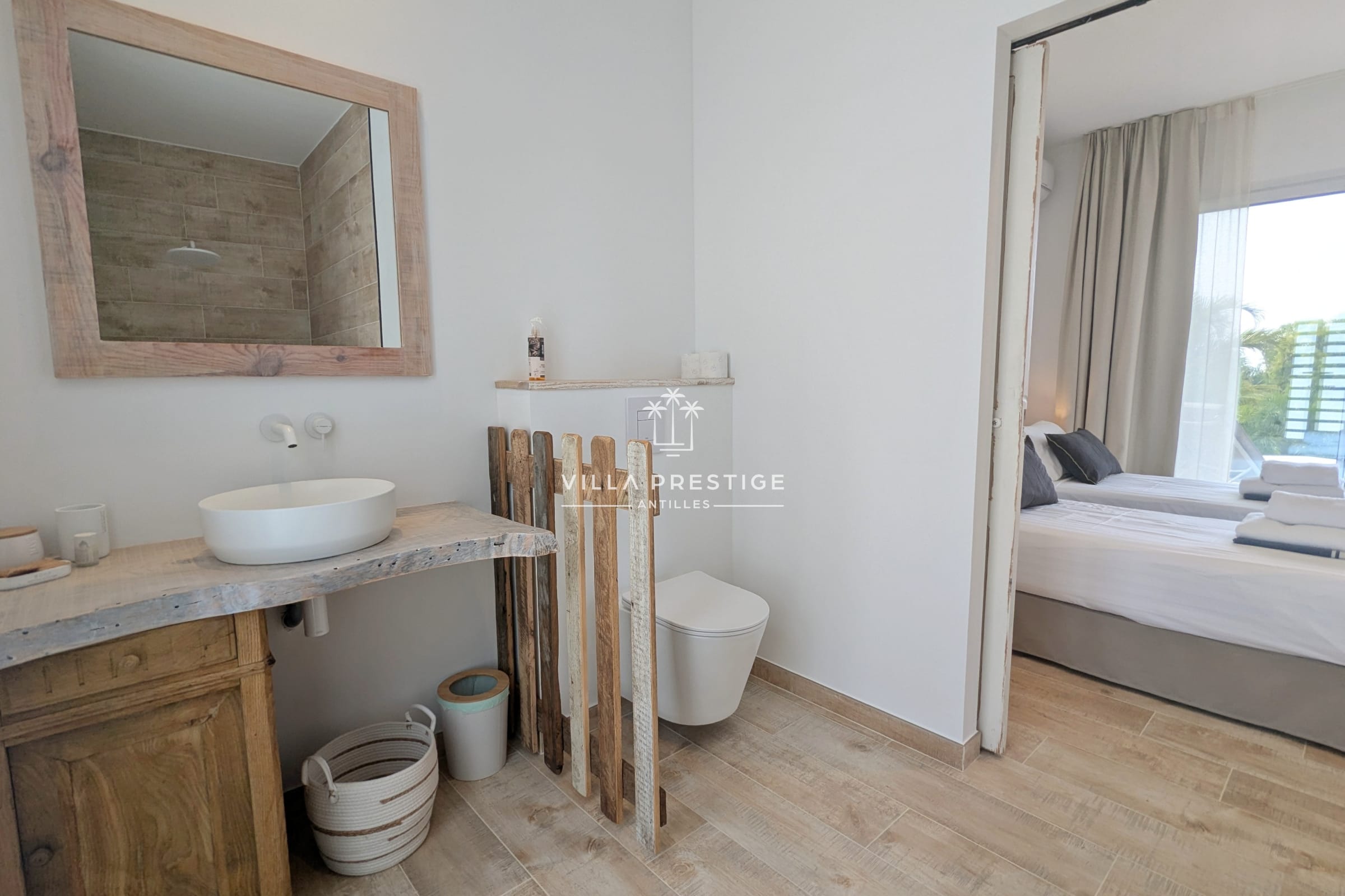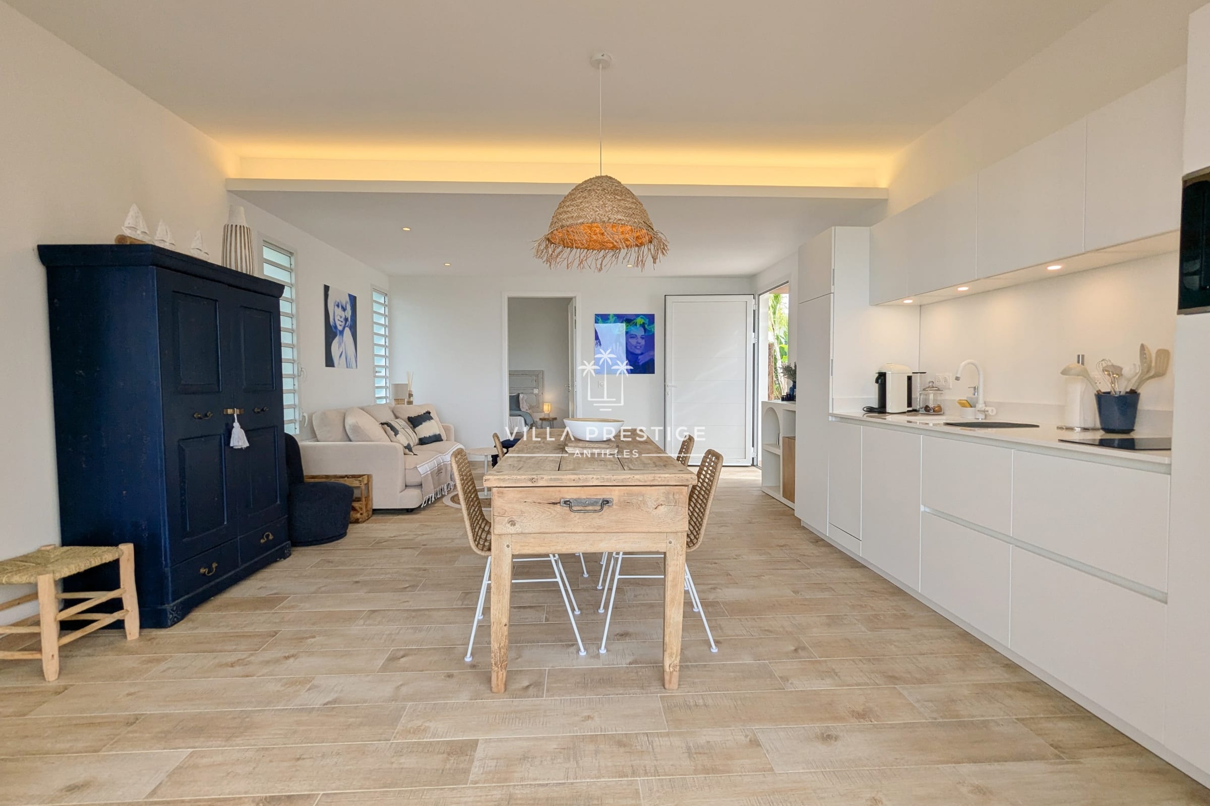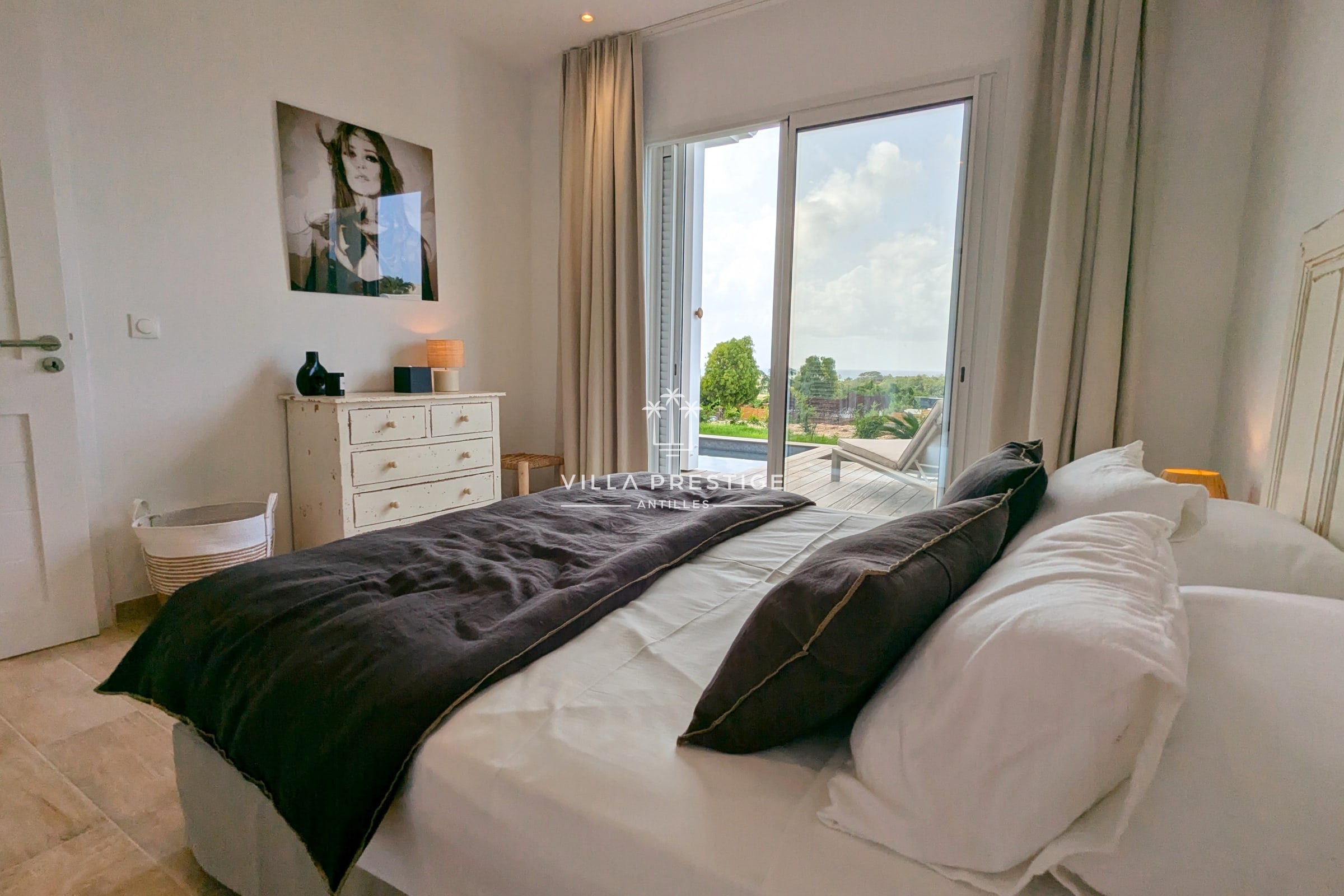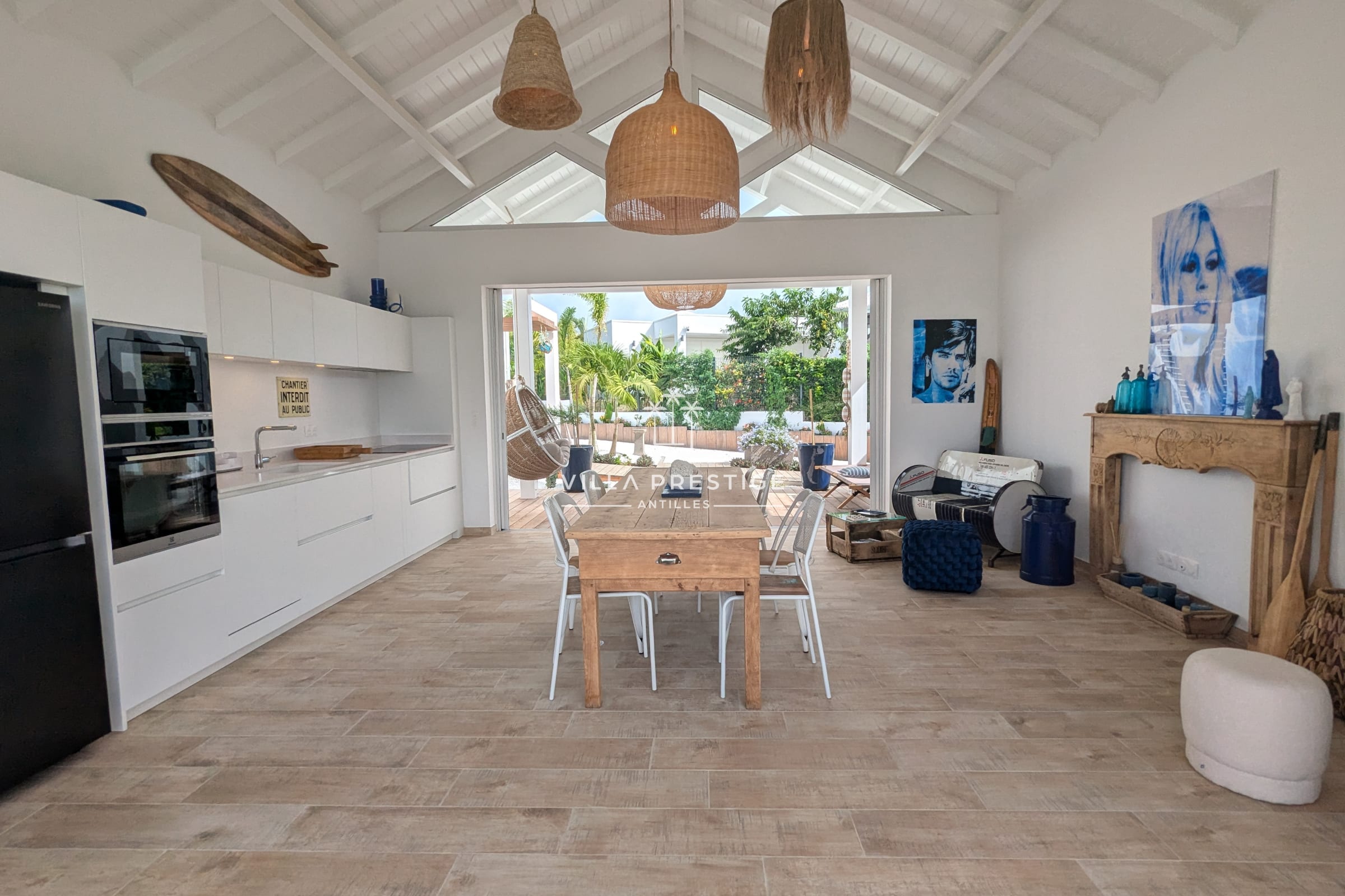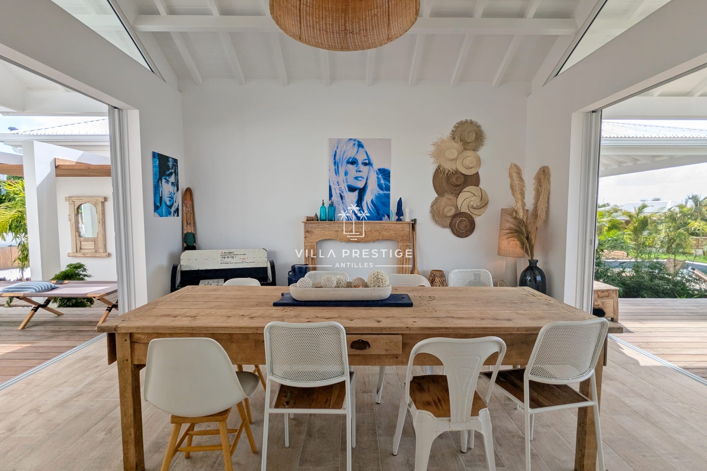 Each villa features its own private terrace with a dining area and lounge corner facing a small private pool. Ideally located, within just a two-minute drive from the residence you will find La Coulée beach, the casino, the airfield, the golf course, and the marina of Saint-François.