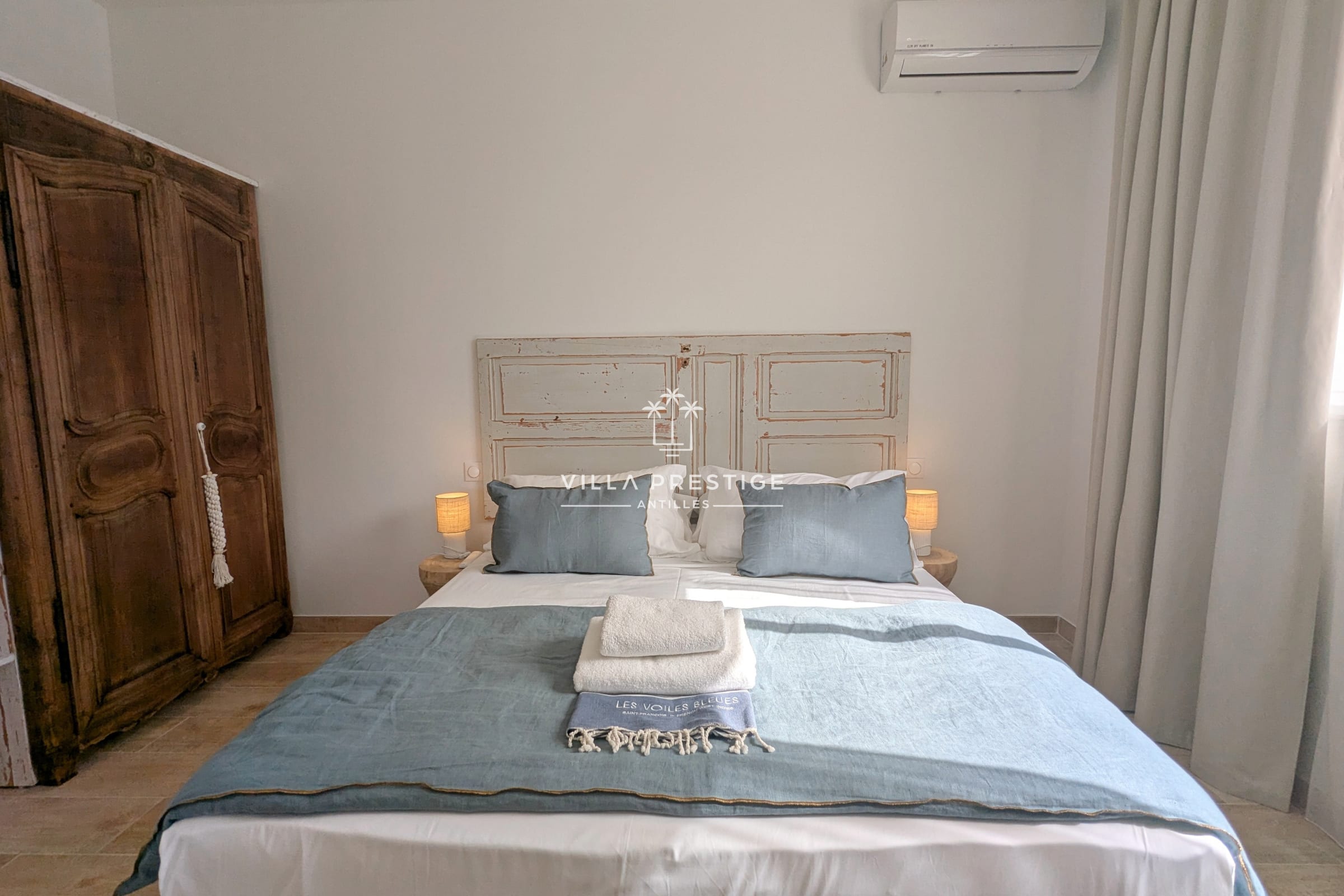 Located within the Belles Rives residence, the Gainsbourg & Birkin estate is composed of two elegant independent villas with two bedrooms each. Designed to adAppartement de to your needs, it can be rented as a whole or separately, offering either the privacy of each villa or the comfort of a central shared space. A place with unique charm, ideal for a flexible and convivial stay in Guadeloupe.
