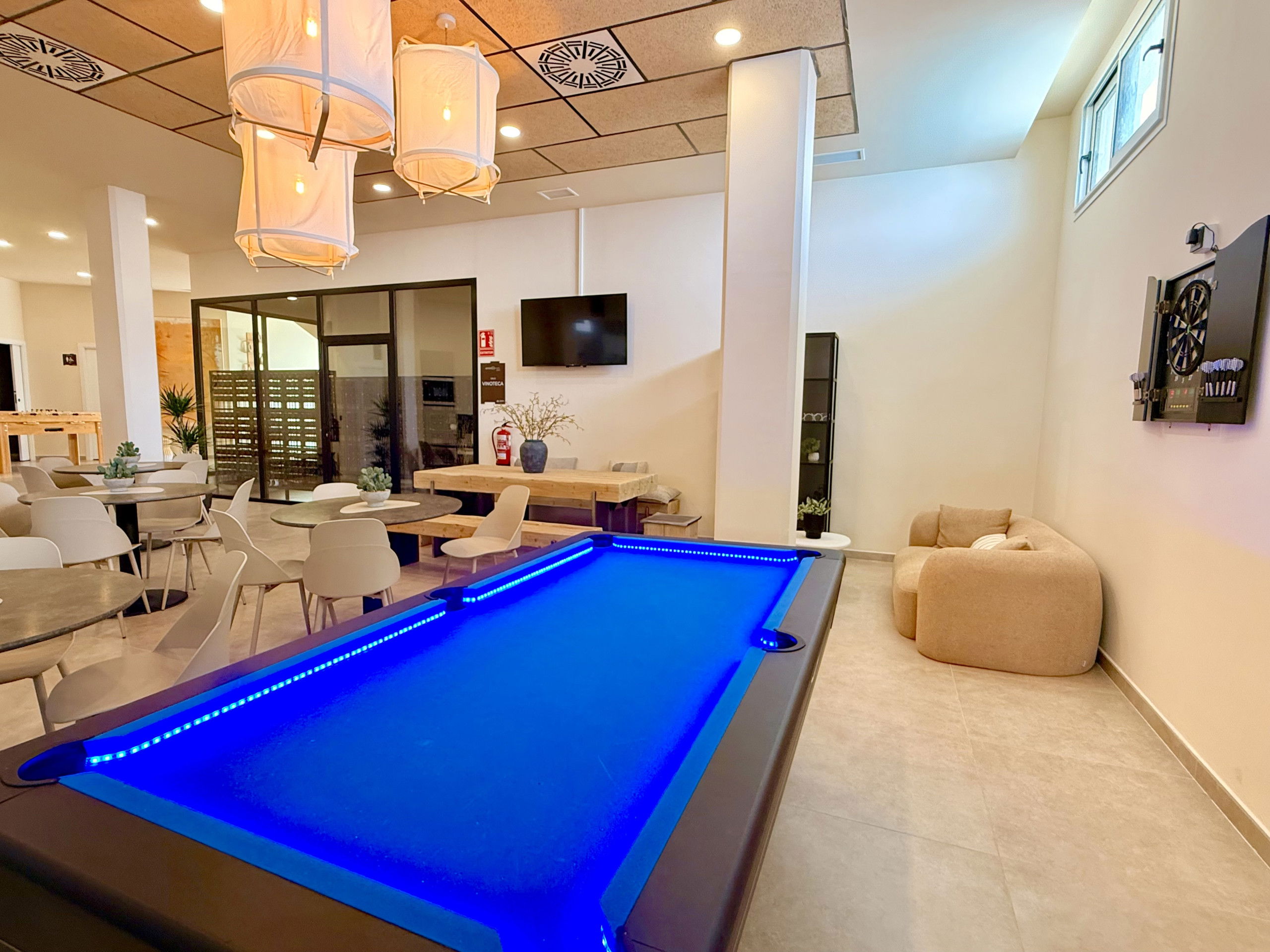 The living room, bathed in natural light, has air conditioning, Smart TV, high-speed WiFi and direct access to a generous private terrace.